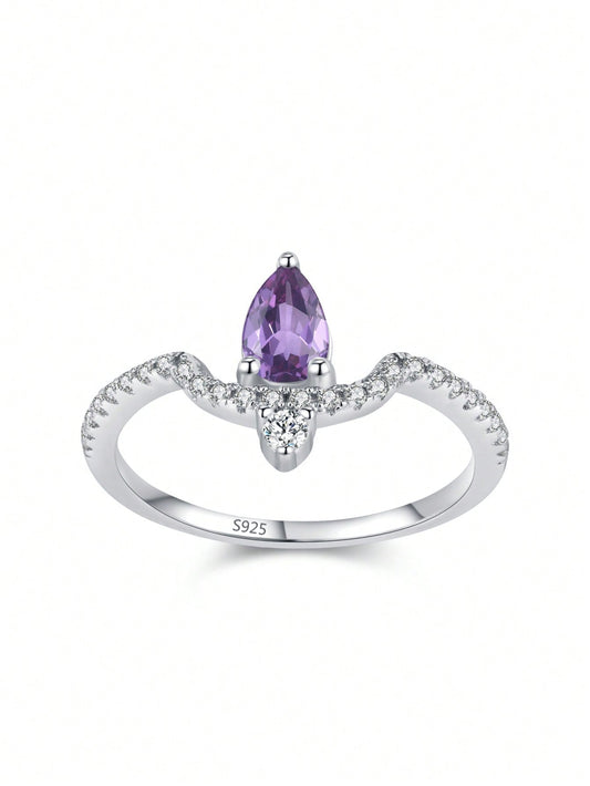 1 Pc 925 Sterling Silver Charming Purple Zirconia Crown Ring For Women Luxury Wedding Accessories Jewelry Gift