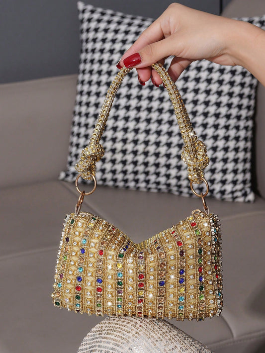 Multicolor Rhinestone Decorated Clutch Evening Bag, Dressy Party Handbag For Women, Elegant High Craftsmanship Formal Occasion Purse To Pair With Gown