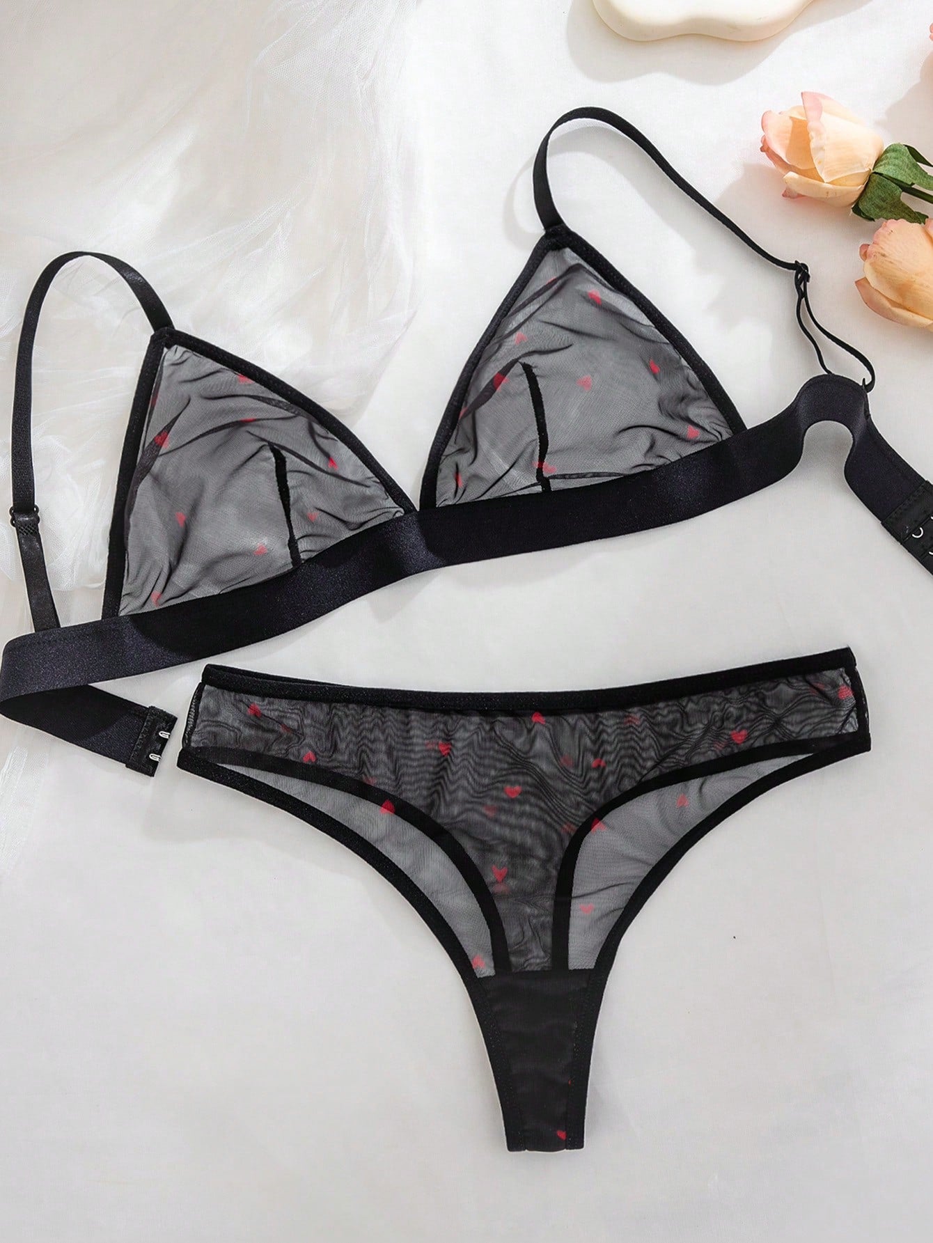 طقم صدرية نسائي جذاب بحمالات ، ملابس داخلية شفافة قلب الرؤية ، صدرية لاسلكية رفيعة قابلة للتنفس صديقة للبشرة، طقم قطعتين للنساء