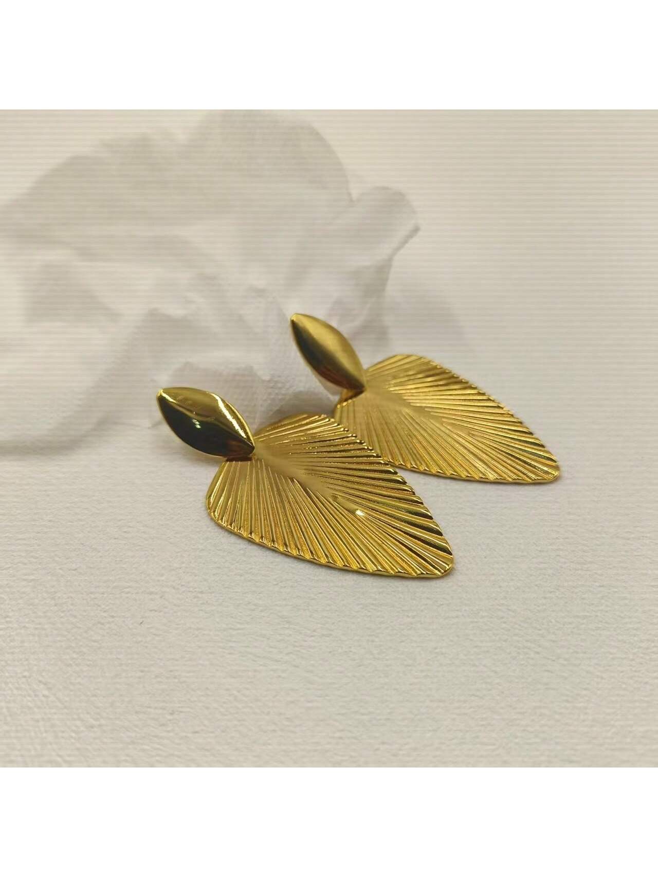 1 paire de boucles d'oreilles pendantes en acier inoxydable doré, avec texture de ligne de feuille. Polyvalent pour le port quotidien des femmes, idéal en cadeau