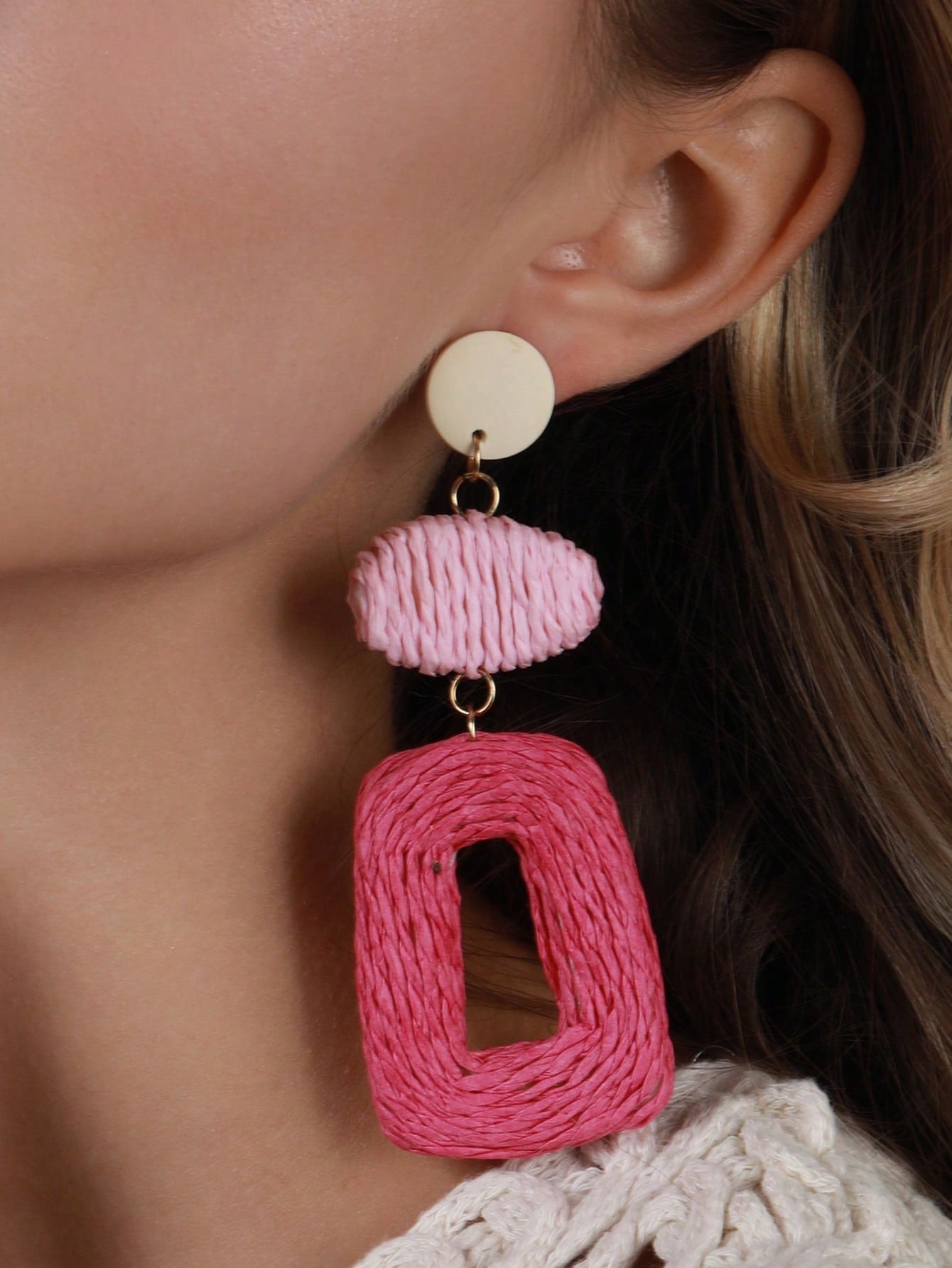 1 paire de boucles d'oreilles style Harajuku tropical personnalisé, tressage manuel de corde de papier, couleurs bloquantes, géométrie, style vacances à l'île, convient pour les voyages, le casual et les tenues de fêtes