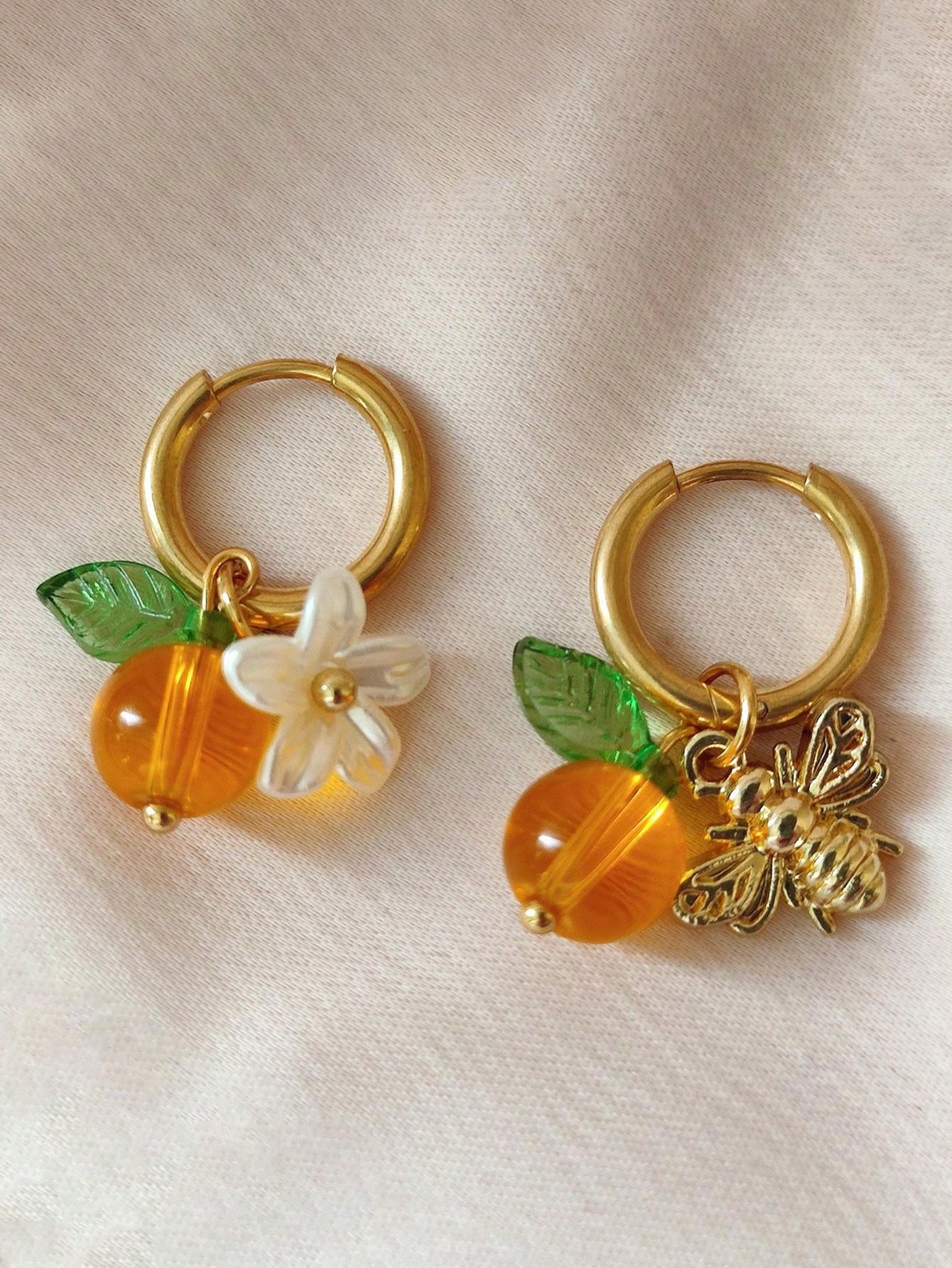 1 Par de Brincos de Abelha Falsa Laranja Elegante em Aço Inoxidável, Adequado para Usar Joias em Férias no Campo