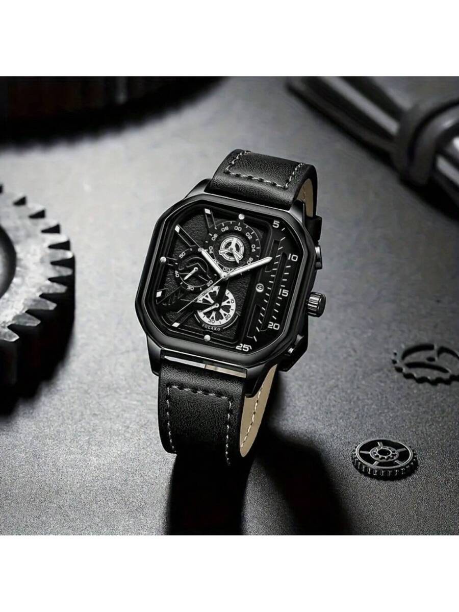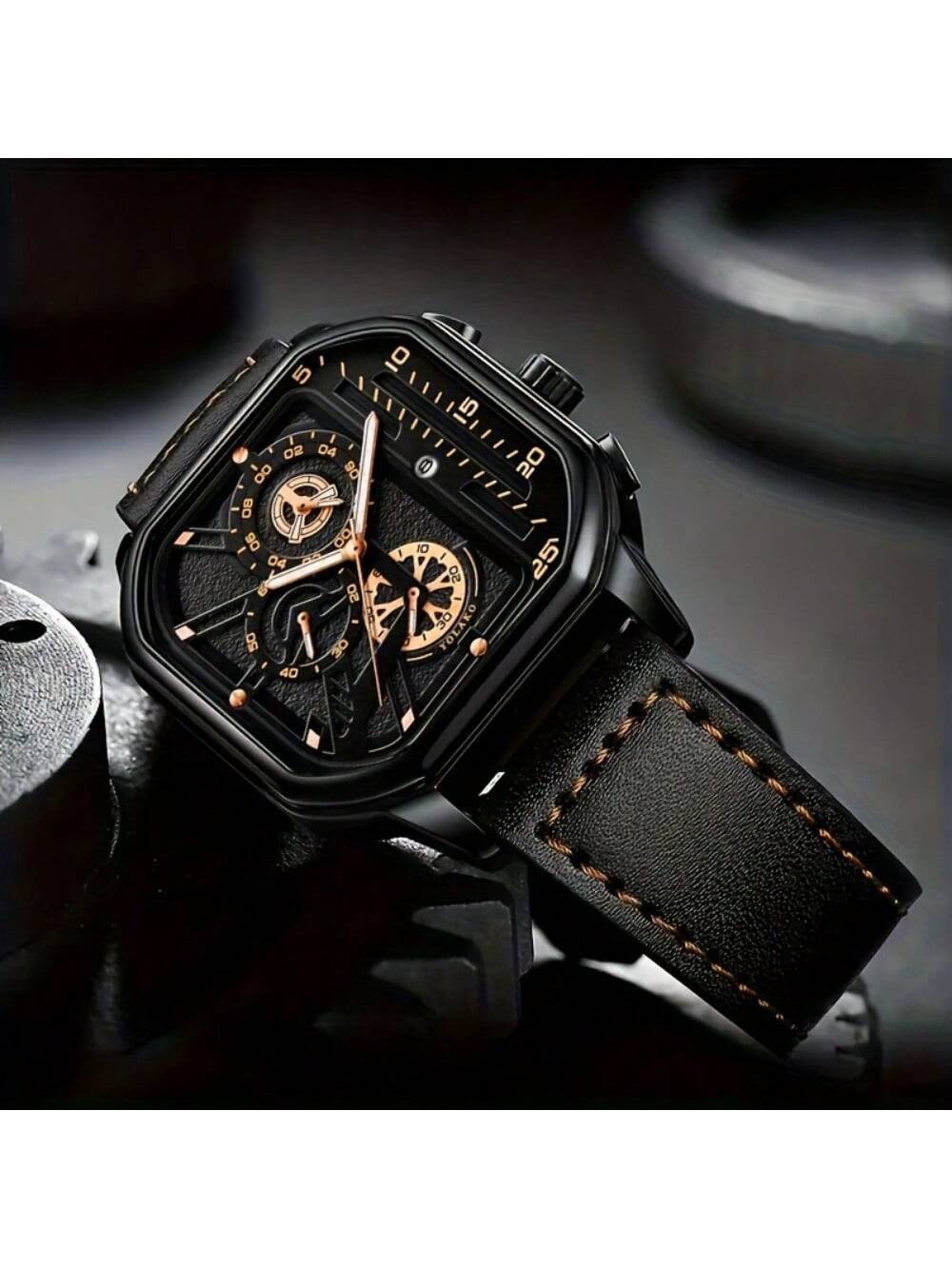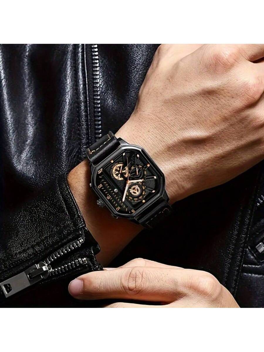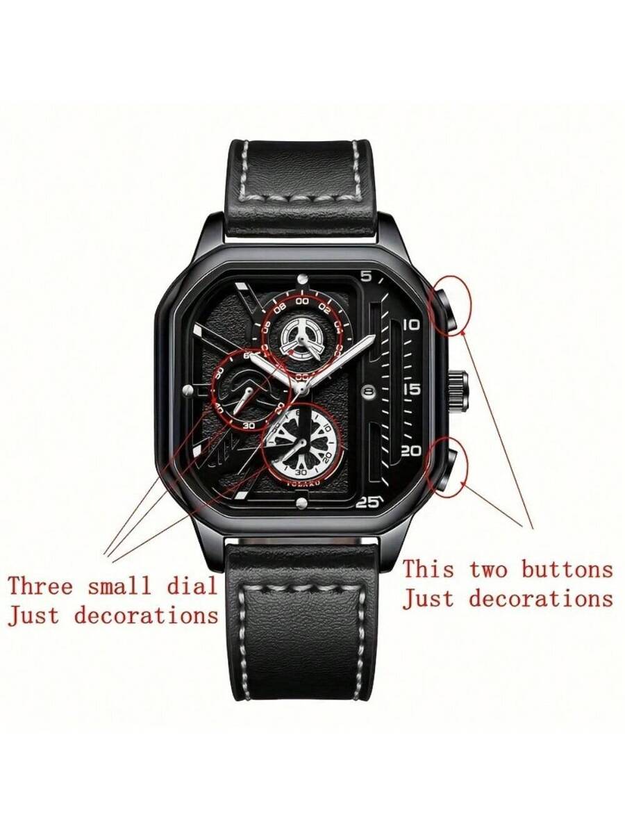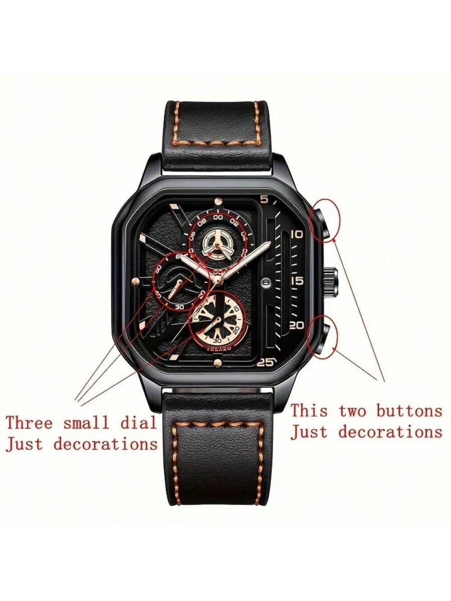 1 pièce Montre-bracelet à quartz à cadran numérique carré avec bracelet décontracté pour hommes, design classique (montre uniquement, sans boîte de montre incluse)