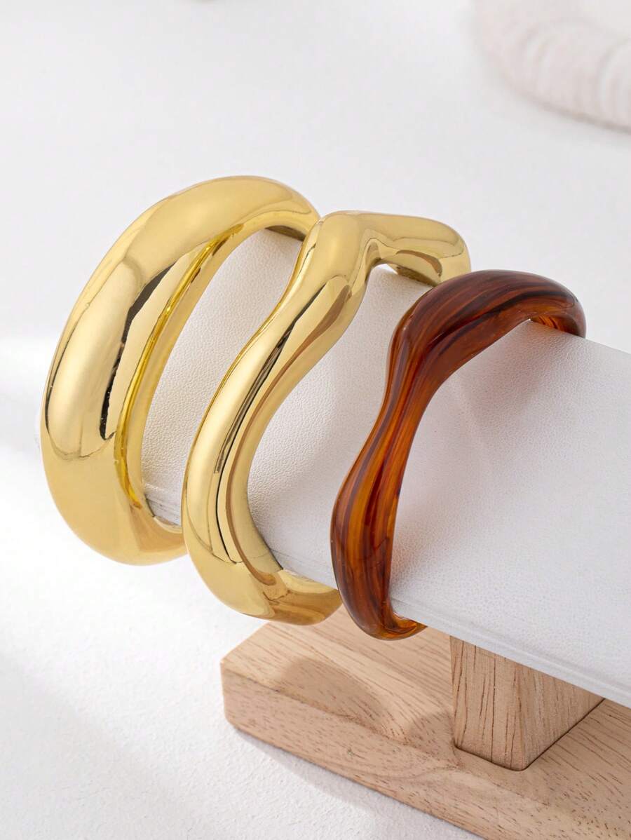 1 Set Golden Color Bangles Set Women Water Proof Chunky Bracelets Set Basic Design Stackable Bracelets Pack