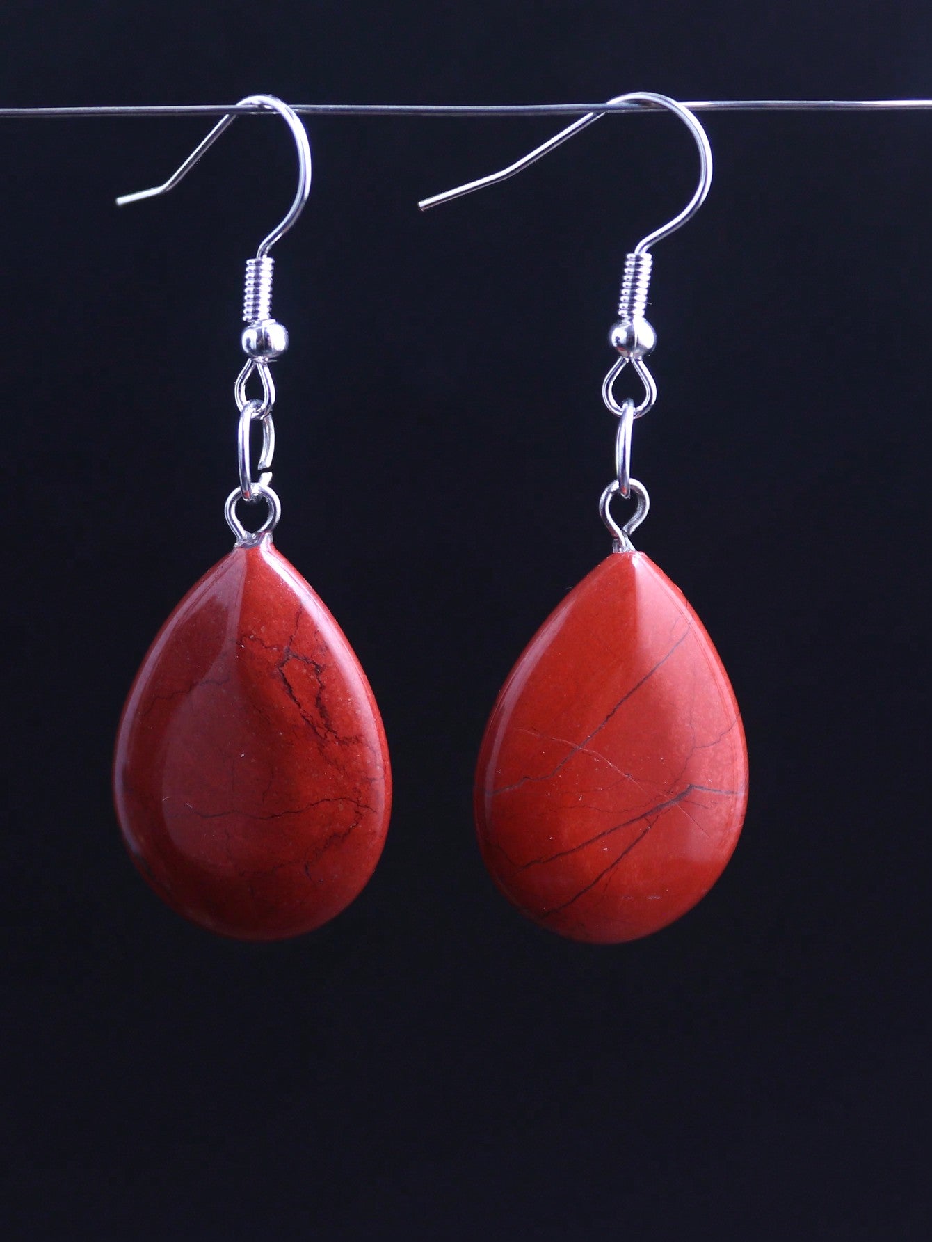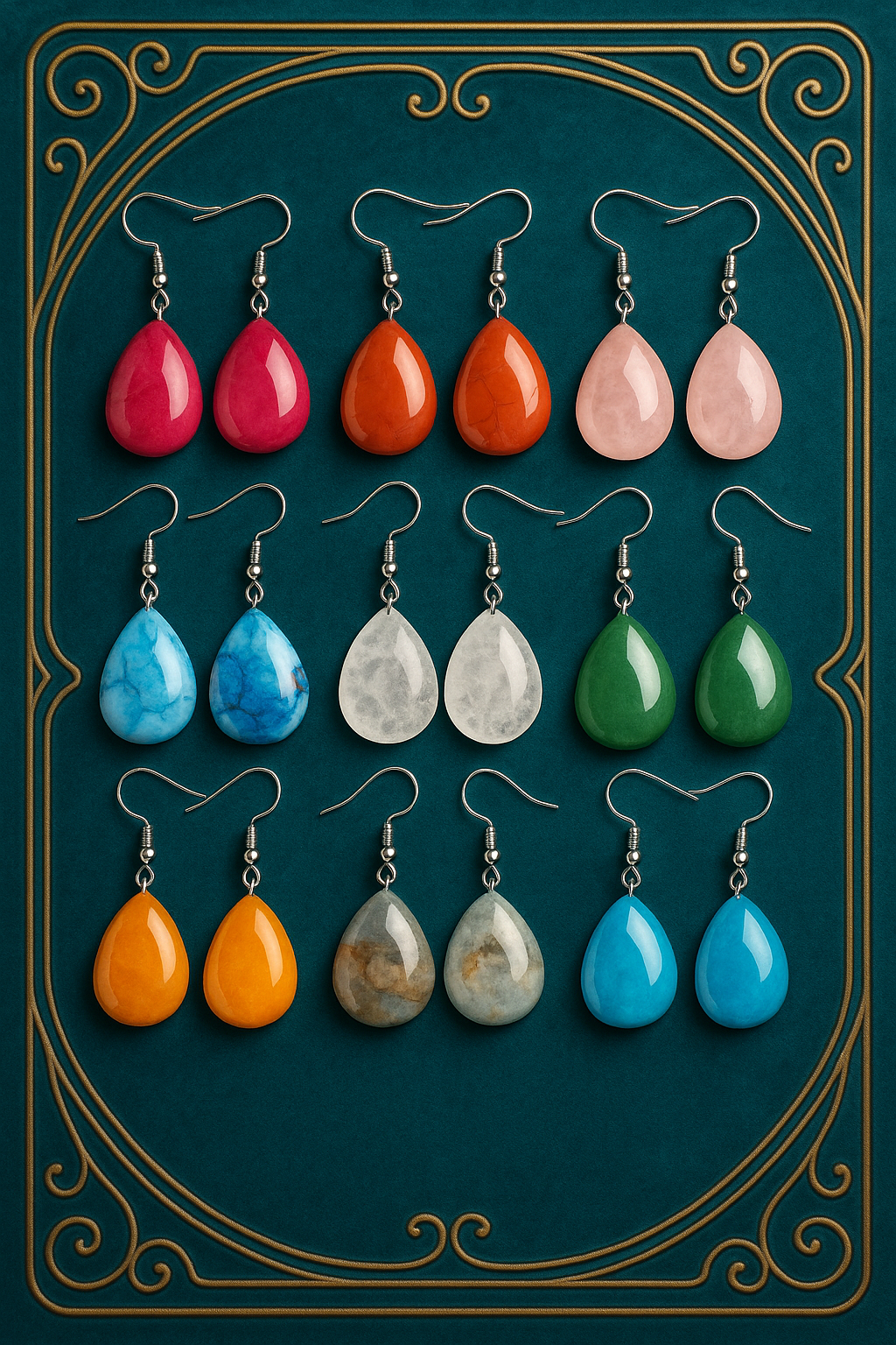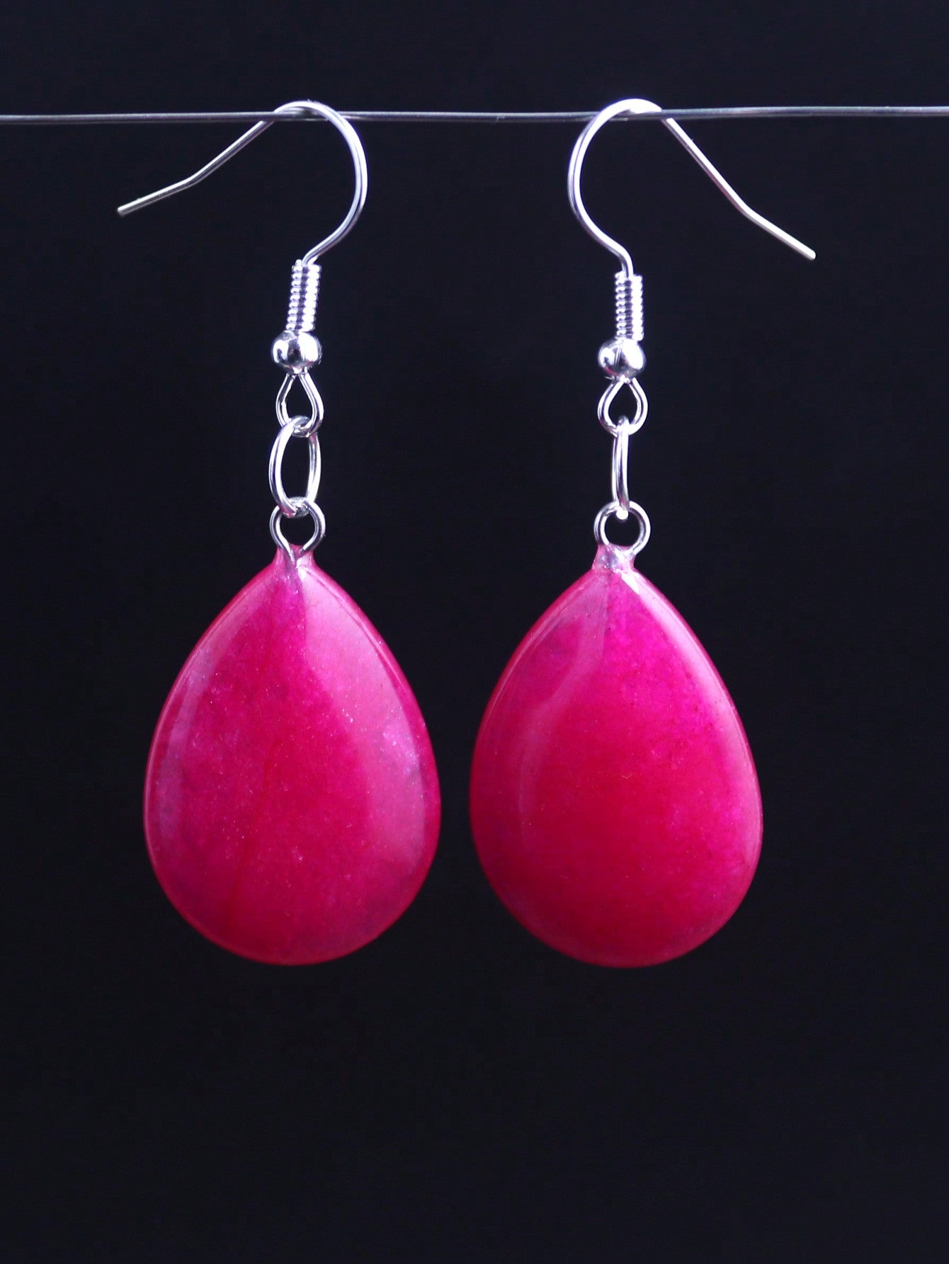 1 Pair Waterdrop Natural Stone Long Drop Earrings – Pink Crystal & Agate