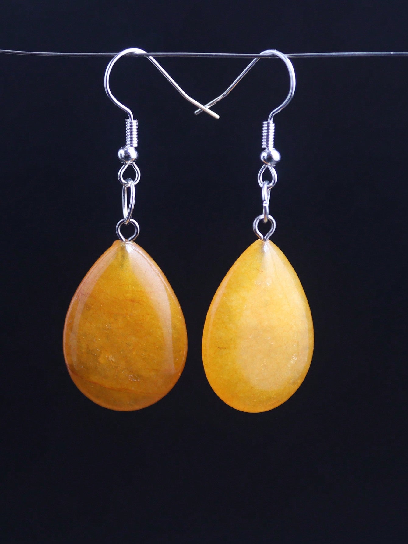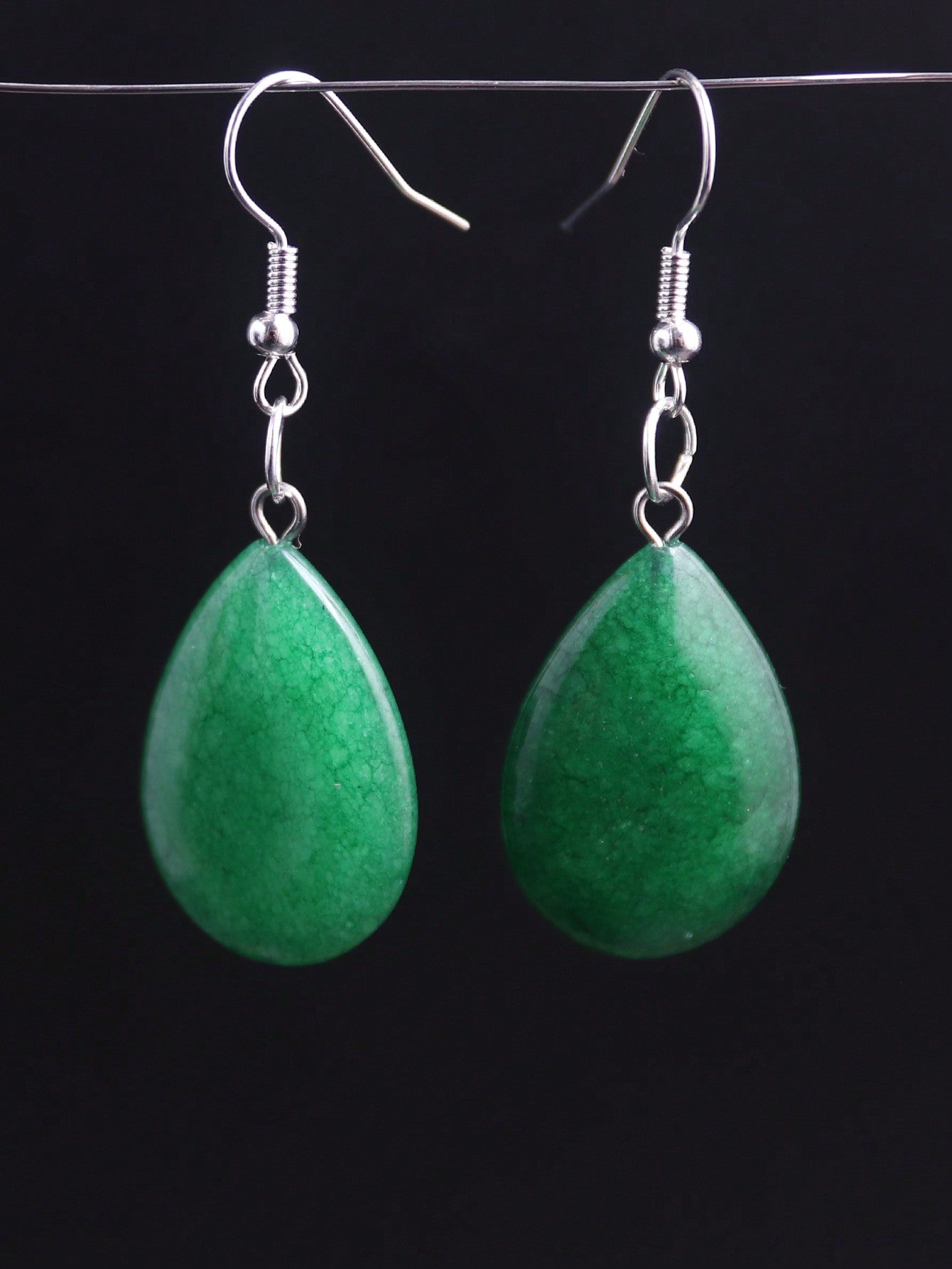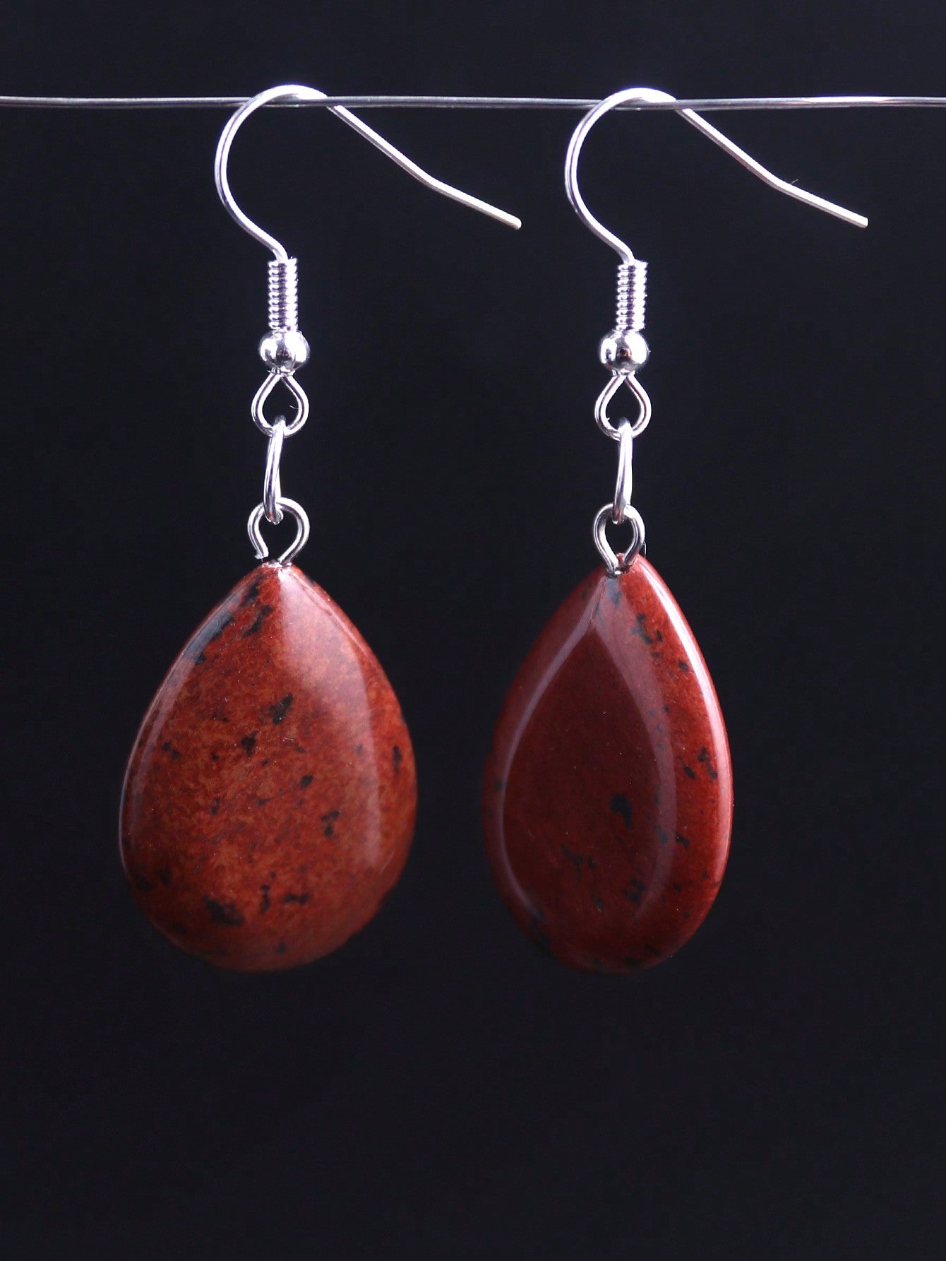 1 Pair Waterdrop Natural Stone Long Drop Earrings – Pink Crystal & Agate