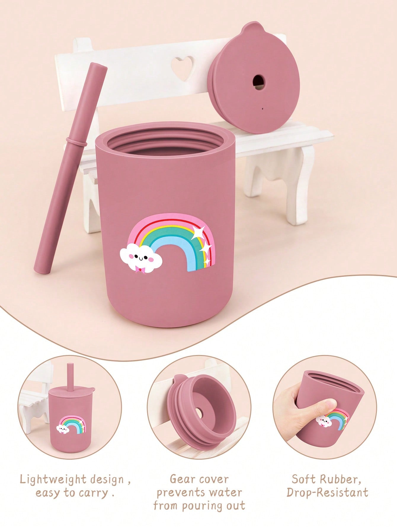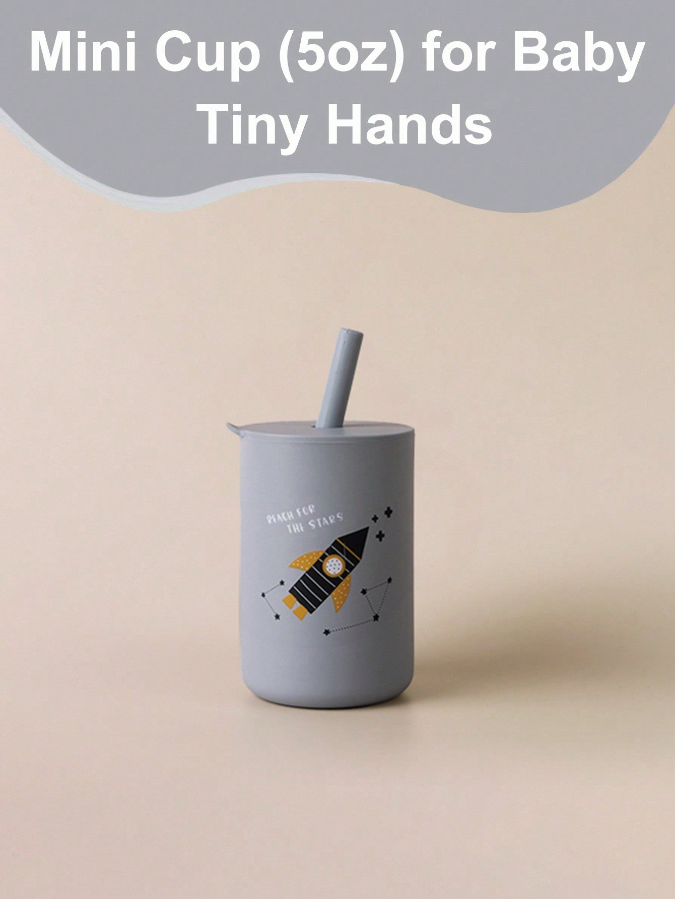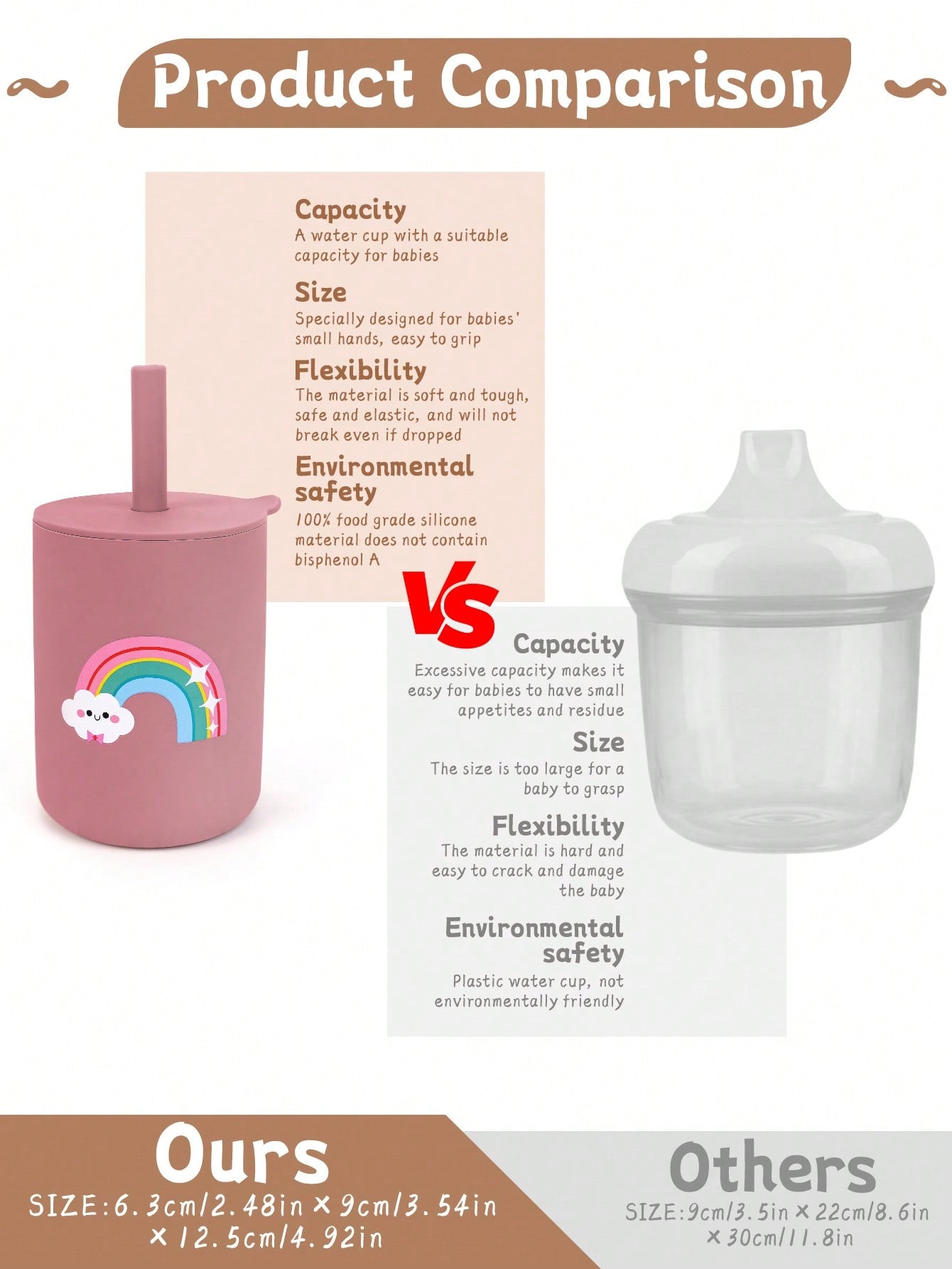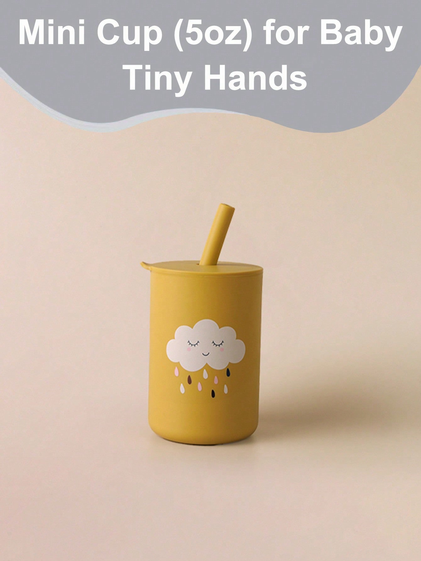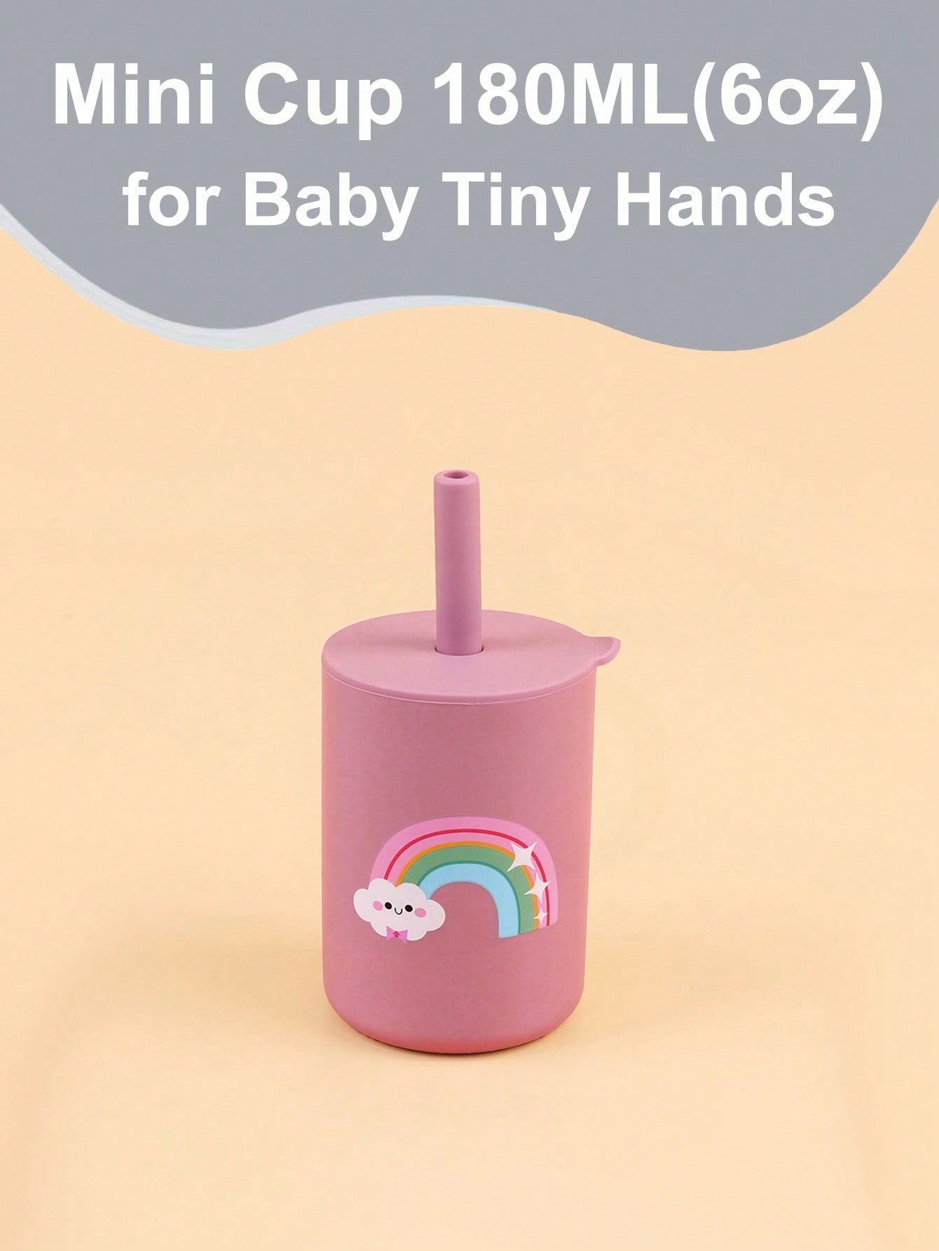1pc 180ml/6oz Silicone Baby Straw Cup, Mini Sippy Cup For Toddlers Beginner, Infant Feeding Stage 1 Practical Drinking Cup