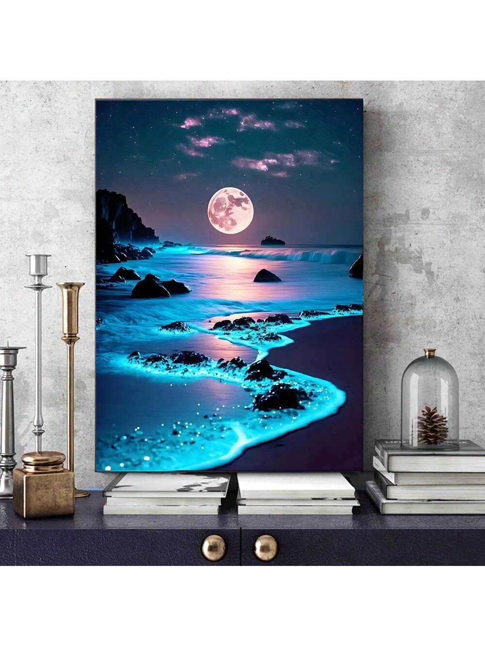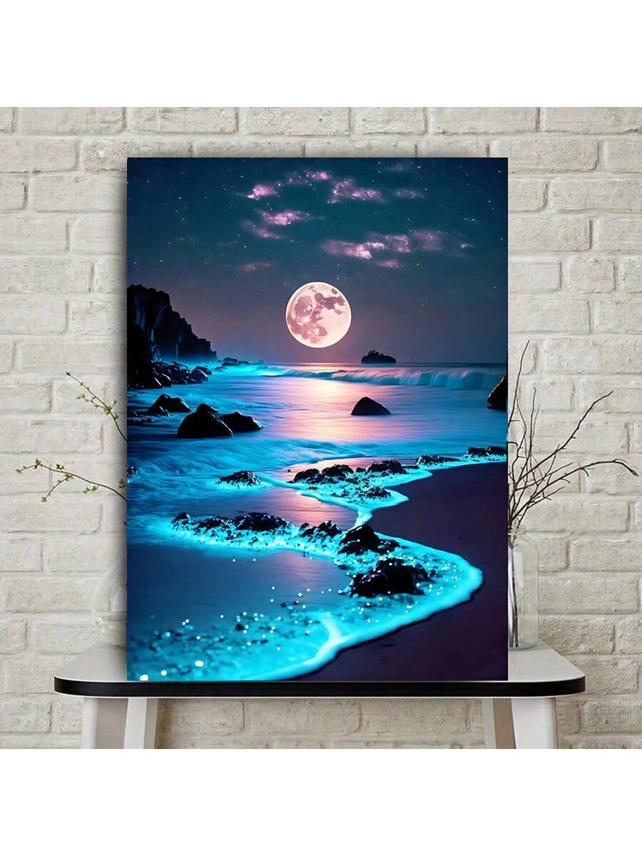 1pc Canvas Wall Art Blue Beach Modern Night Pictures Living Room Bedroom Kitchen Office Cafe Decoration No Frame,Poster