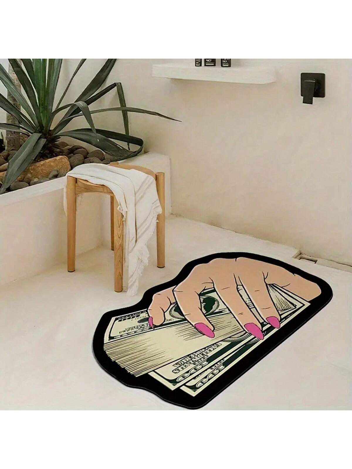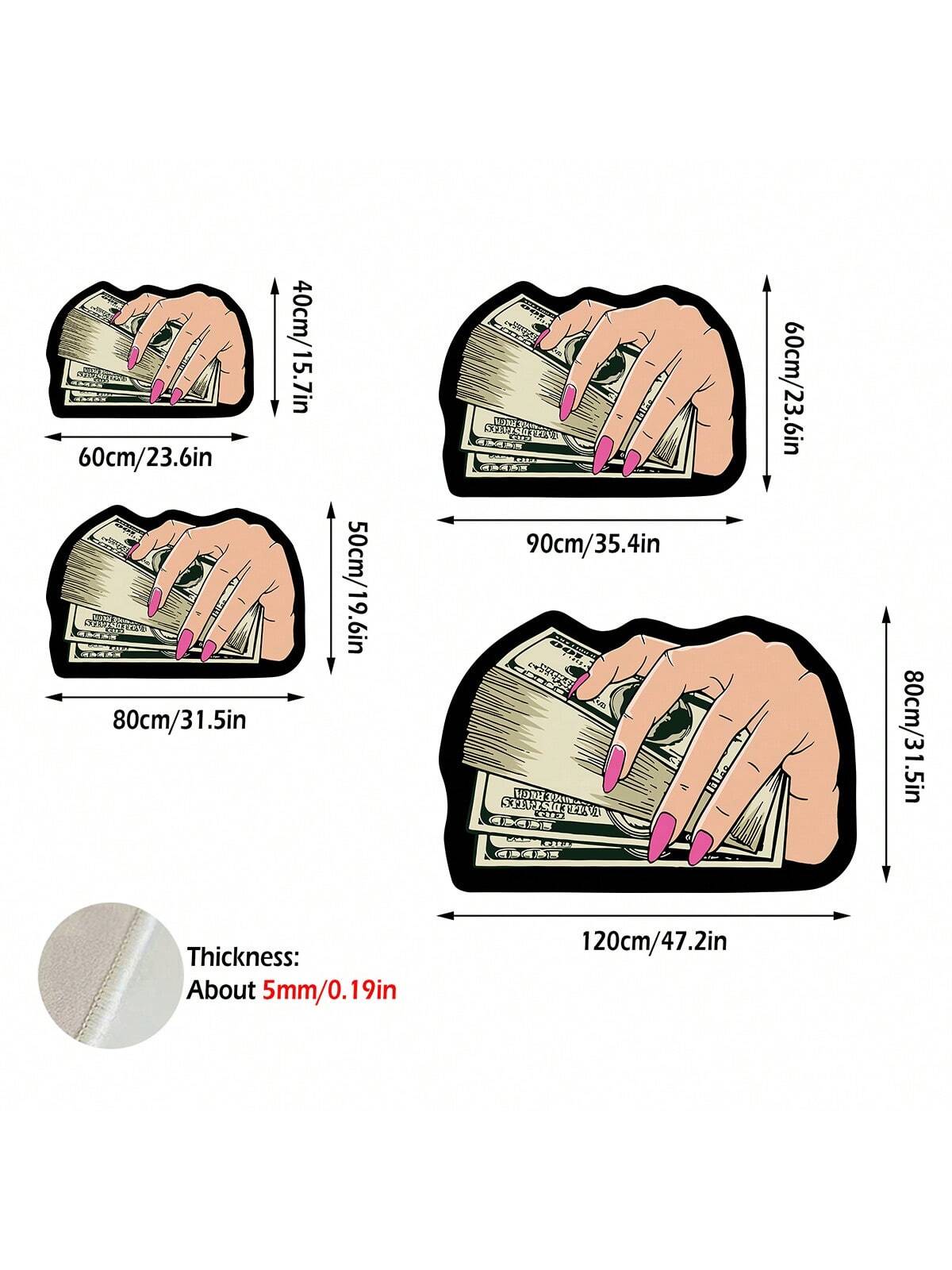 1pc Cartoon Ins Style Dollar Bill Pattern Carpet, Interesting & Cute Plush Velvet Backed Asymmetrical Shaped Area Rug, Anti-Slip Doormat For Living Room, Bedroom, Kitchen, Bathroom, Laundry Room, Hallway, Entryway, Game Room, All Season Home Decor Rugs D
