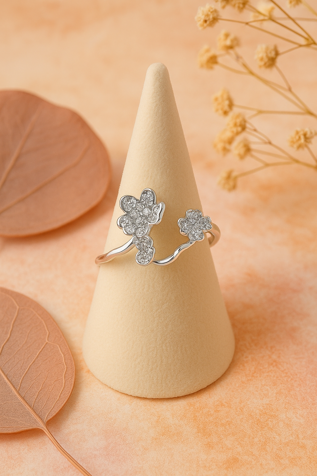 1Pc 925 Sterling Silver Adjustable Flower Ring with Artificial Zirconia – Elegant & Romantic Design