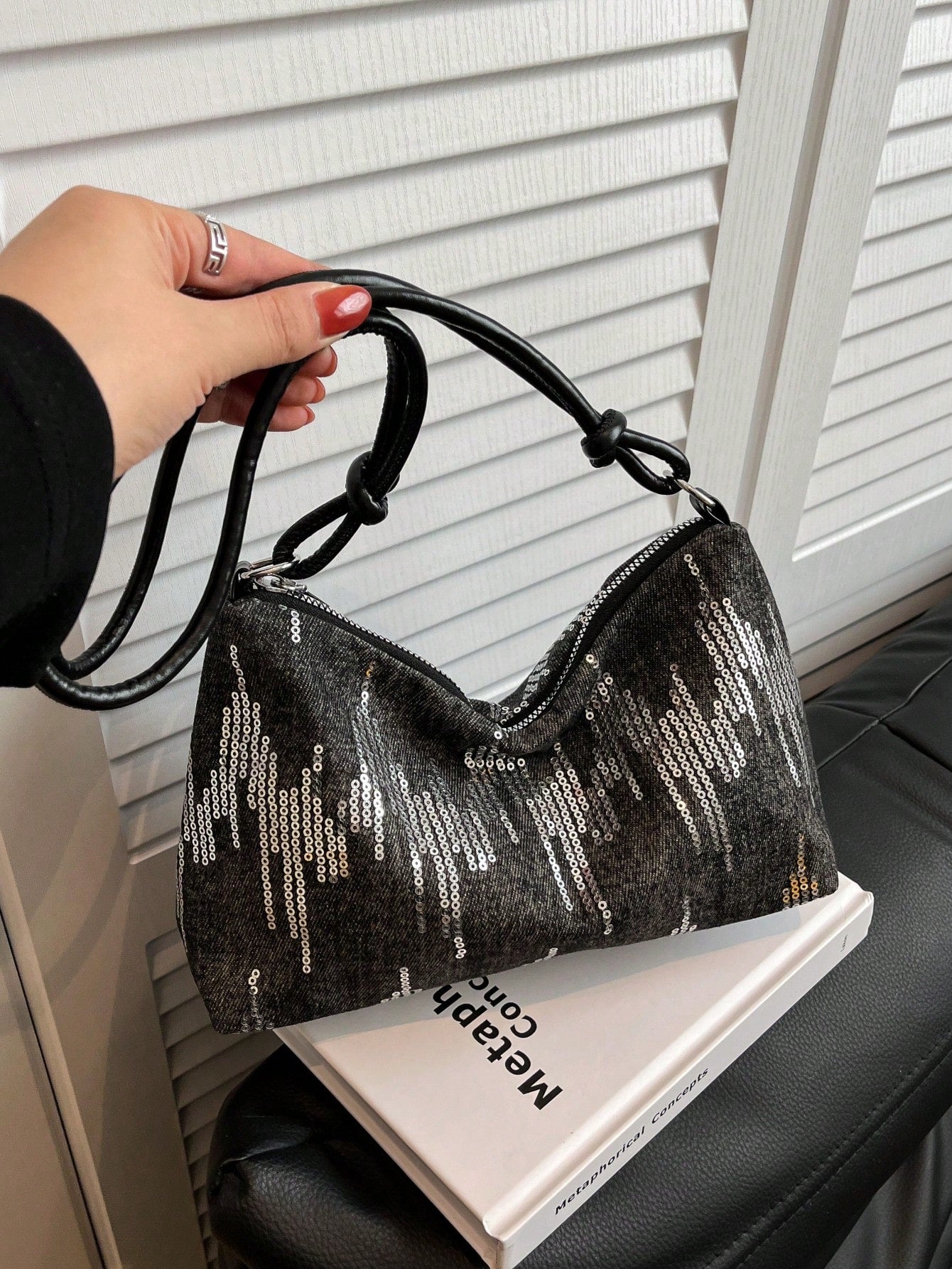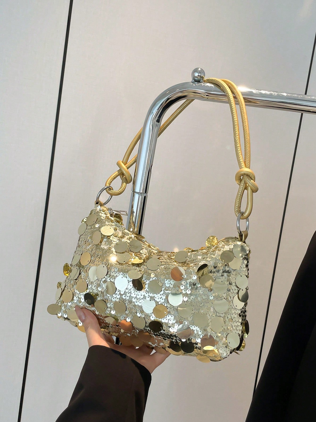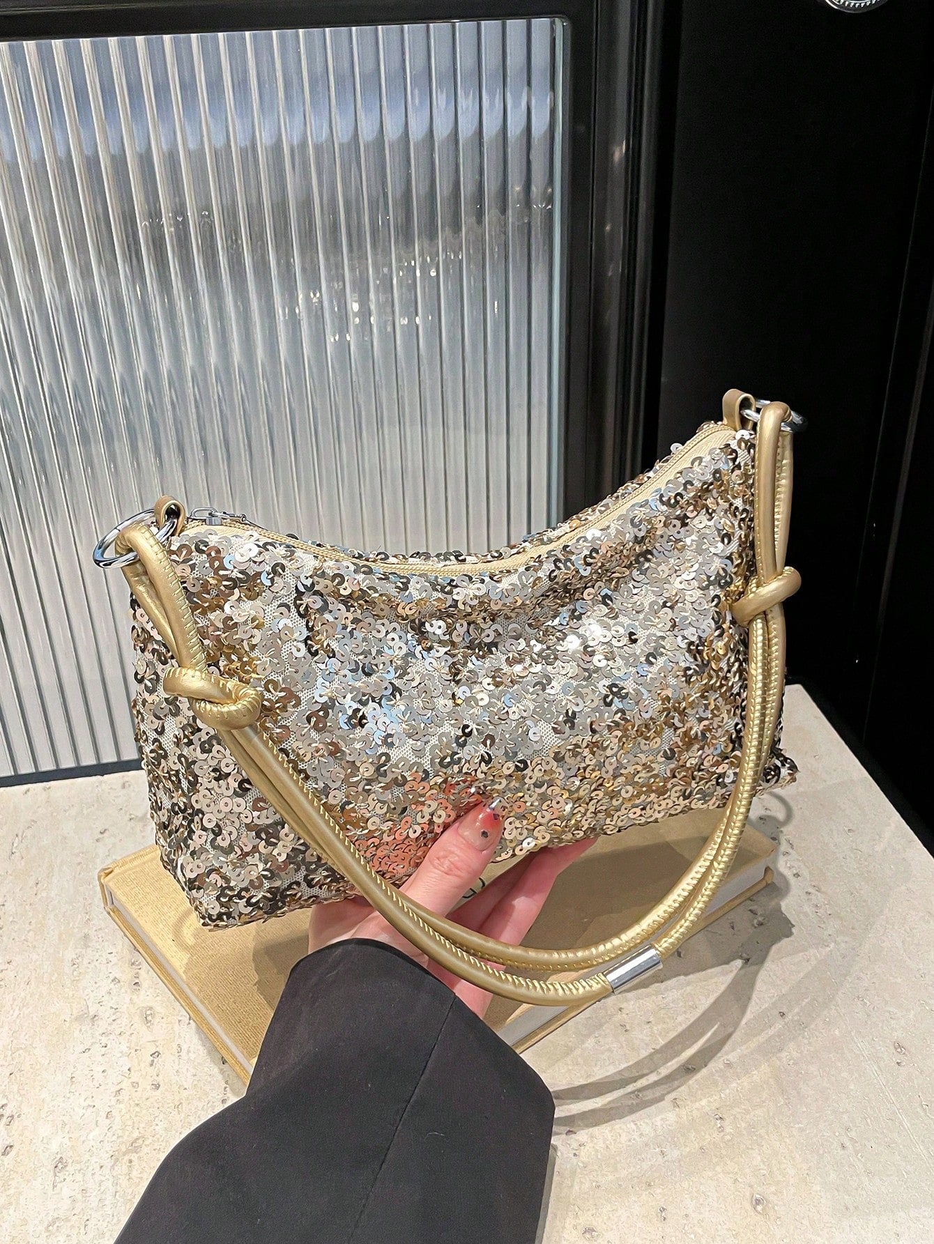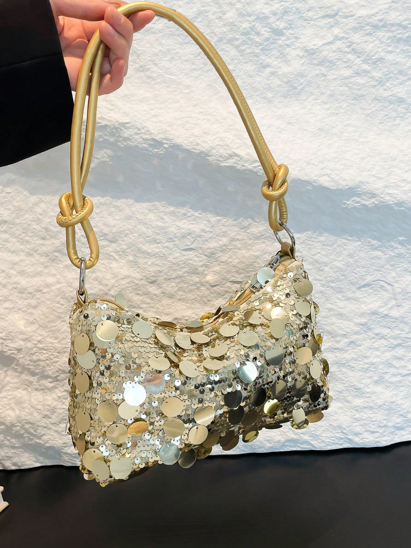 1pc Gold-Tone Glittery Crescent Moon Shape PVC Shoulder Bag For Women