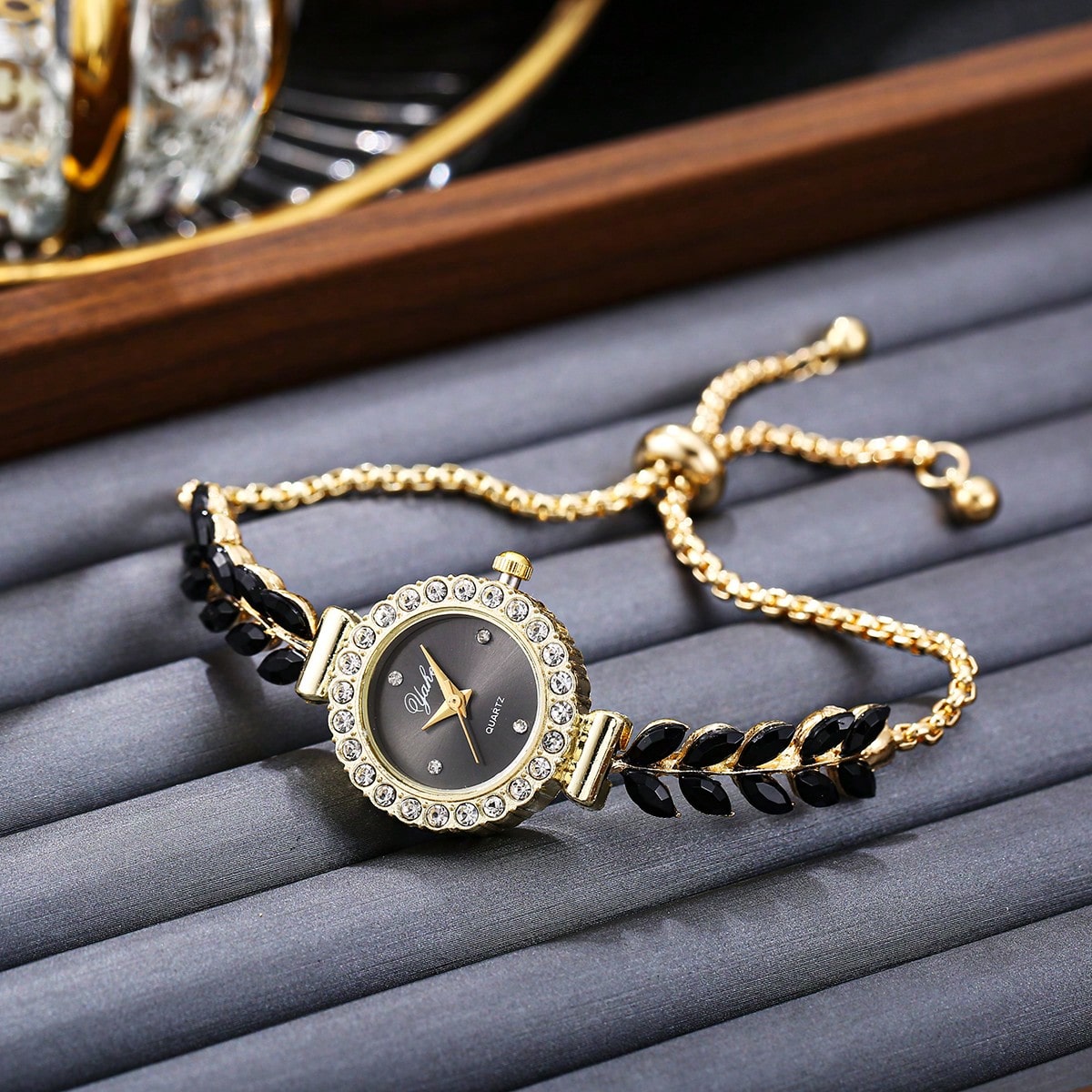 1pc Lady Cute Elegant Colorful Stone Party Gift Watch