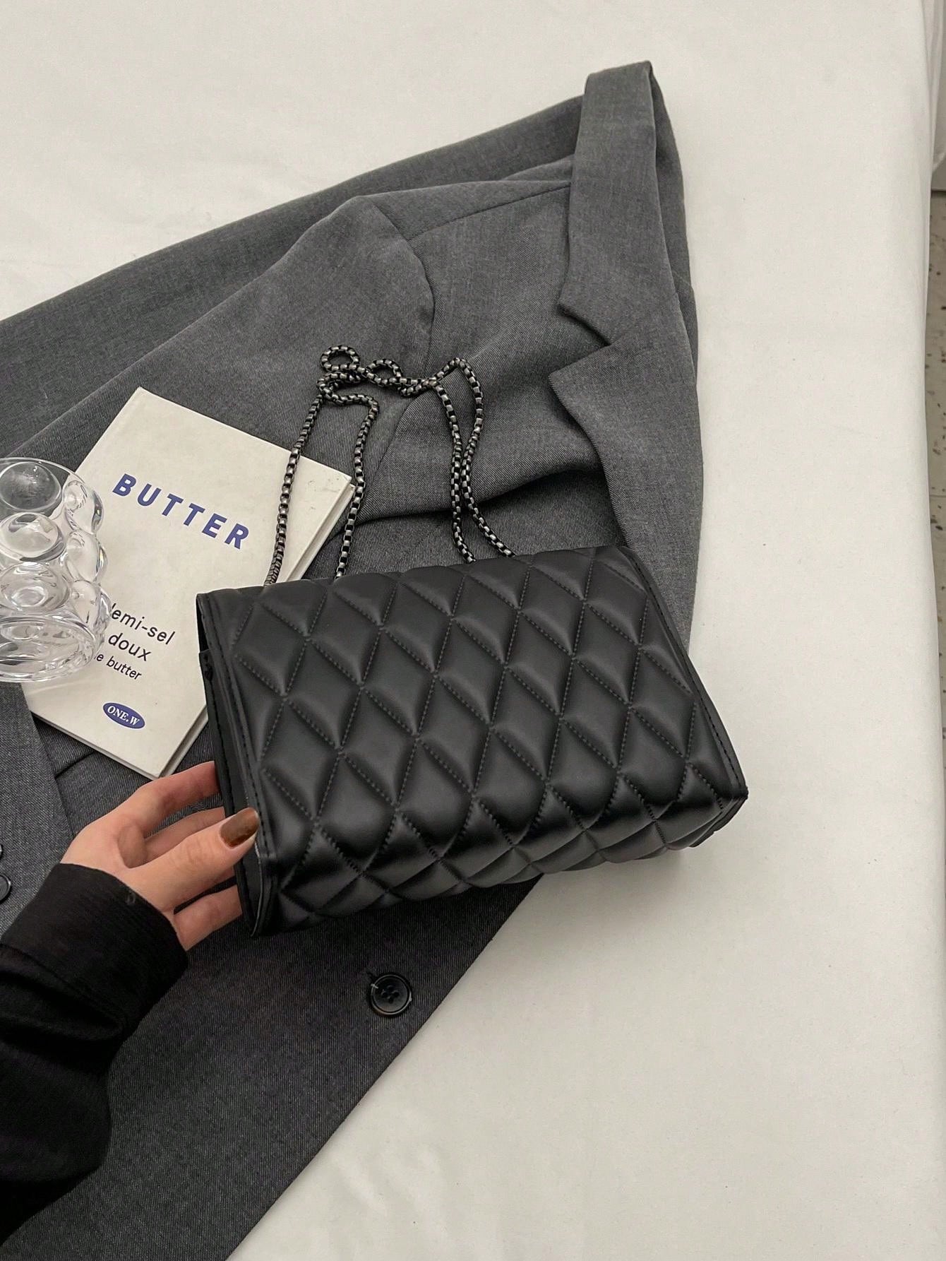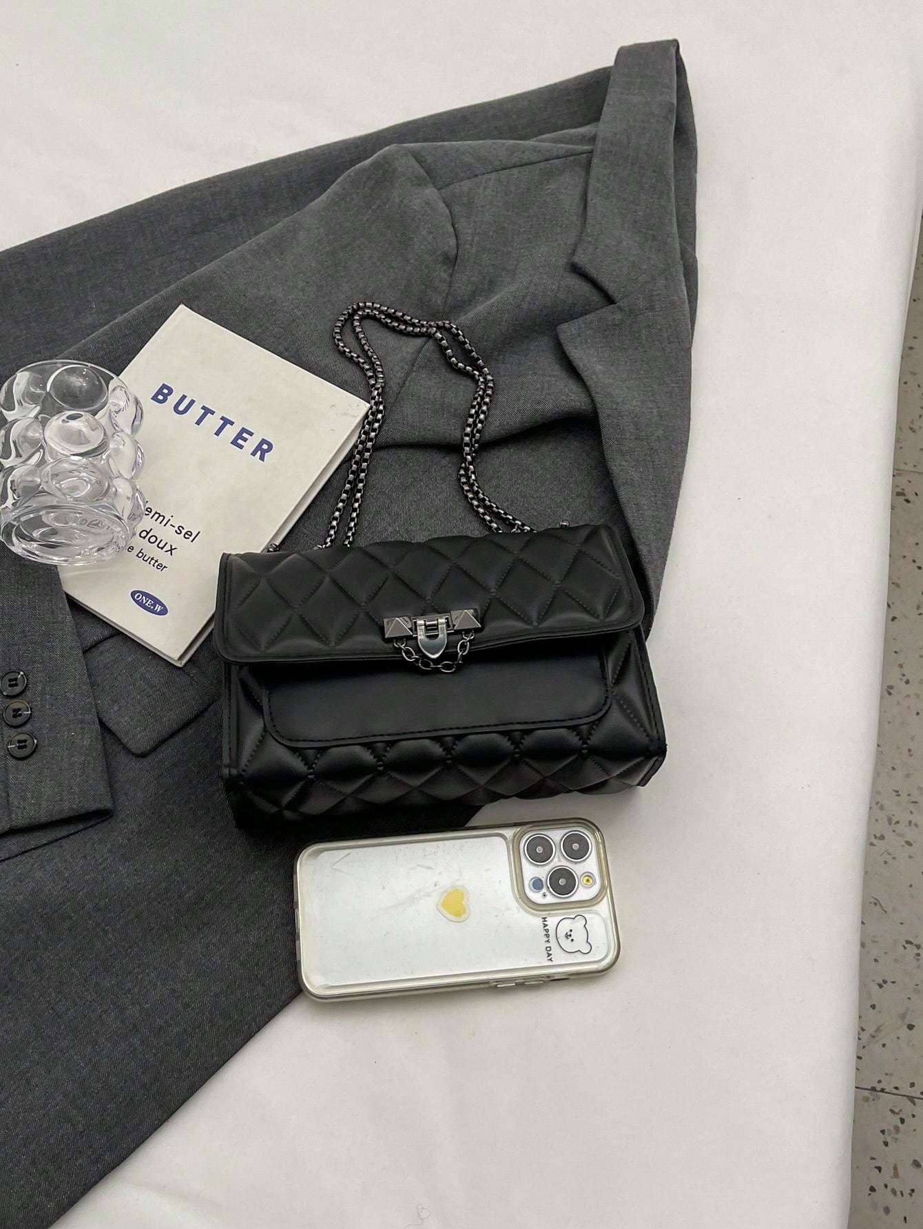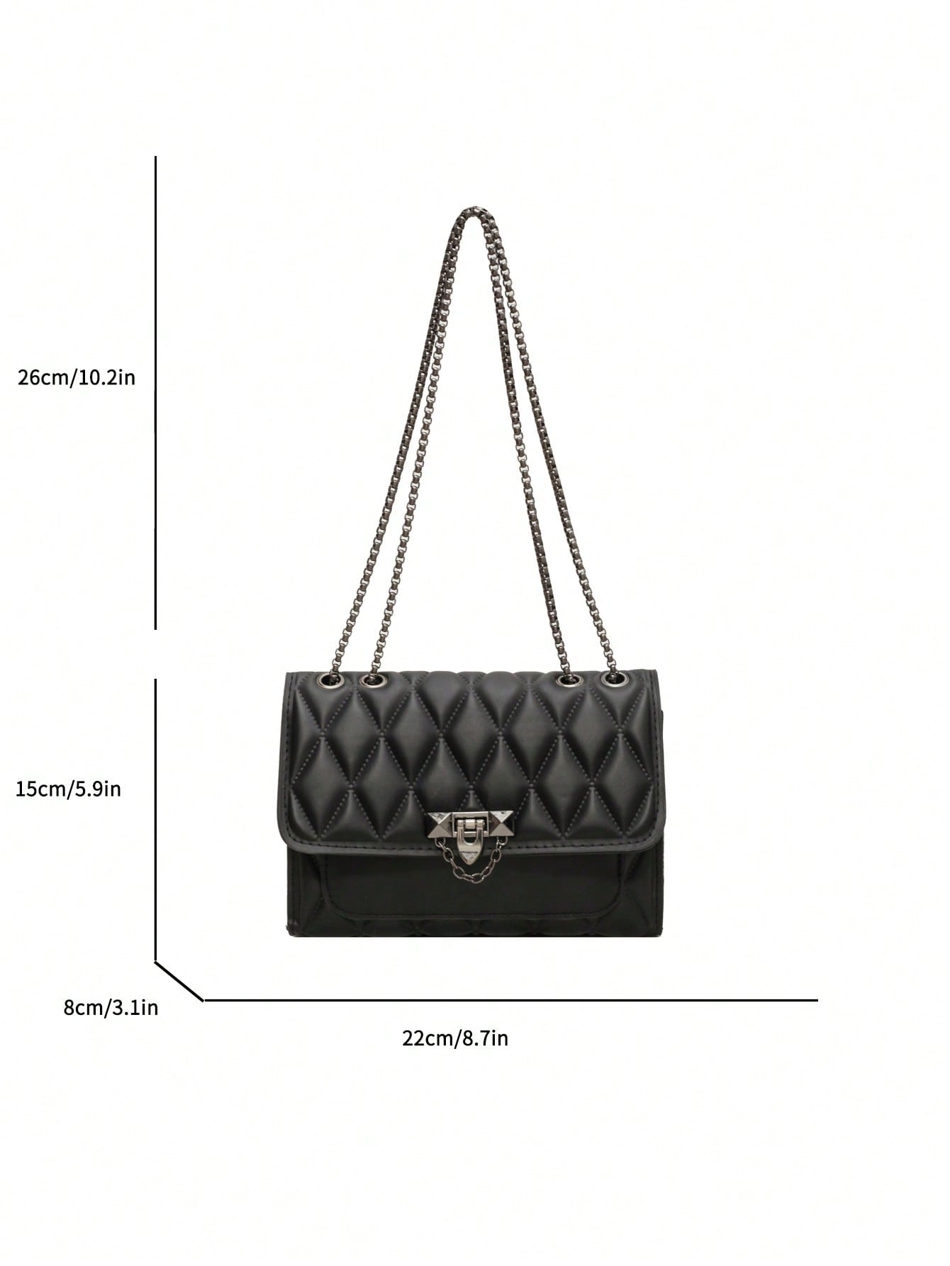 1pc Minimalist Fashion Indentation Diamond Lattice Square Bag Lock Closure Flap Opening Metal Chain Shoulder Bag Suitable For Women's Daily Casual Use
