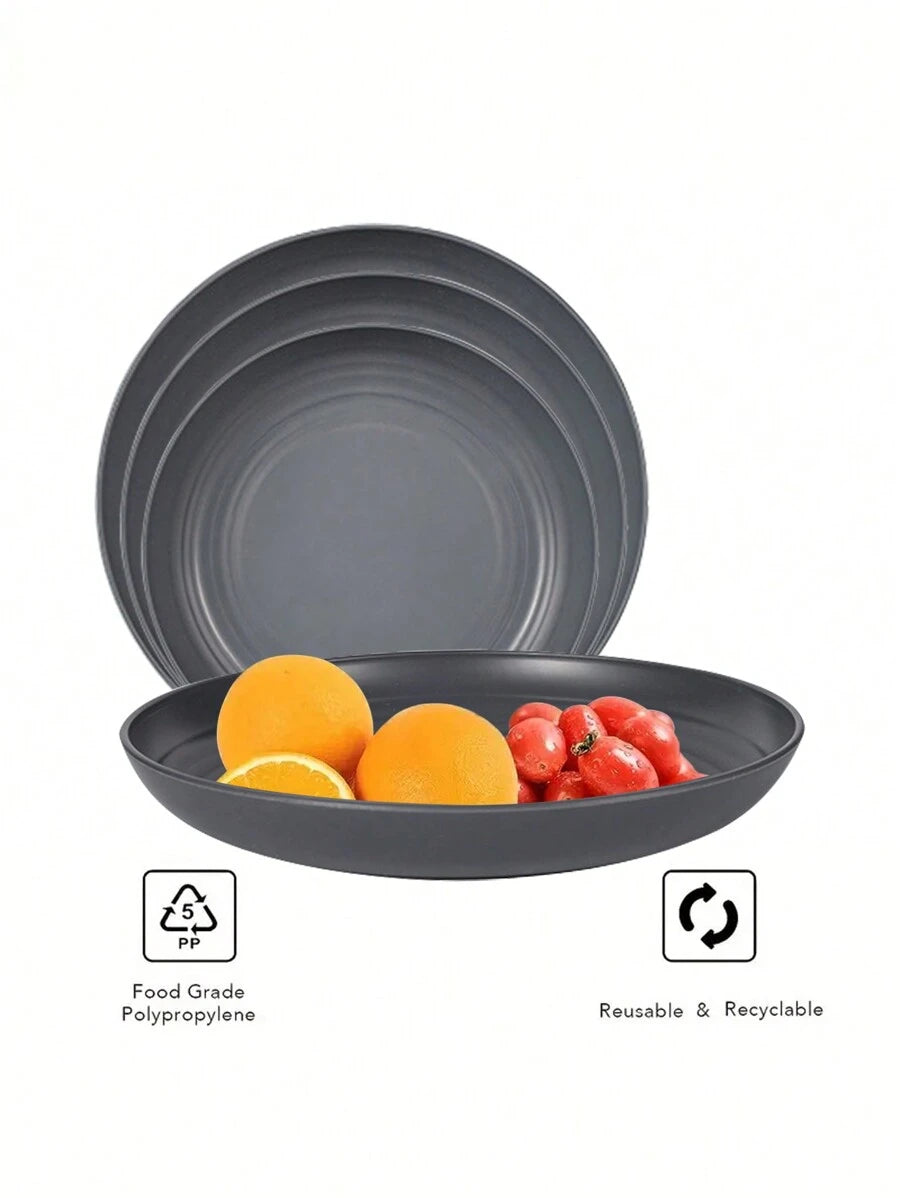 2/4/8pcs 8-Inch Plastic Plates, Lightweight Deep Dish, Reusable PP Plate, Safe Tableware For Teen & Adult, Black Color For RV Camping, Picnic, Kitchen & Dorm,Kitchen,Christmas Gift