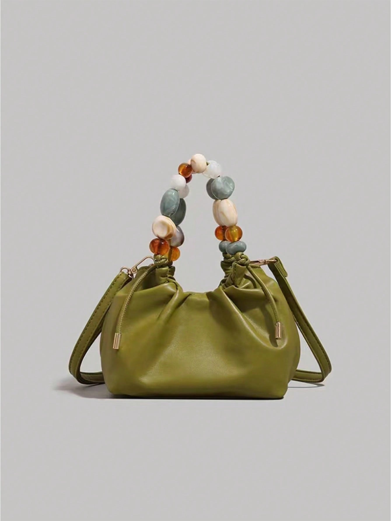 2024 New Solid Color Minimalist Pearl Handbag, New Chinese Retro Chain Shoulder Crossbody Bag, Niche Design Wrinkle Party Evening Bag For Women