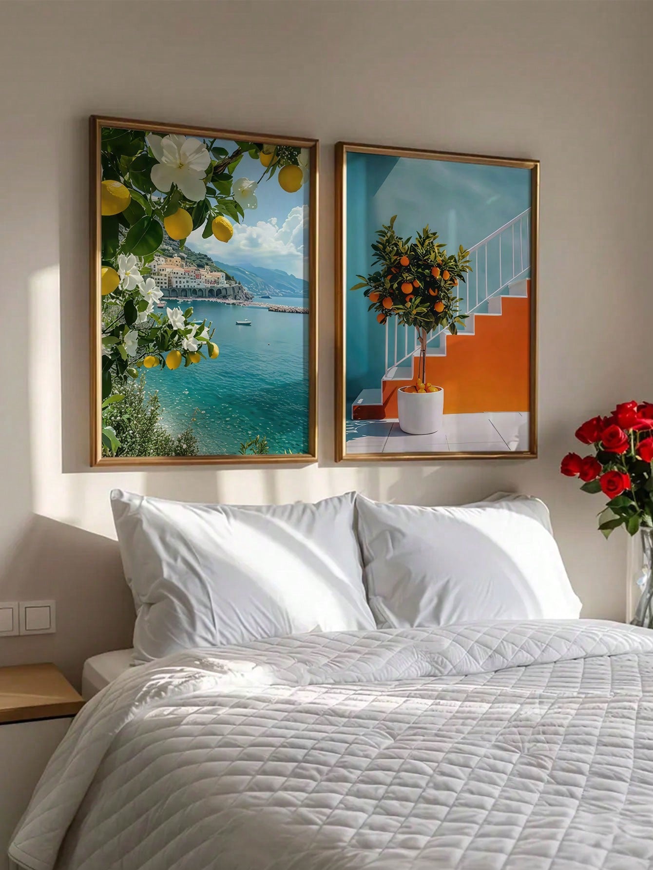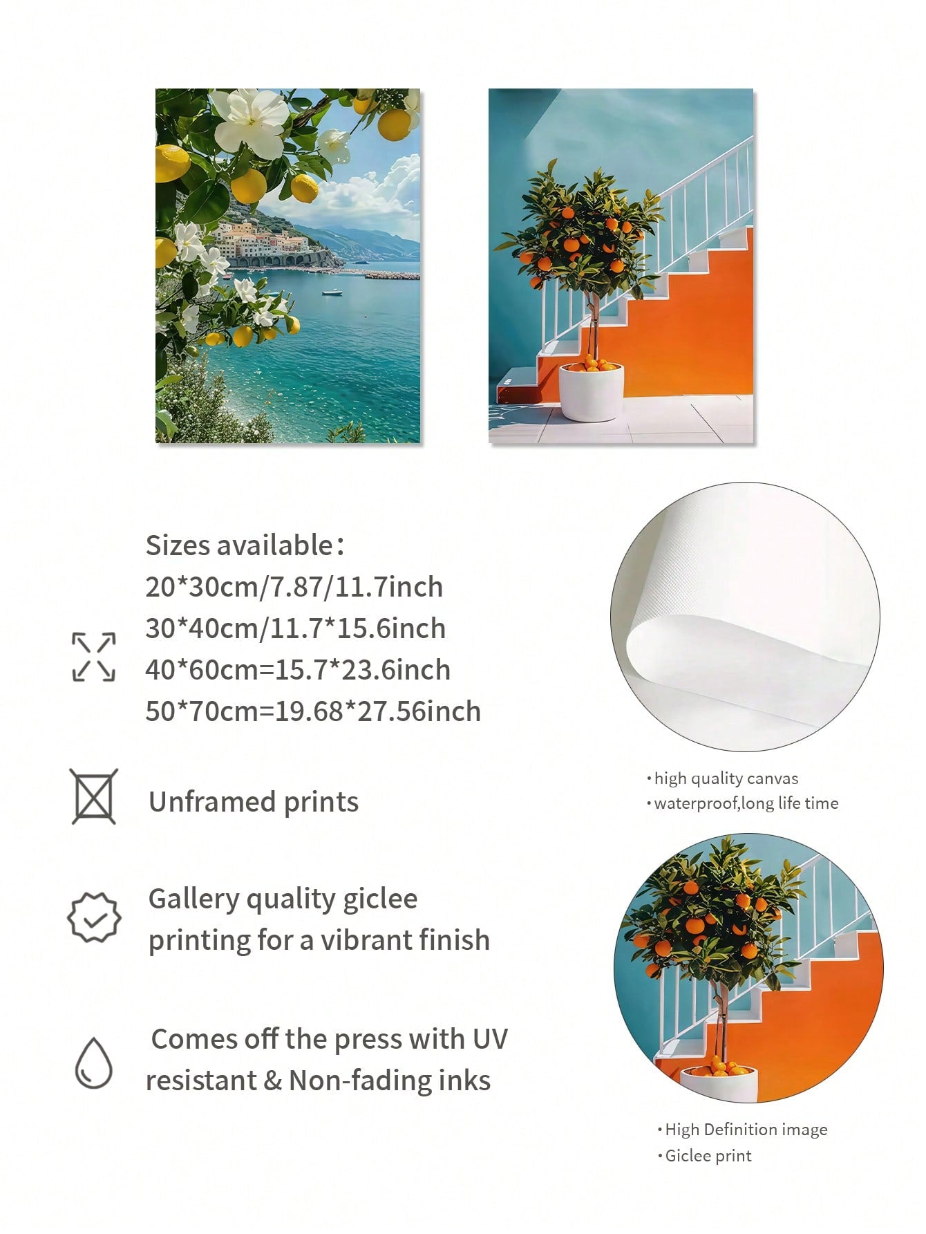 2PCS/SET Italian Lemon Orange Olive Tree Retro Mediterranean Greece Landscape Poster Canvas Painting Wall Art Pictures Home Decoration