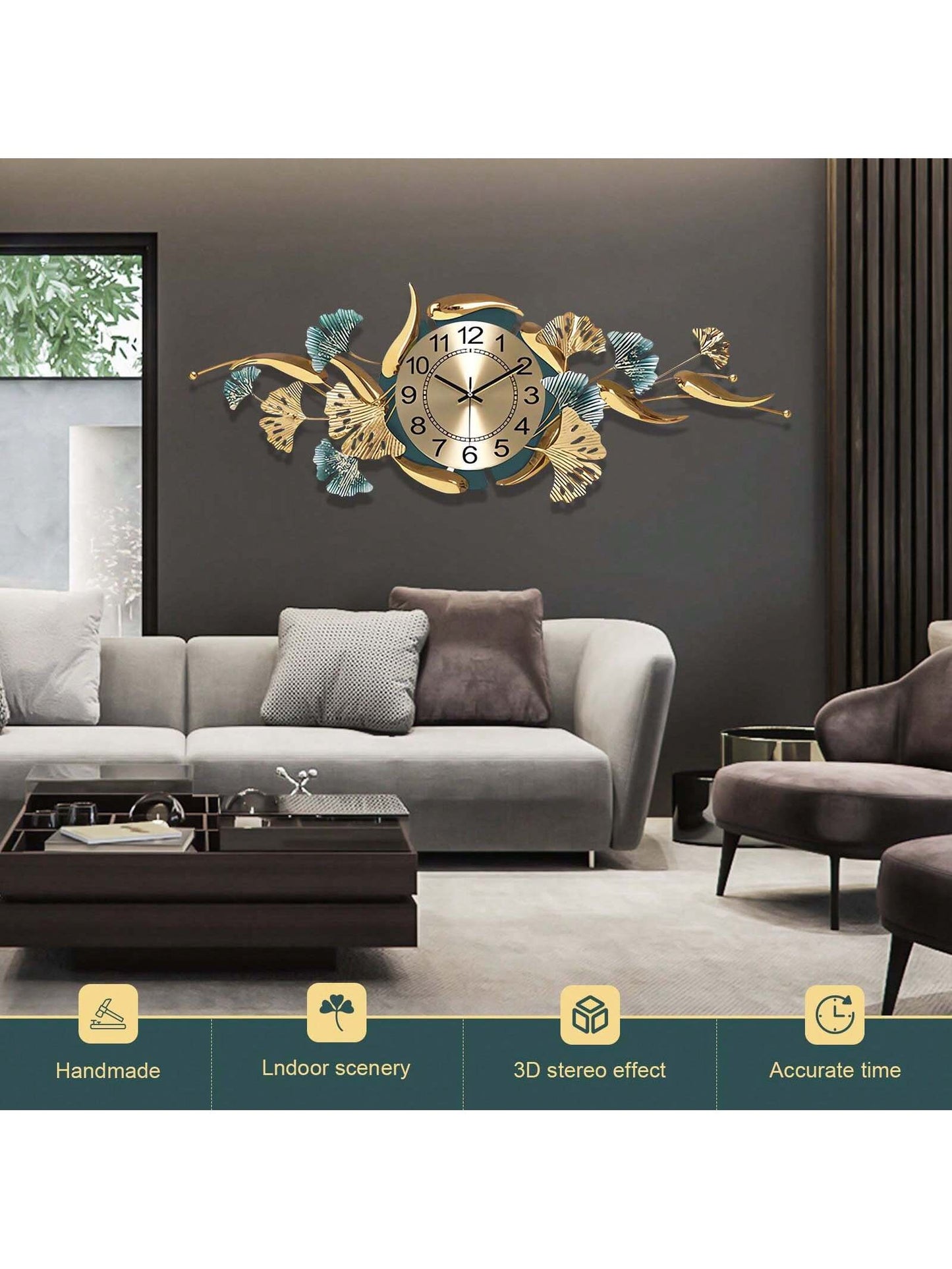 36 Inch Wall Clock For Living Room Decor, Golden Fish Decorative Wall Clock, Modern Silent Non-Ticking Wall Clock For Bedroom Entryway