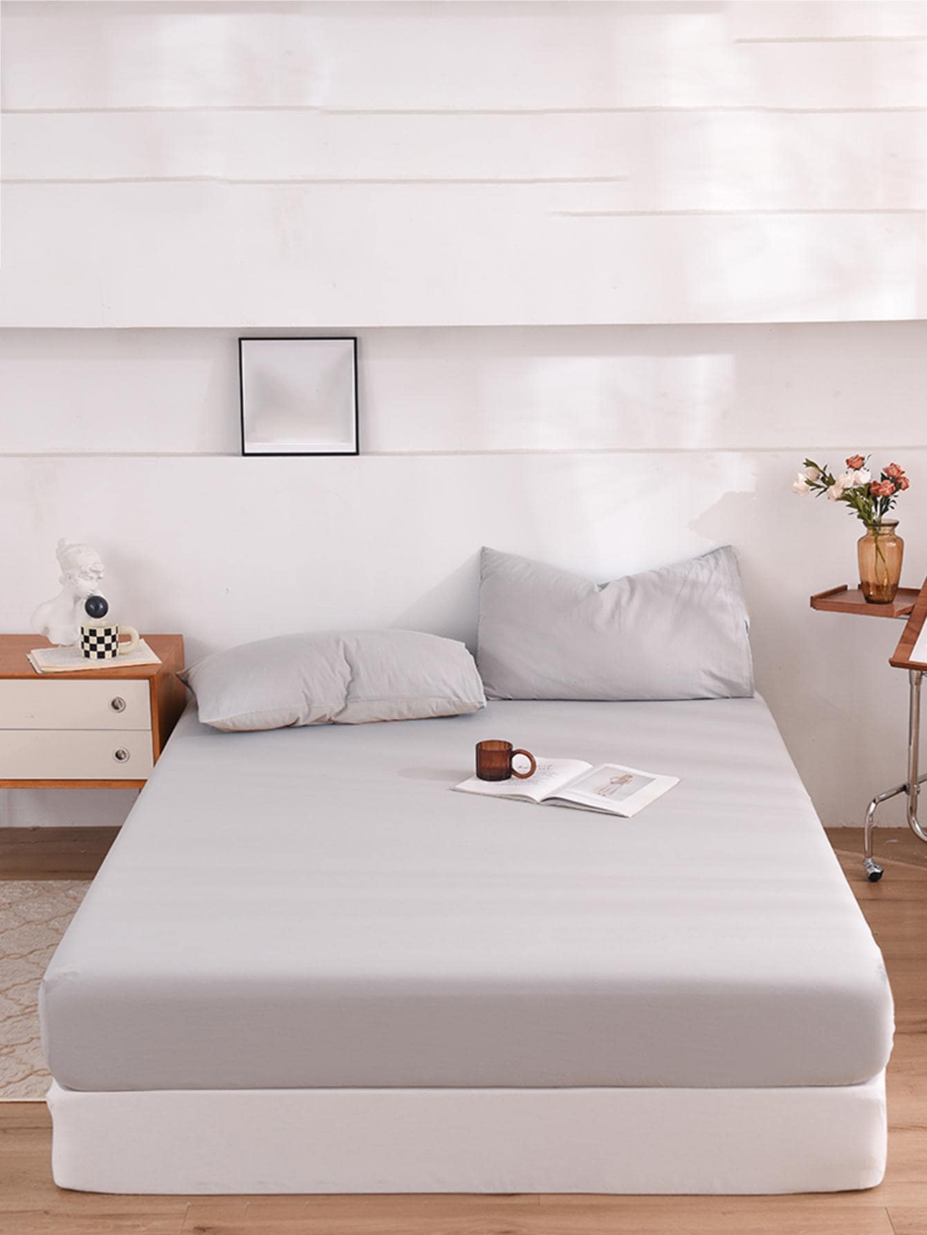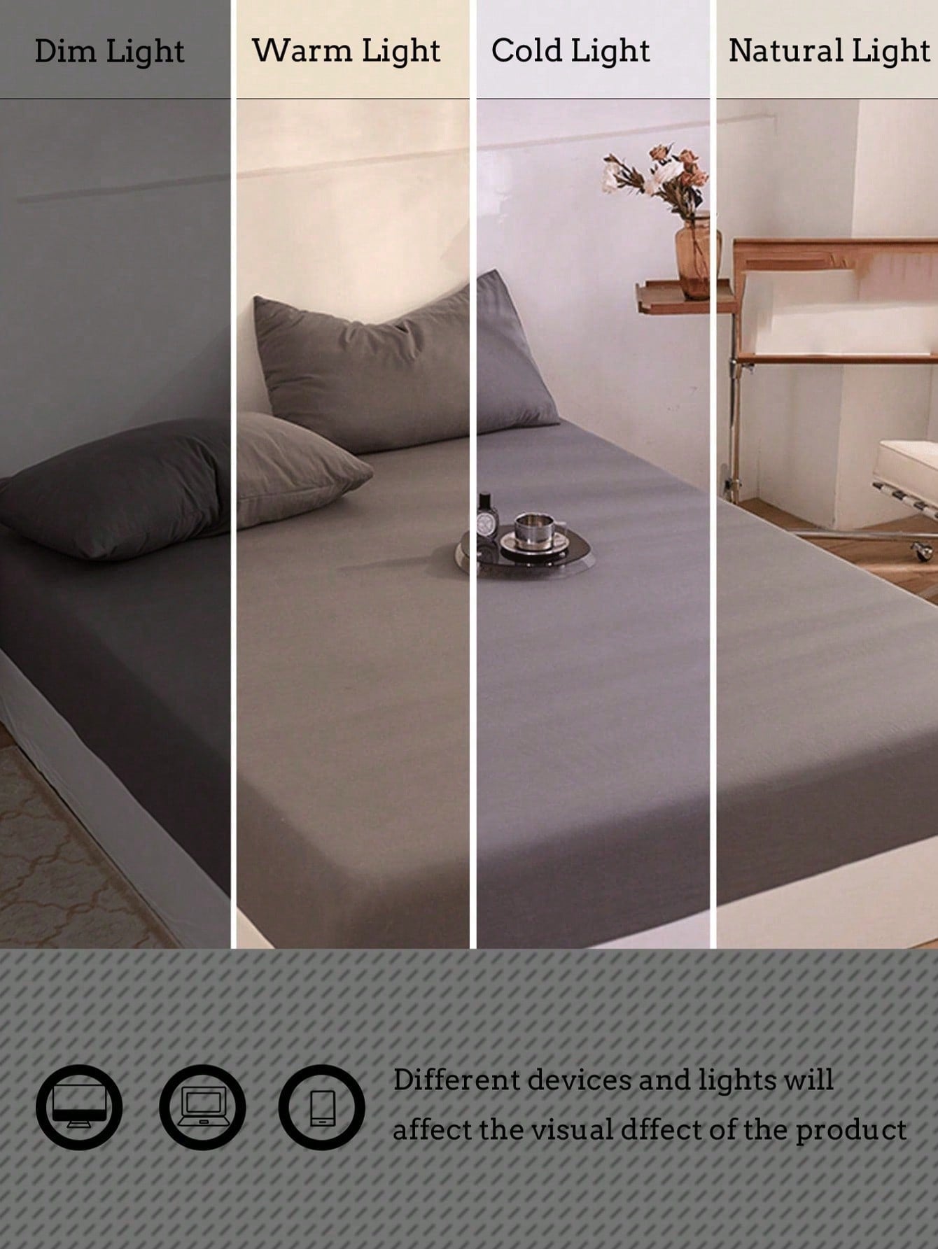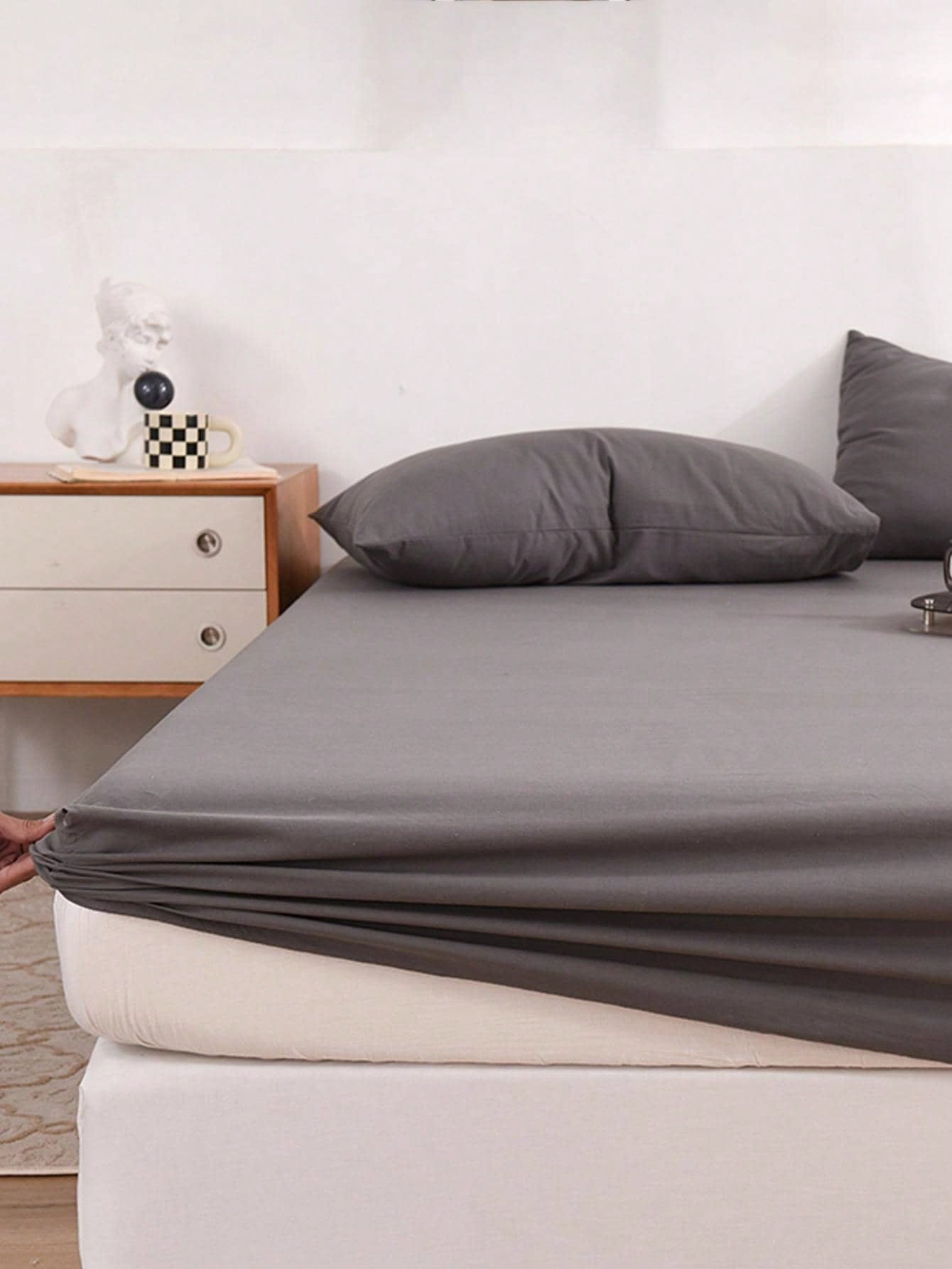 3pcs Soft Plush Bedding Set, Fitted Sheet, Suitable For Bedroom And Guest Room, Dark Grey
