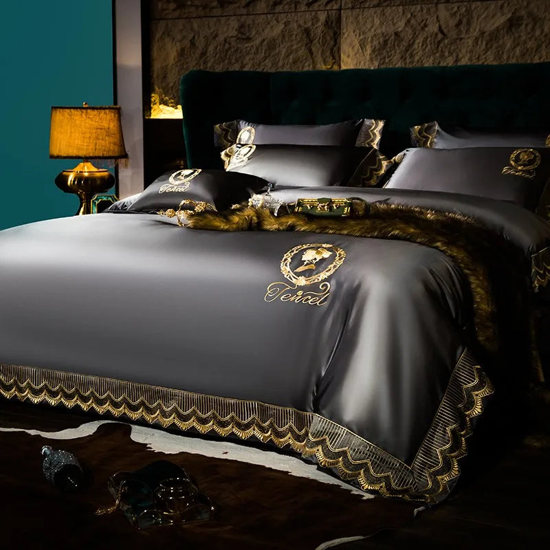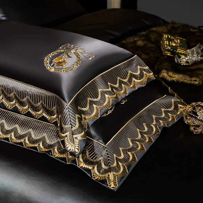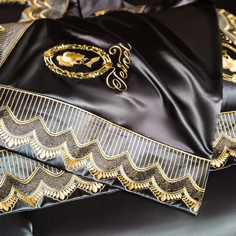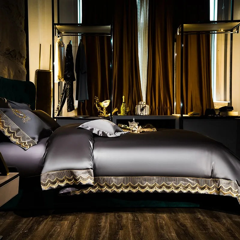 4/6Pcs Satin like Silk and Cotton Embroidery Duvet Cover Set Double Queen King size Luxury Bedding Set Flat Sheet Pillow shams