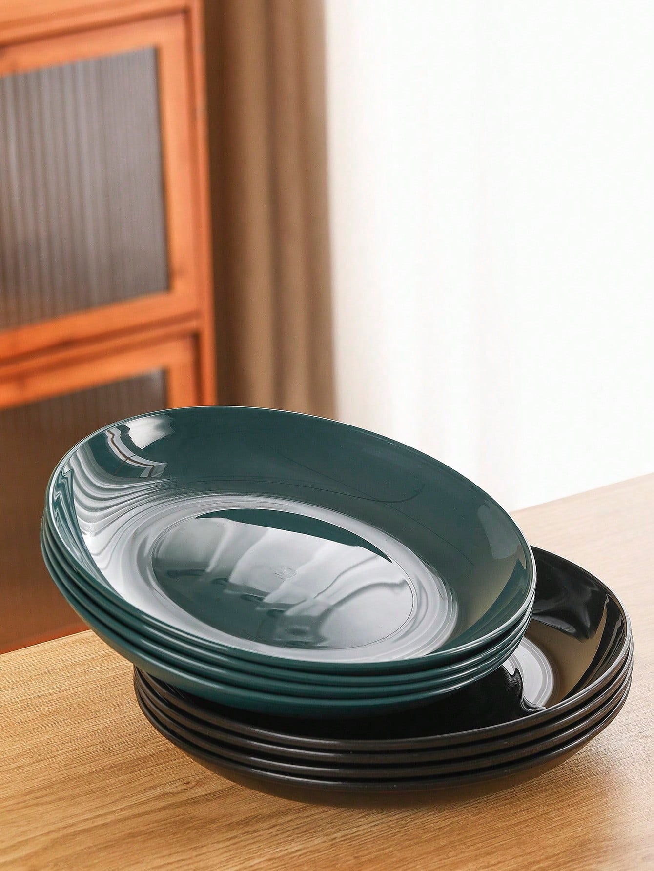 8pcs/Set Black Pp Plastic Dishes, 3 Sizes Available: 6.2/7.7/9.3inch, Simple Round Plates For Salad Serving,Kitchen,Christmas Gift