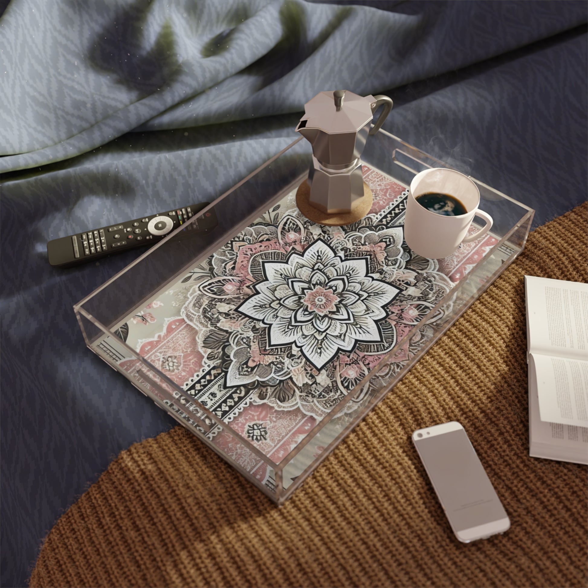 PrairieSpirits and bohemian vibes come together in this Acrylic Serving Tray from the Boho Designers Collection. Perfect for serving snacks or drinks with a touch of free-spirited style. Ideal for those who love bohemian decor and enjoy entertaining guests with a unique flair. Great for parties, gatherings, and special occasions.