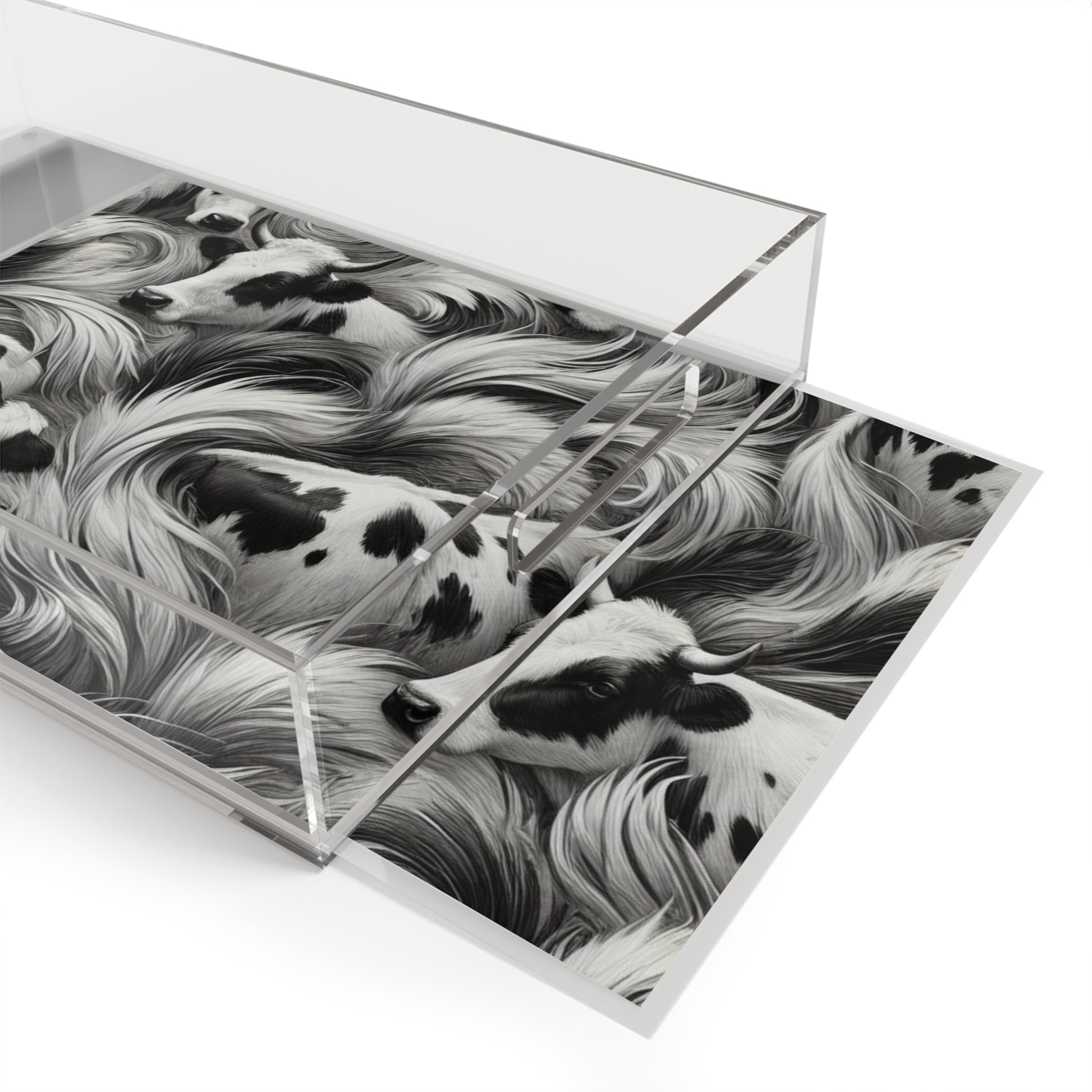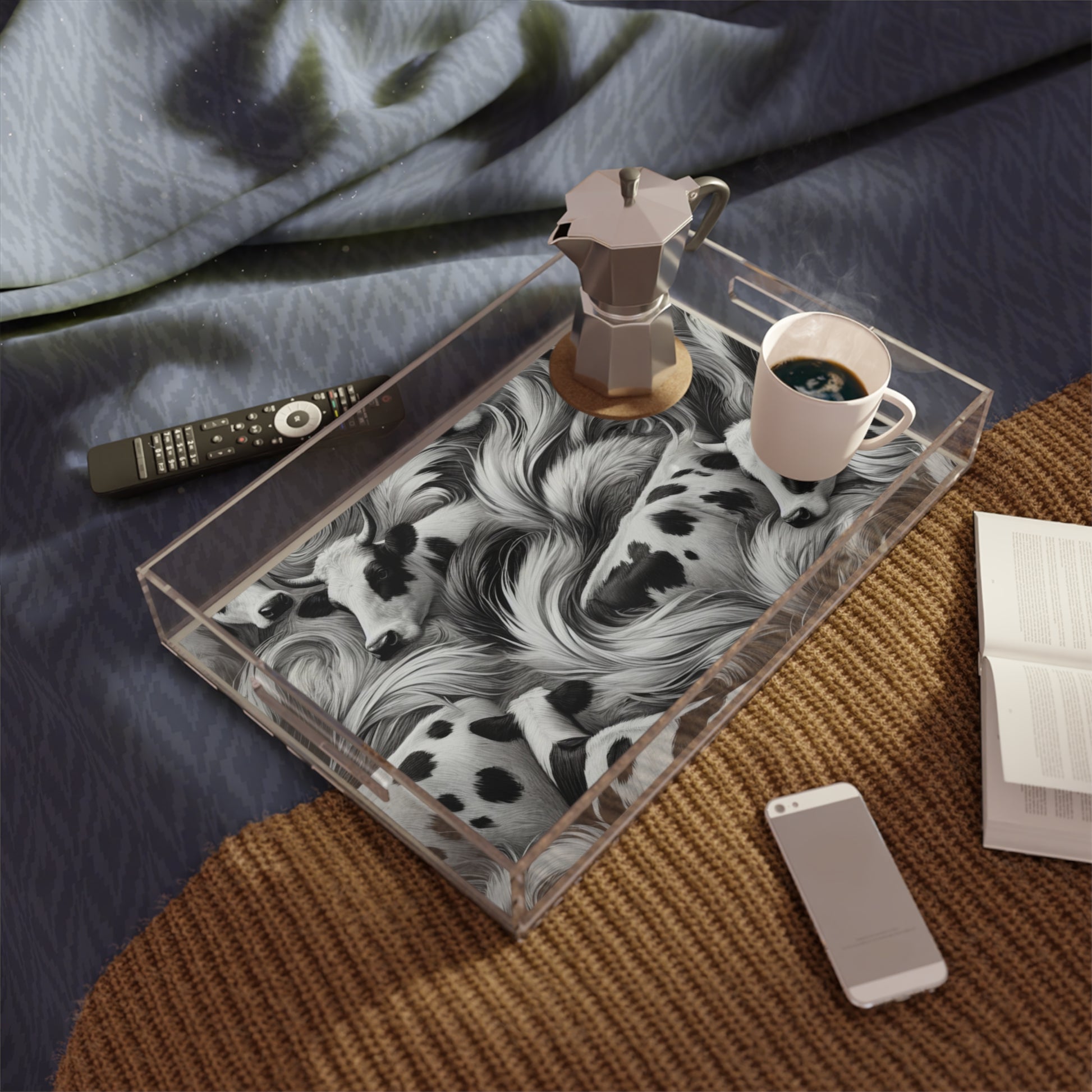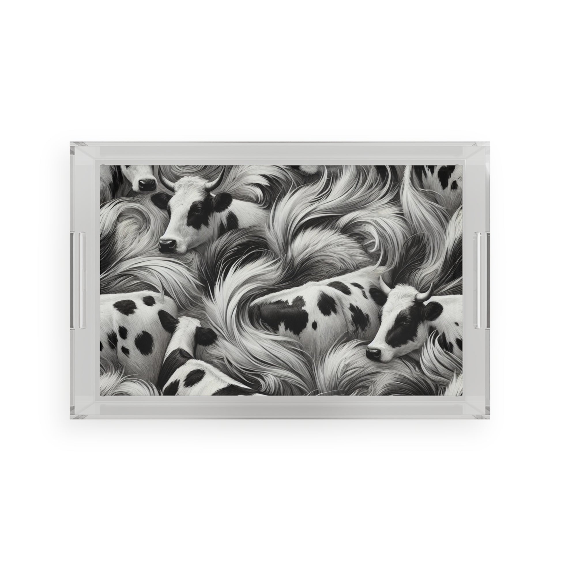 Elegant Acrylic Serving Tray with Cow Pattern | Rustic Farmhouse Decor