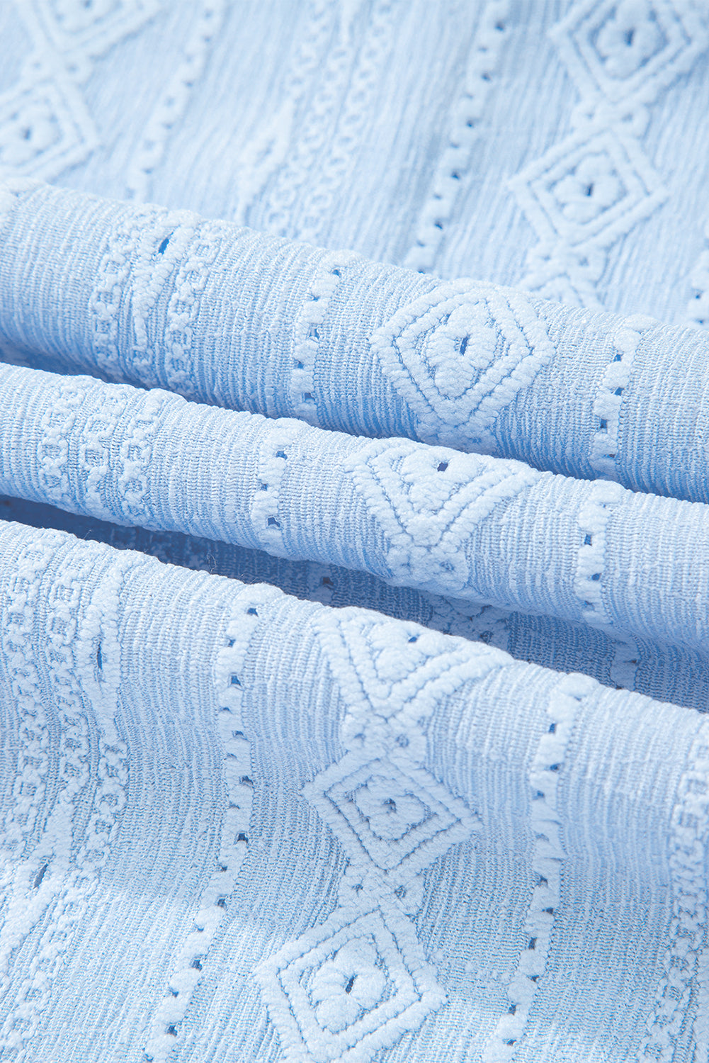 Beau Blue Split V-Neck Jacquard Eyelet Mini Dress