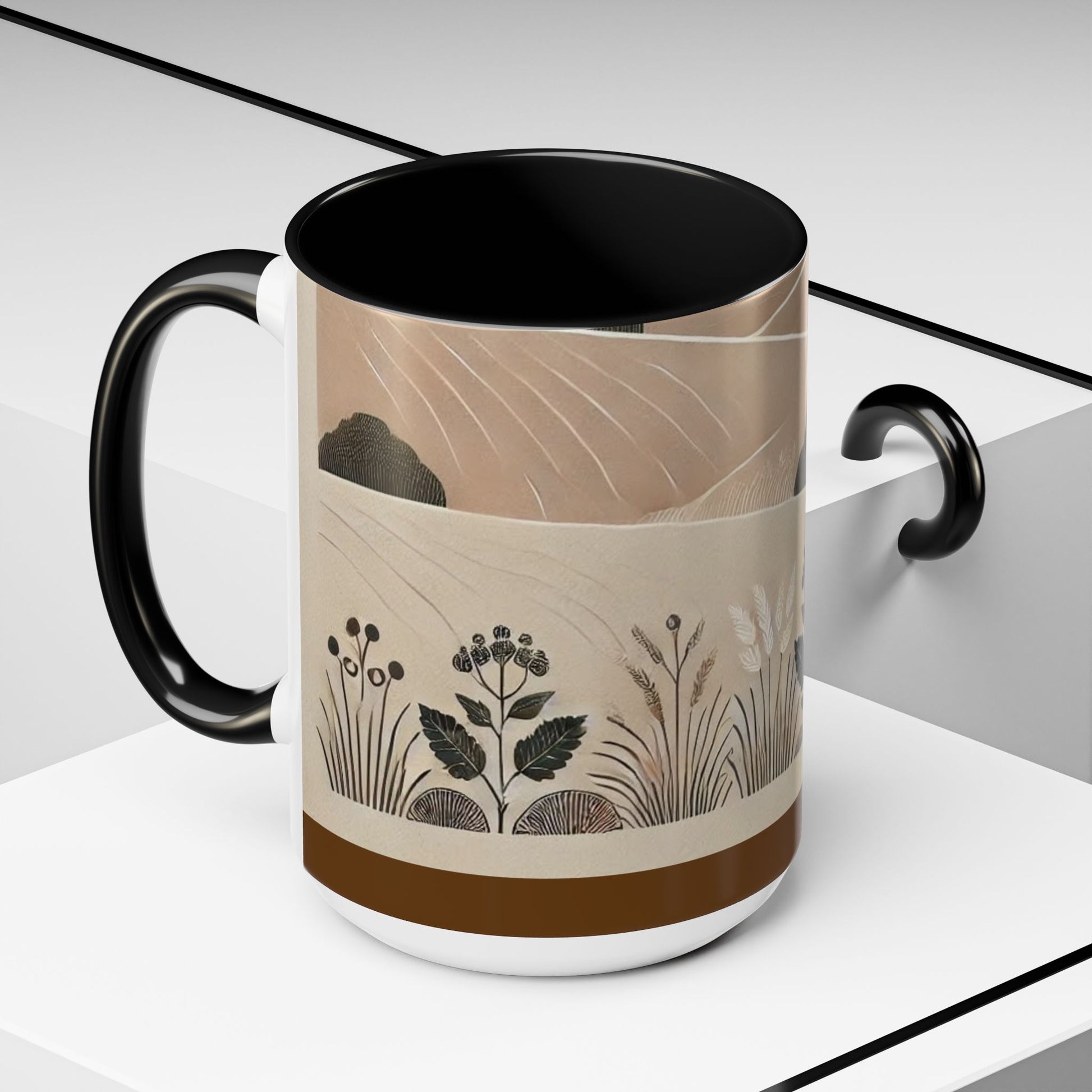 PrairieSpirits Designers Collection Boho coffee mug that exudes a relaxed and free-spirited vibe, perfect for enjoying a cozy cup of coffee. Ideal for bohemian souls and those who love eclectic designs. Relevant for holidays like Thanksgiving and occasions like birthdays.