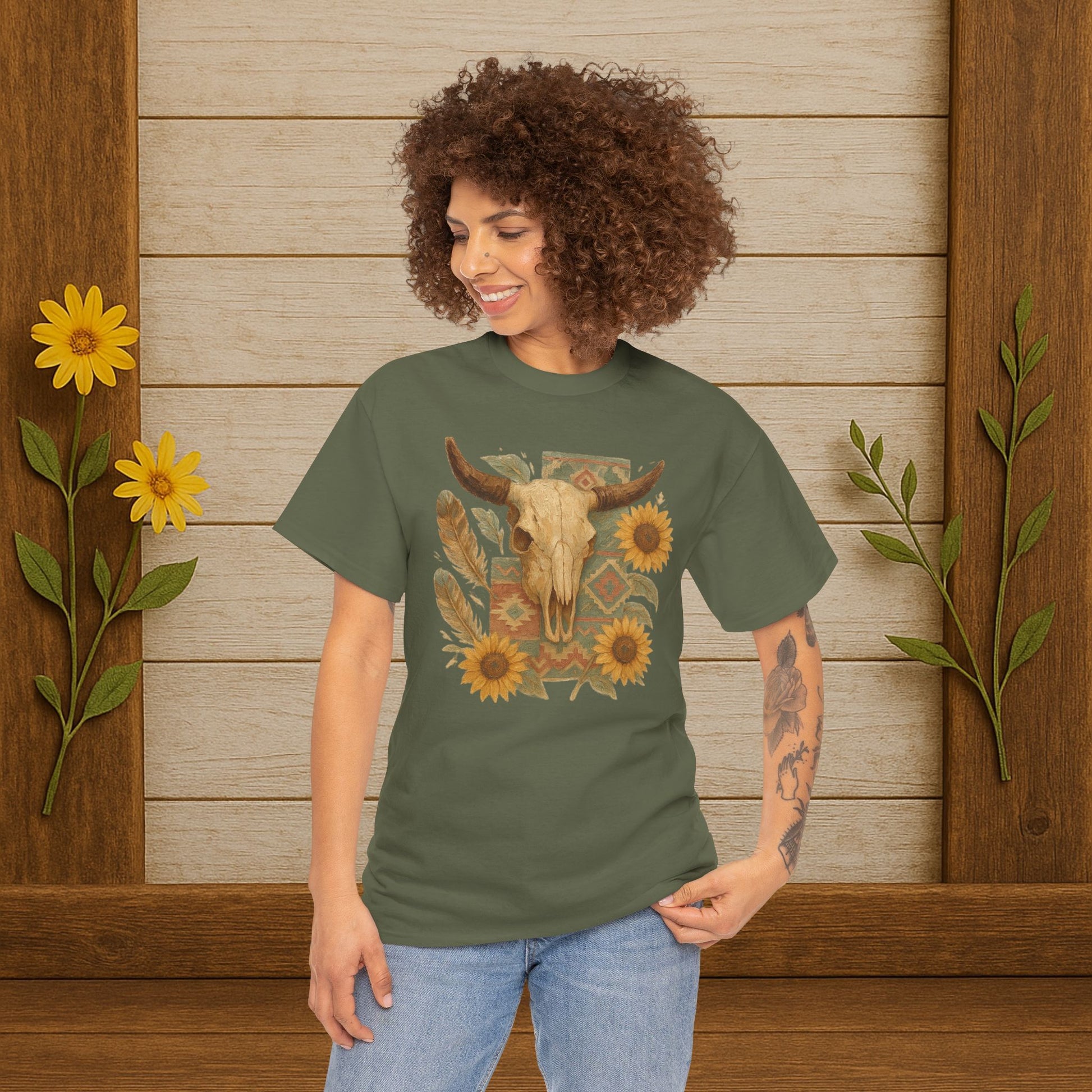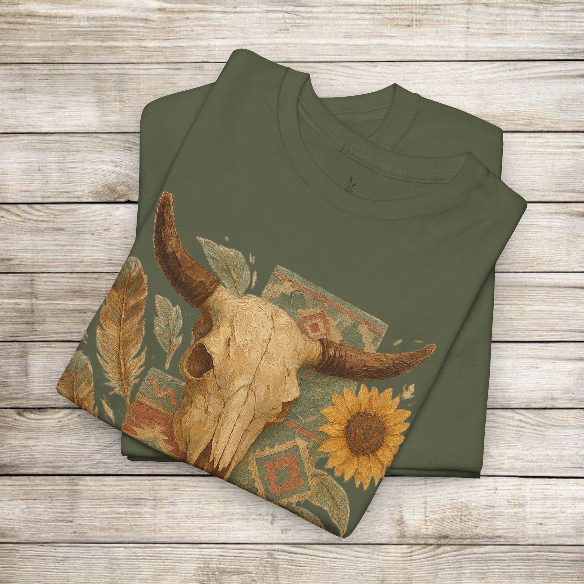 This Boho Floral Tee from the PrairieSpirits Designers Collection exudes a free-spirited and relaxed vibe, perfect for bohemian souls. It's ideal for those who love nature-inspired designs and want to add a touch of whimsy to their everyday outfits. This tee is a great option for casual wear, outdoor festivals, or celebrating Earth Day.