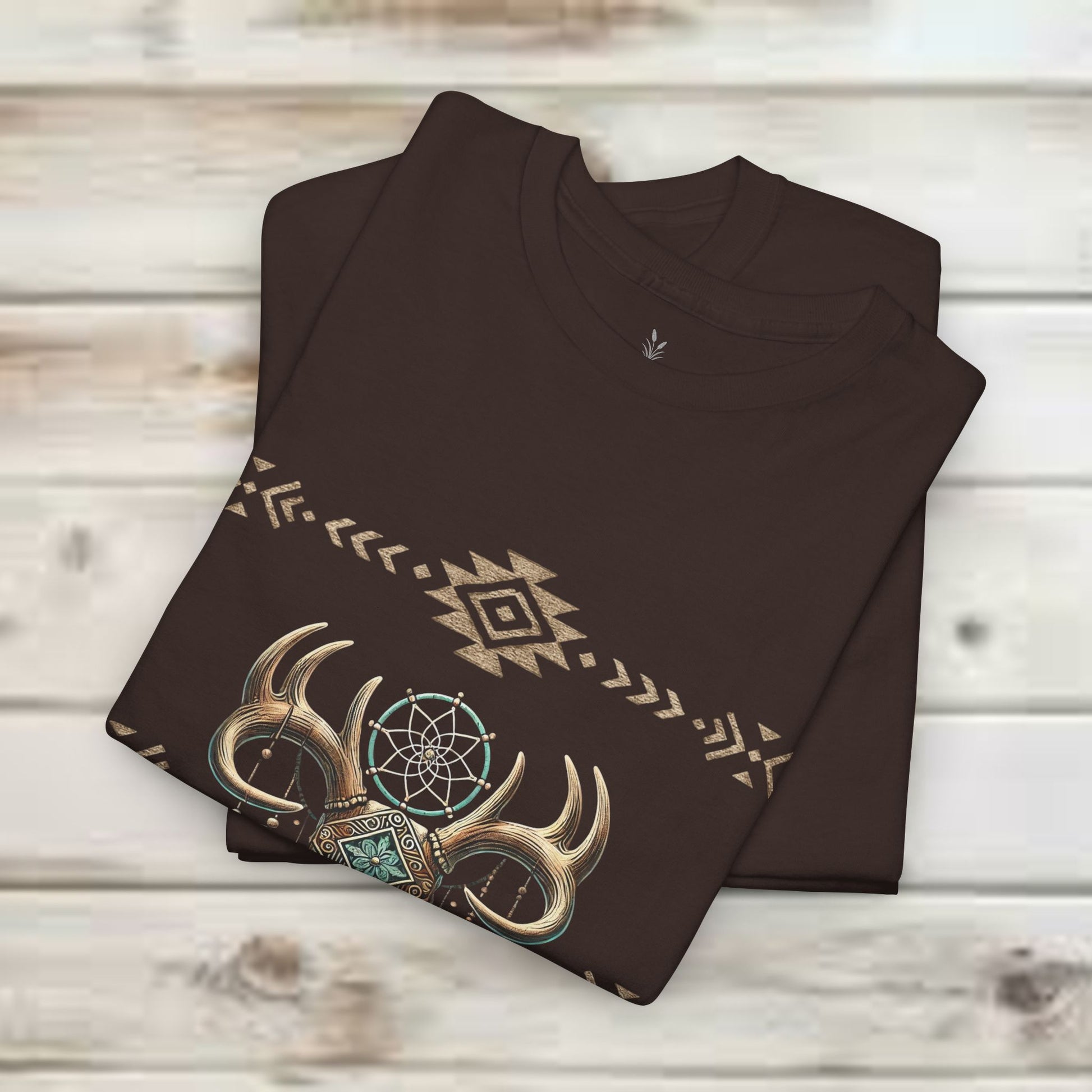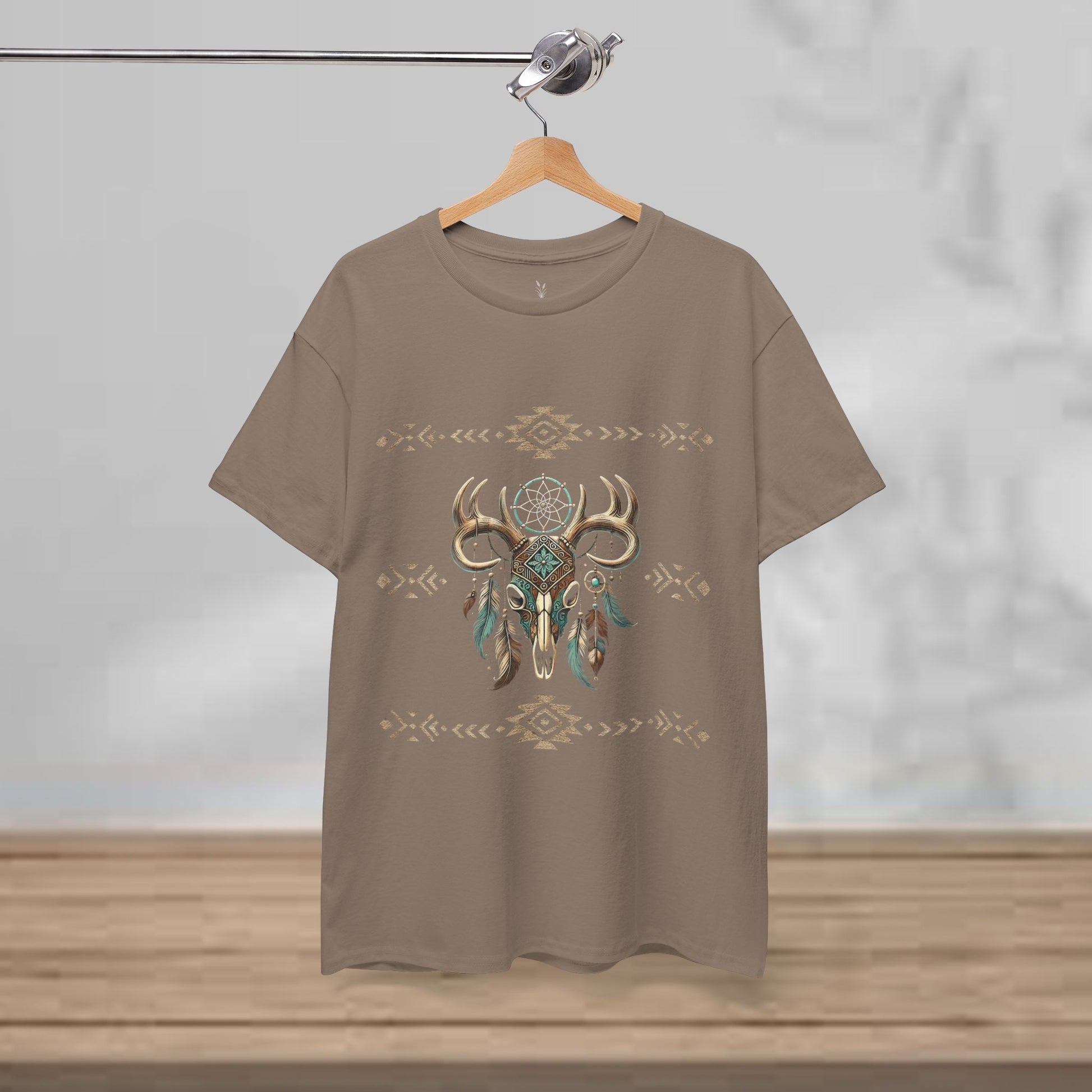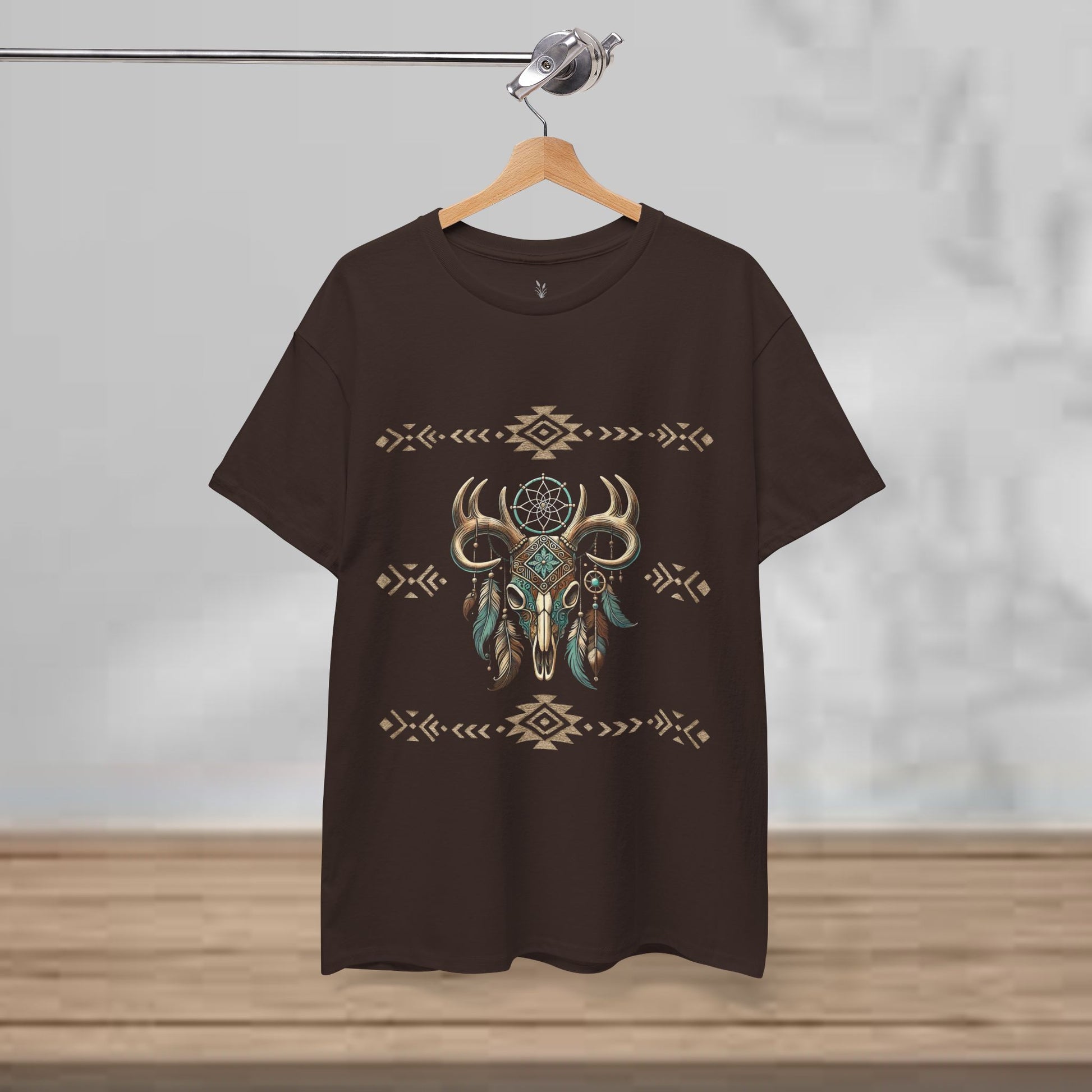 Native Boho design from the PrairieSpirits Designers Collection on a comfortable Unisex Heavy Cotton Tee. This tee exudes a laid-back, bohemian vibe perfect for those who love all things natural and earthy. Ideal for casual wear, music festivals, outdoor gatherings, and everyday lounging.