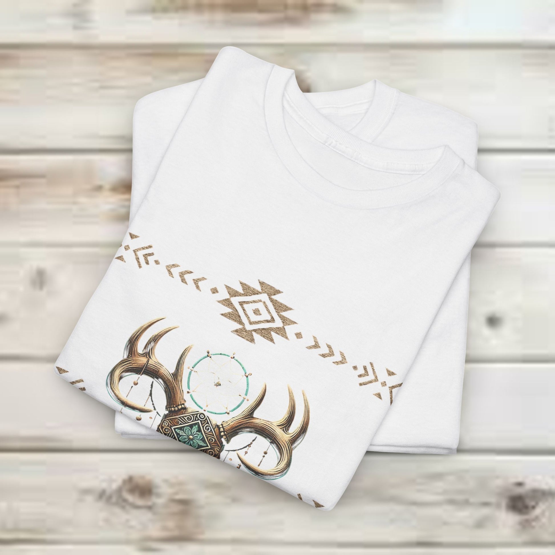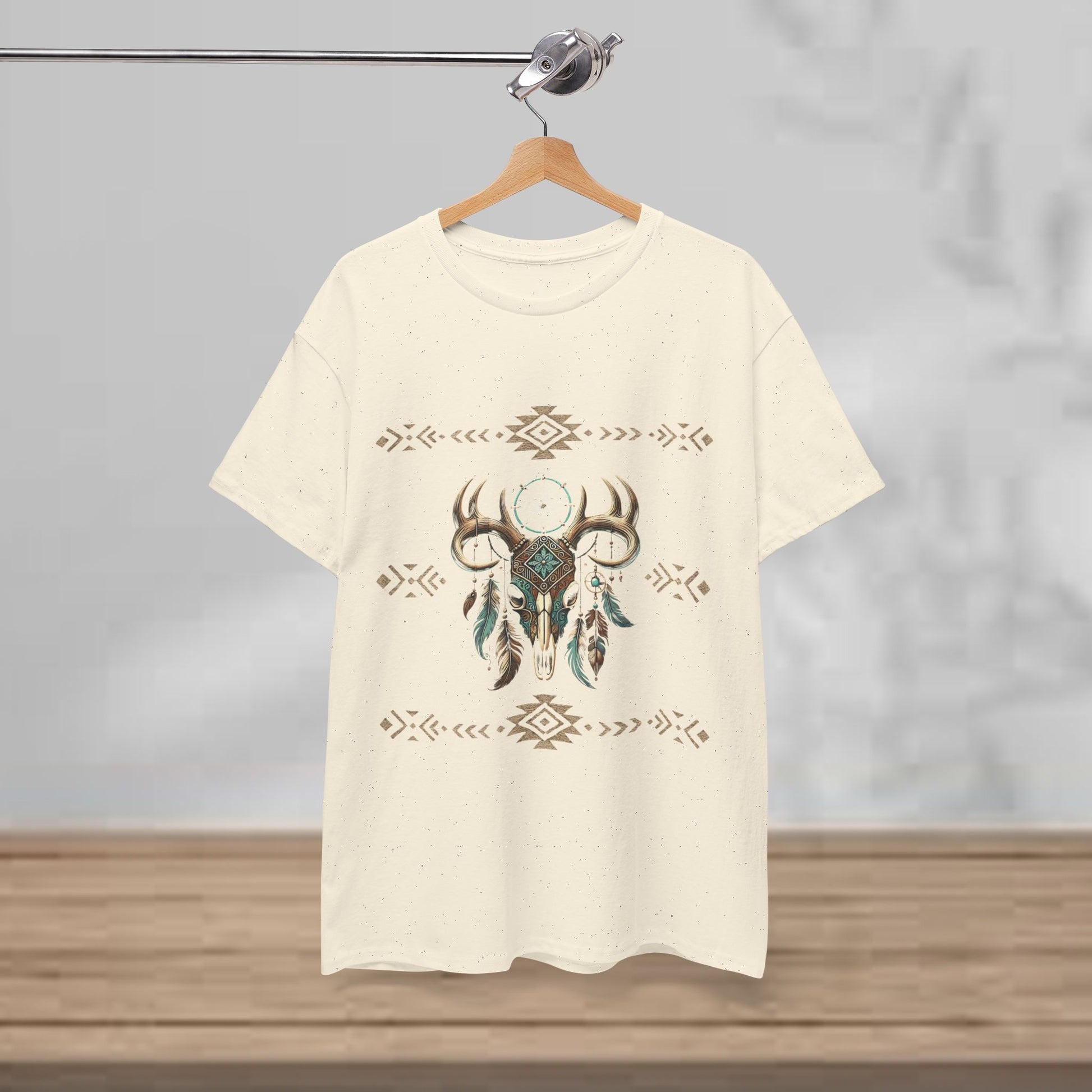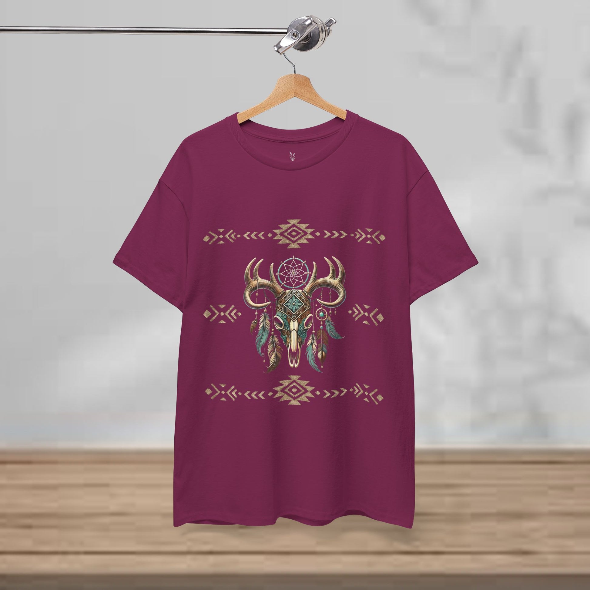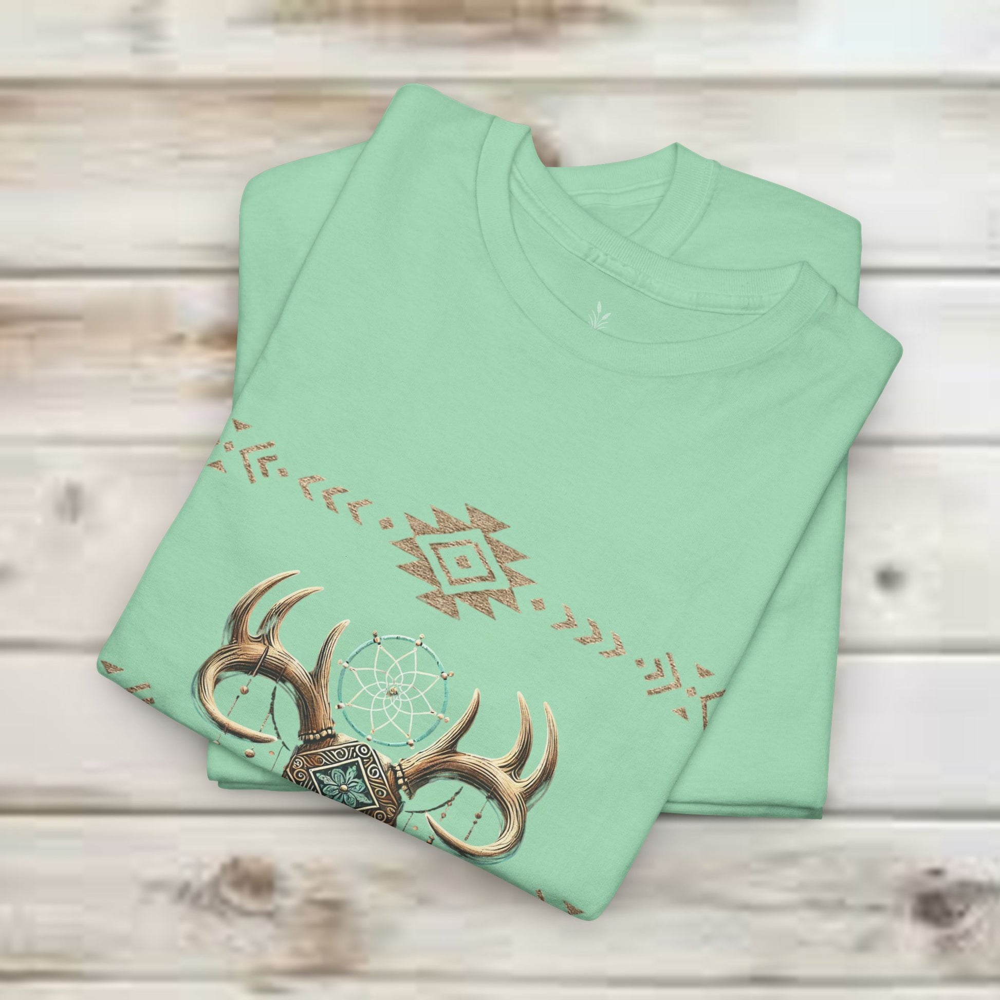 Native Boho design from the PrairieSpirits Designers Collection on a comfortable Unisex Heavy Cotton Tee. This tee exudes a laid-back, bohemian vibe perfect for those who love all things natural and earthy. Ideal for casual wear, music festivals, outdoor gatherings, and everyday lounging.