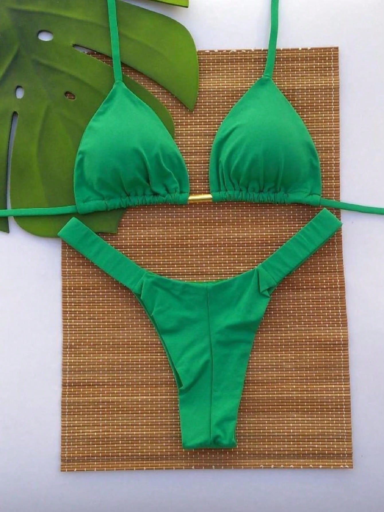 Conjunto cortininha bronze perfeito fio duplo bikíni de cabresto poliamida