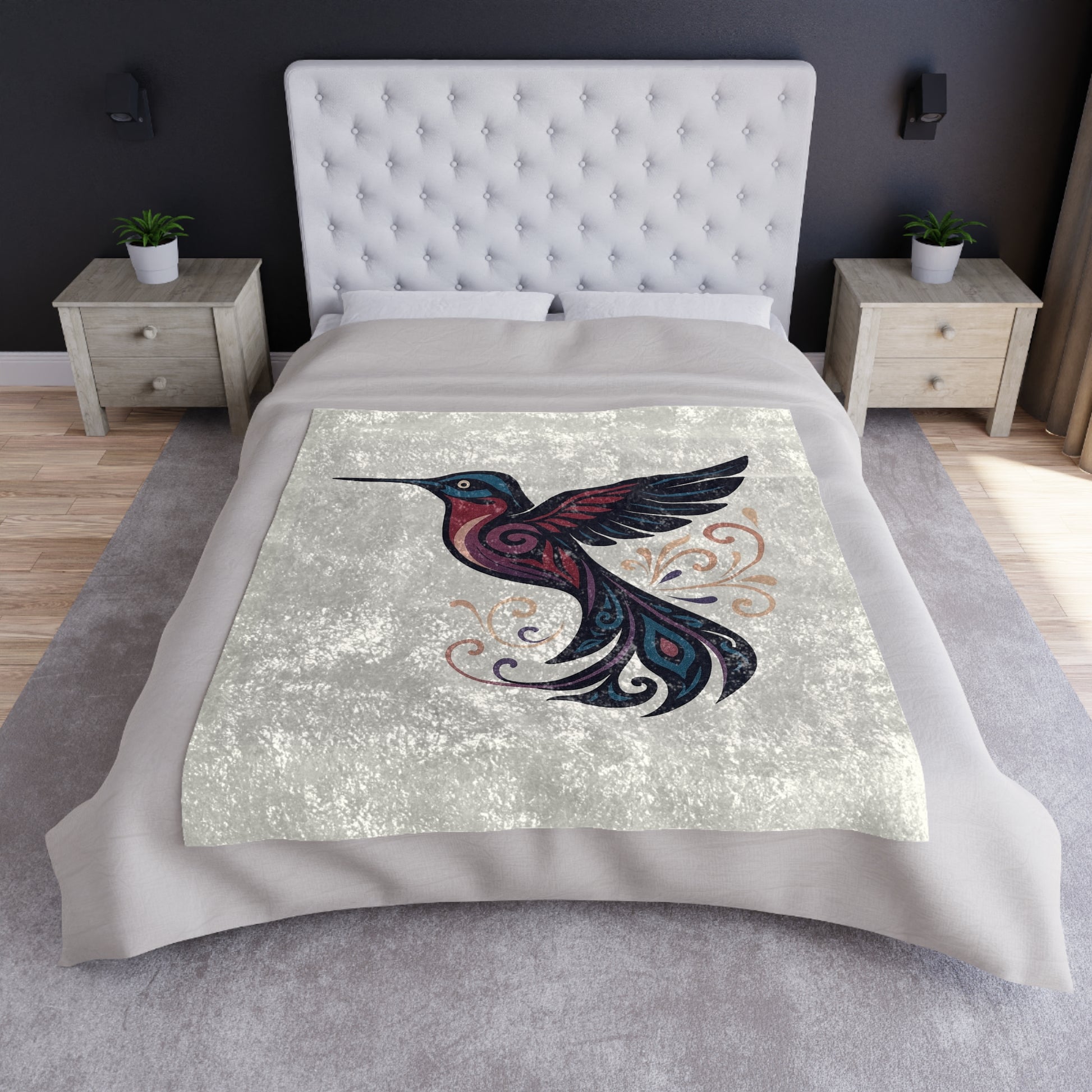 Super soft, super comfy—this crushed velvet blanket with an original custom design will be the perfect addition to the living room couch. It's made from high-quality, durable 100% polyester fabric with zig-zag stitches on its edges.