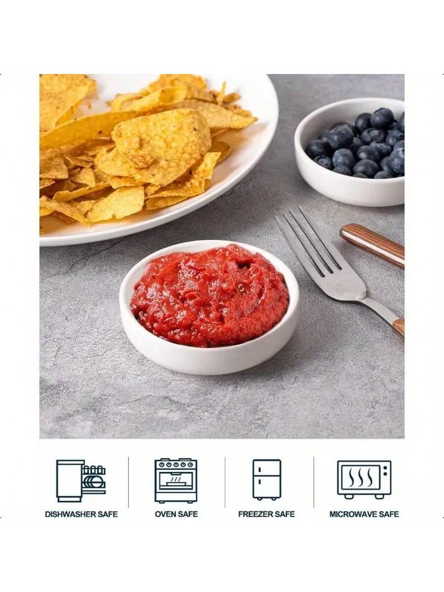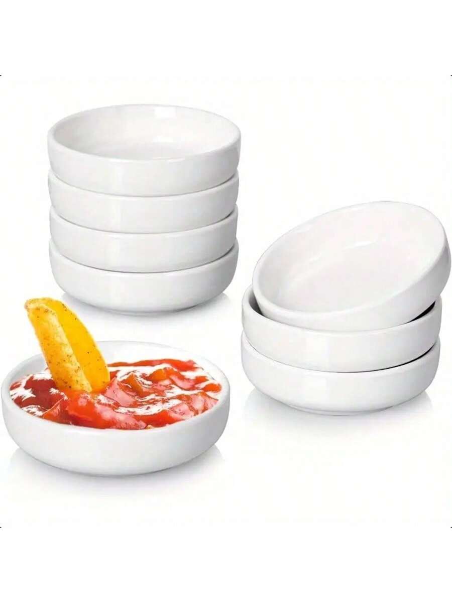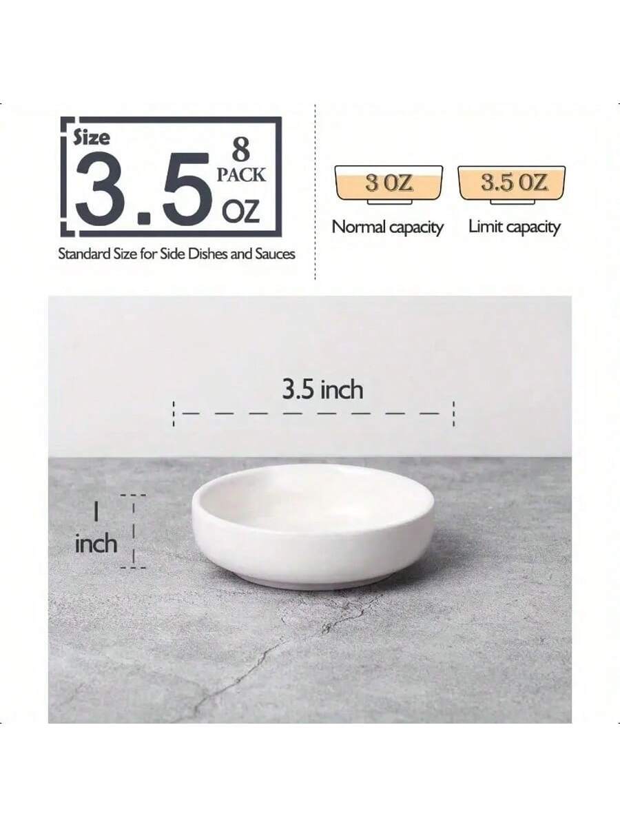 DELLING 8 Pack Ceramic Dipping Bowls Set, 3.5 Oz Soy Sauce Dish, Side Dishes, Small Bowls For BBQ Condiments, Snacks, Desserts, Sushi Party - White