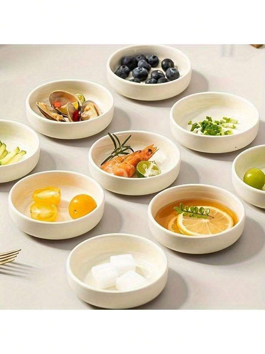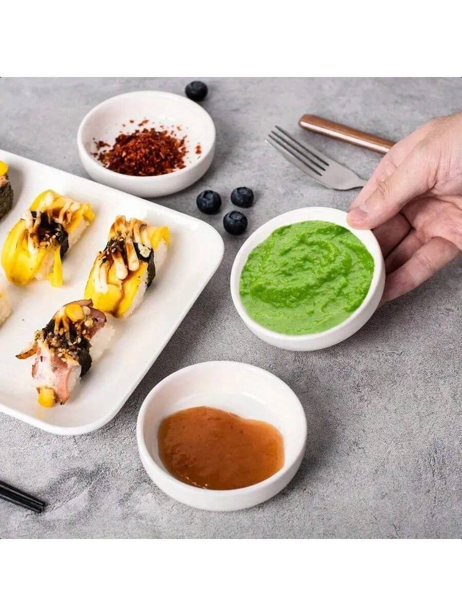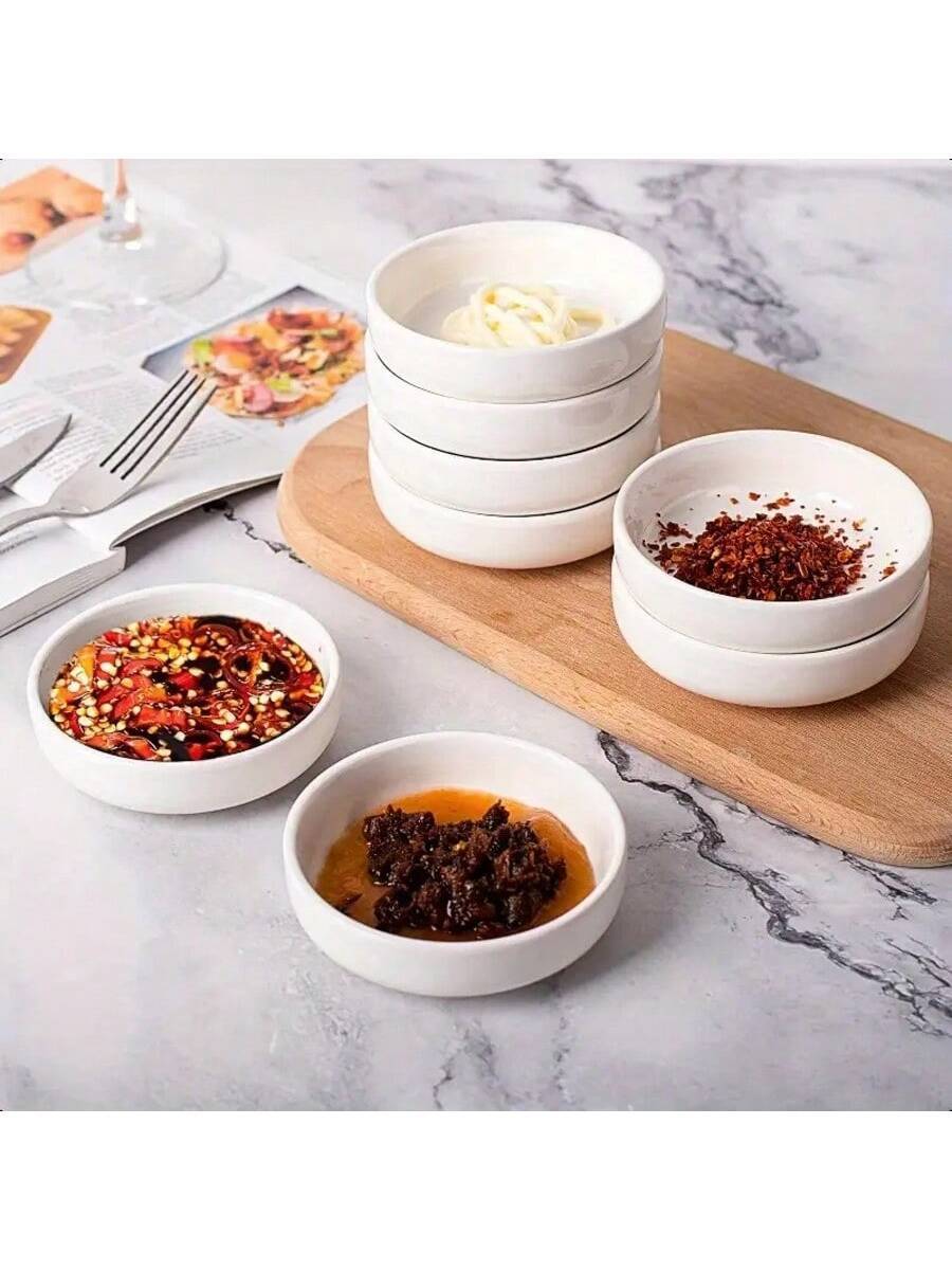 DELLING 8 Pack Ceramic Dipping Bowls Set, 3.5 Oz Soy Sauce Dish, Side Dishes, Small Bowls For BBQ Condiments, Snacks, Desserts, Sushi Party - White