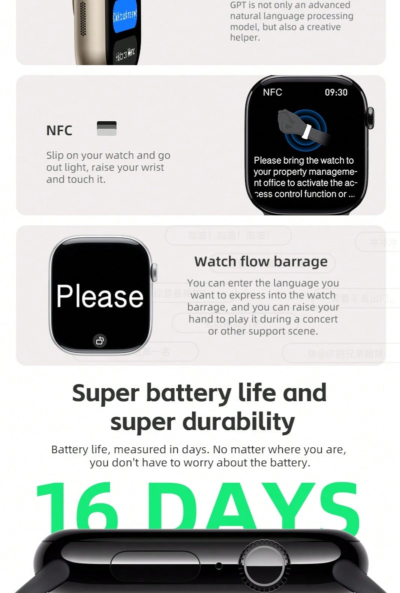 DIONA S3 MINI Smartwatch Silver Black Square Dial Supports Message V1.1 Search For Mobile Phone Sleep Blood Pressure, Blood Oxygen, NFC Health And Call Reminder Voice Assistant 2.01 Inch AMOLED Square Screen-368 * 448 Screen Display Chinese Packaging