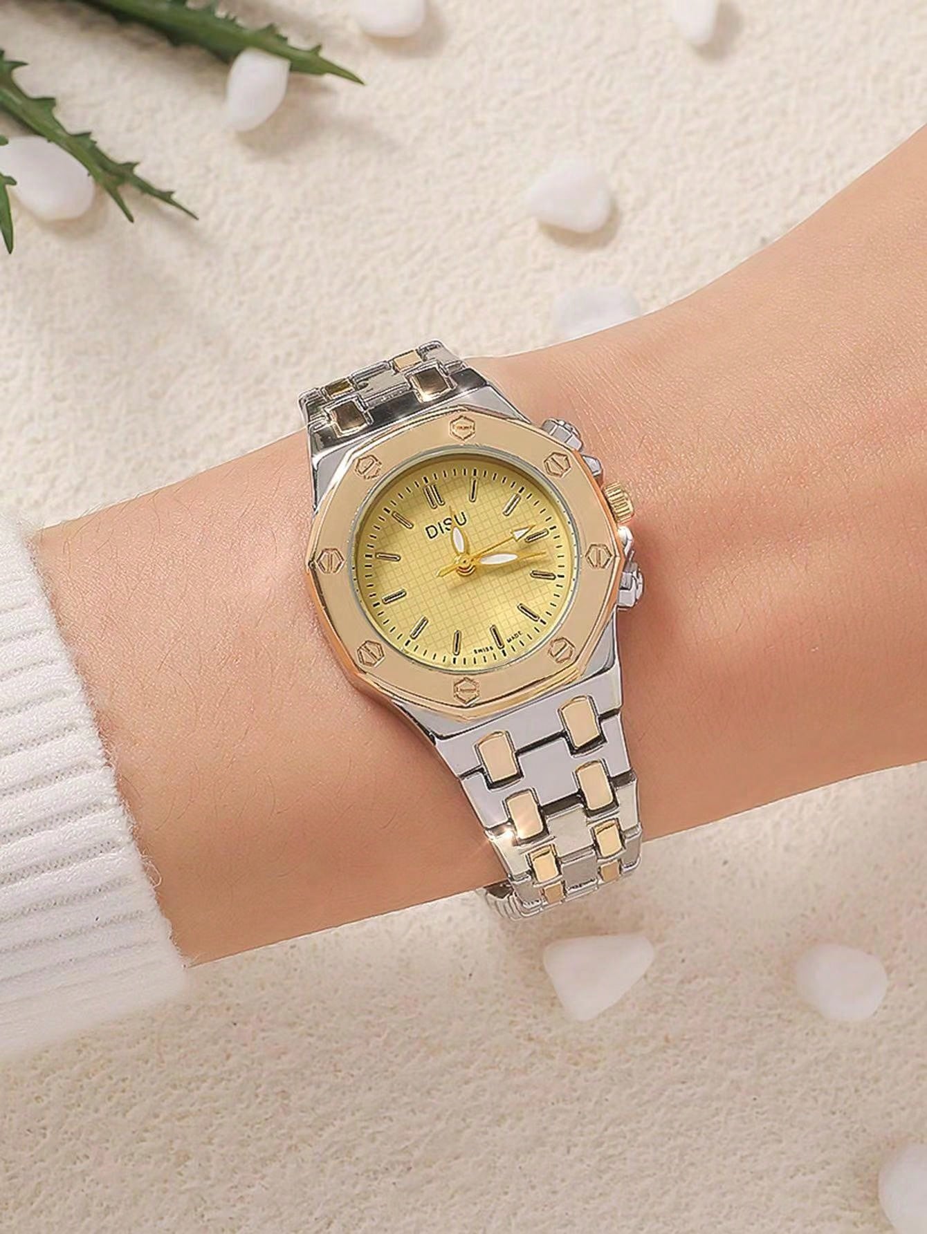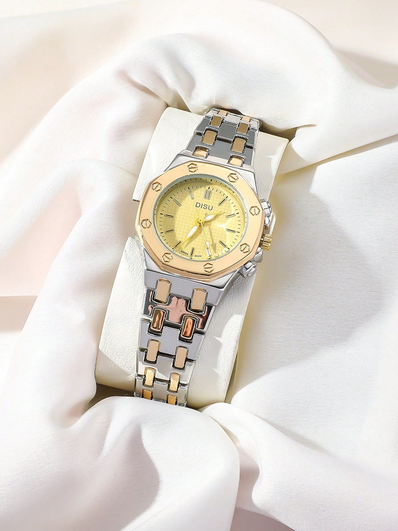 DISU Disu 1pc Women Stainless Steel Band Classic Business Analogue Quartz Watch With Crystal Decoration, Suitable For Everyday Wear