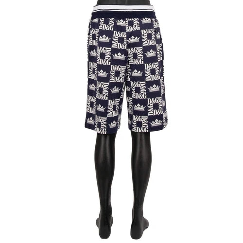 DOLCE & GABBANA Cotton Sweatshorts Shorts w. Crown Logo Print Blue White 11393