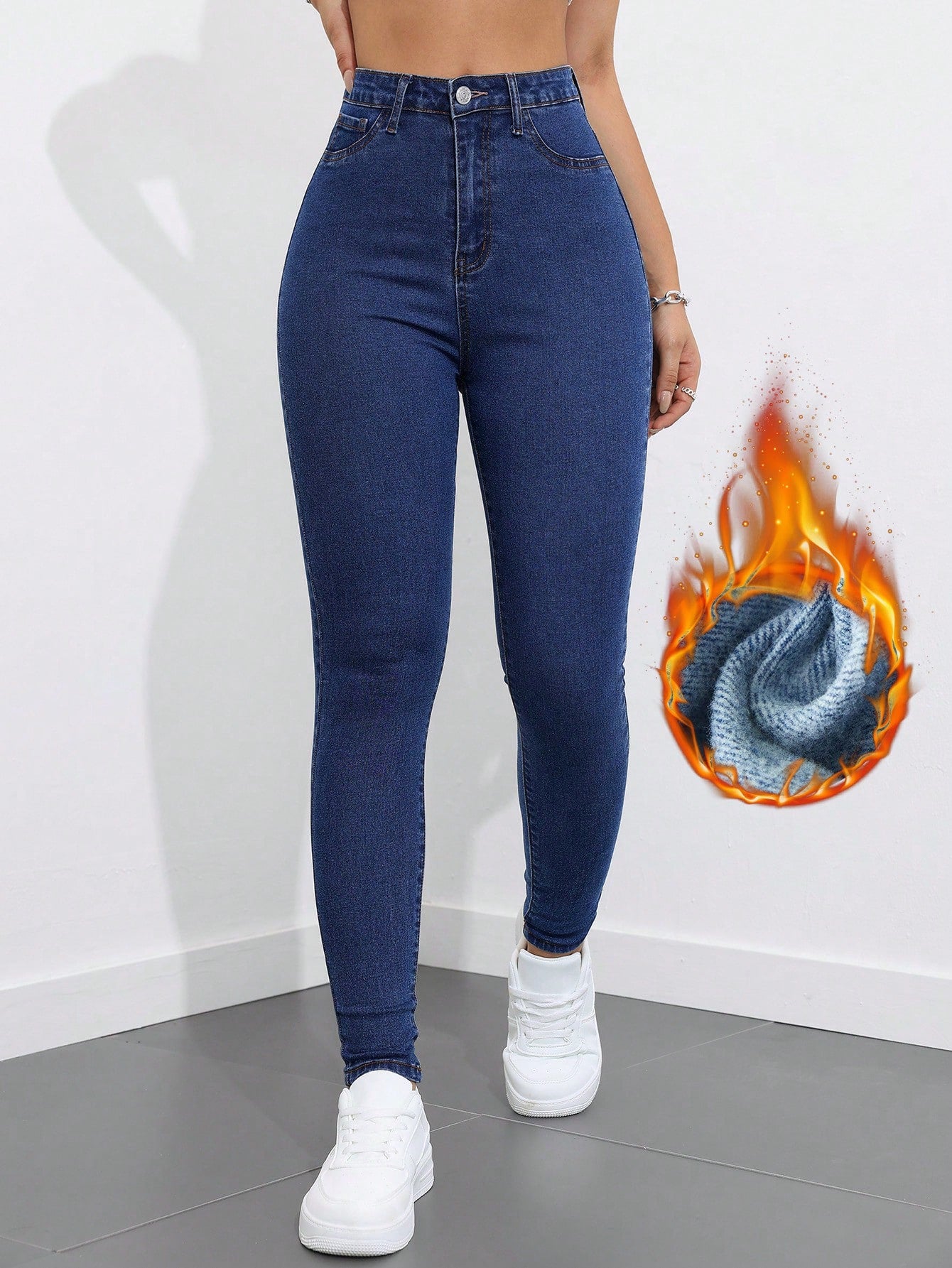 Essnce Women Pocket Skinny Fit Casual Stretchy Denim Jeans Warm Thanksgiving Outfit Christmas Outfit Women Thickened Denim