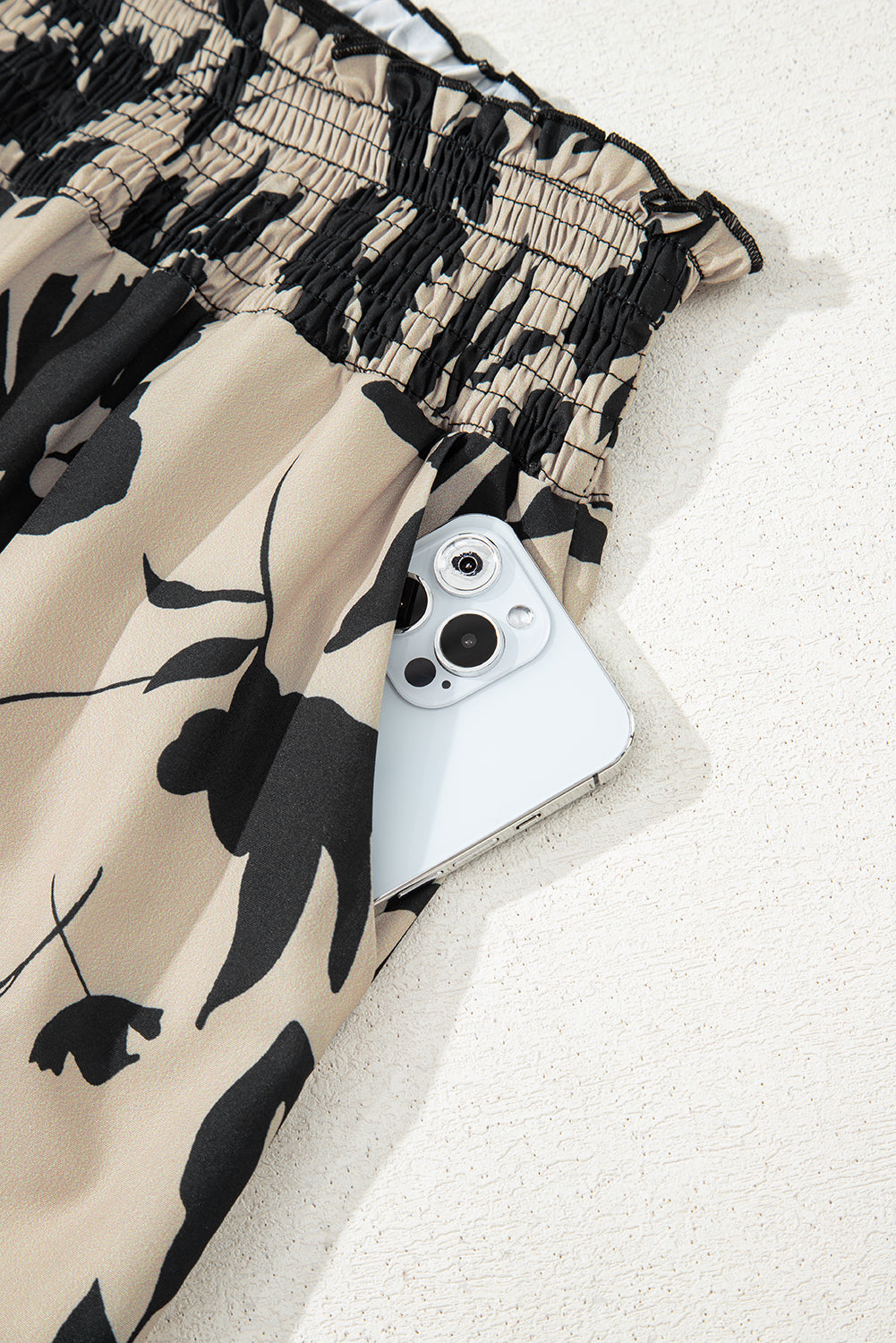 - The shirred waist ensures a comfortable fit while adding stylish texture.