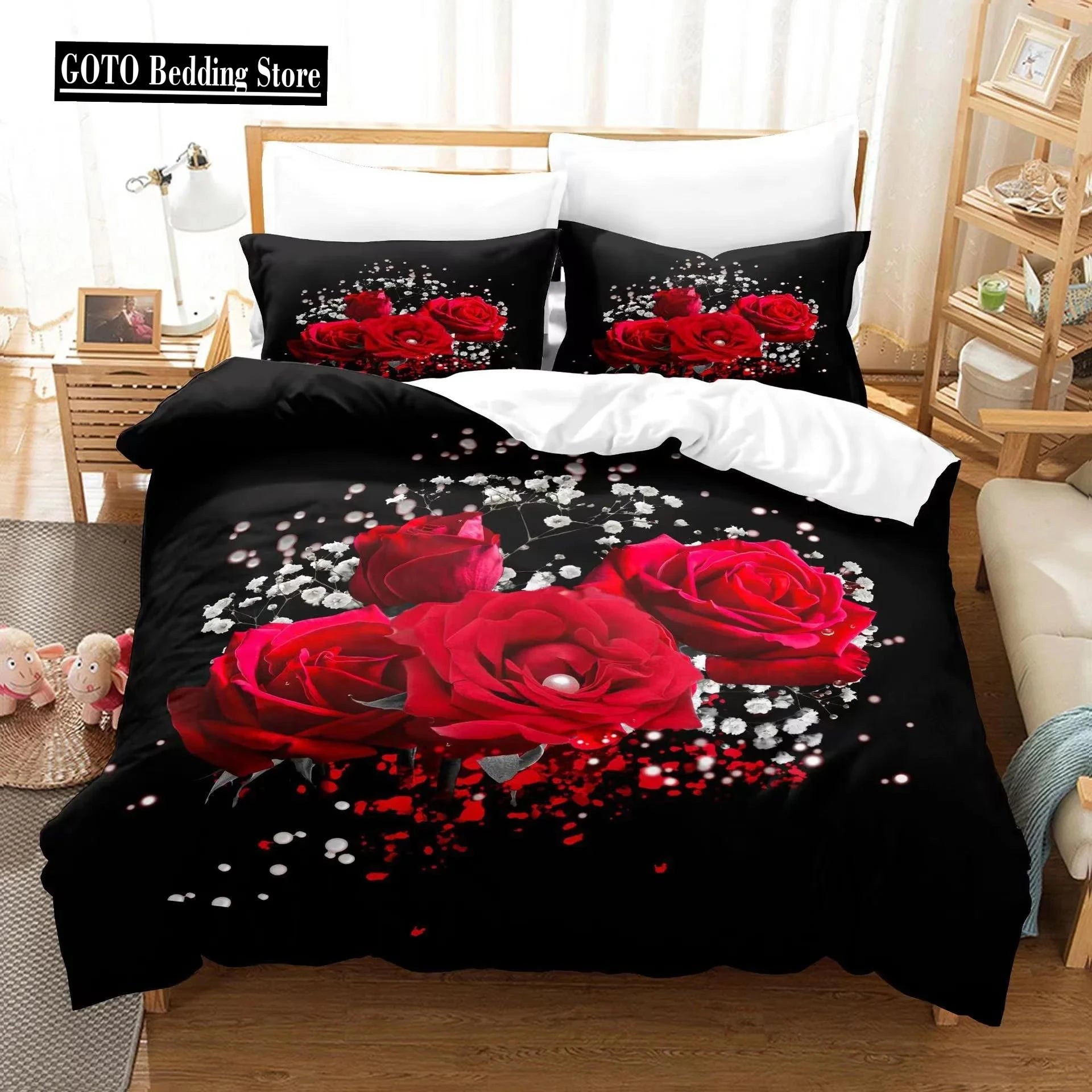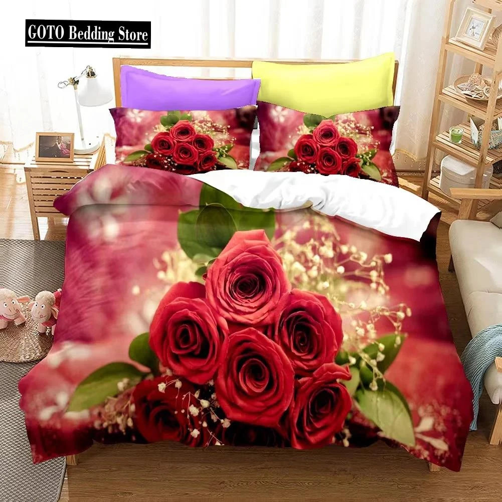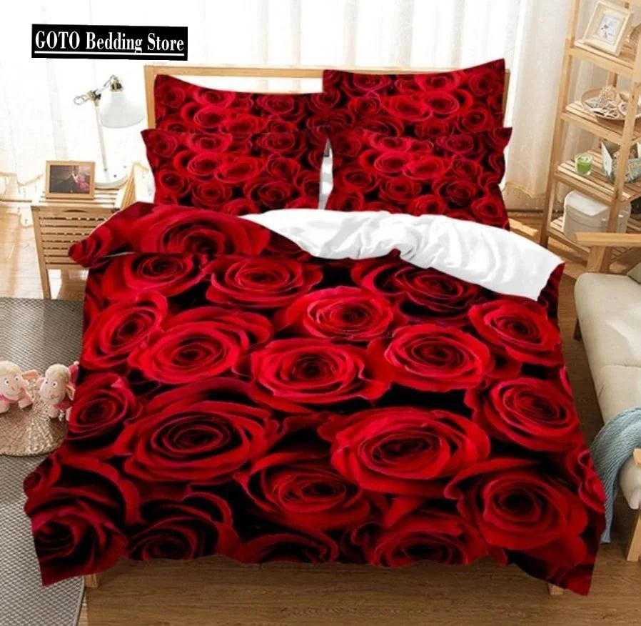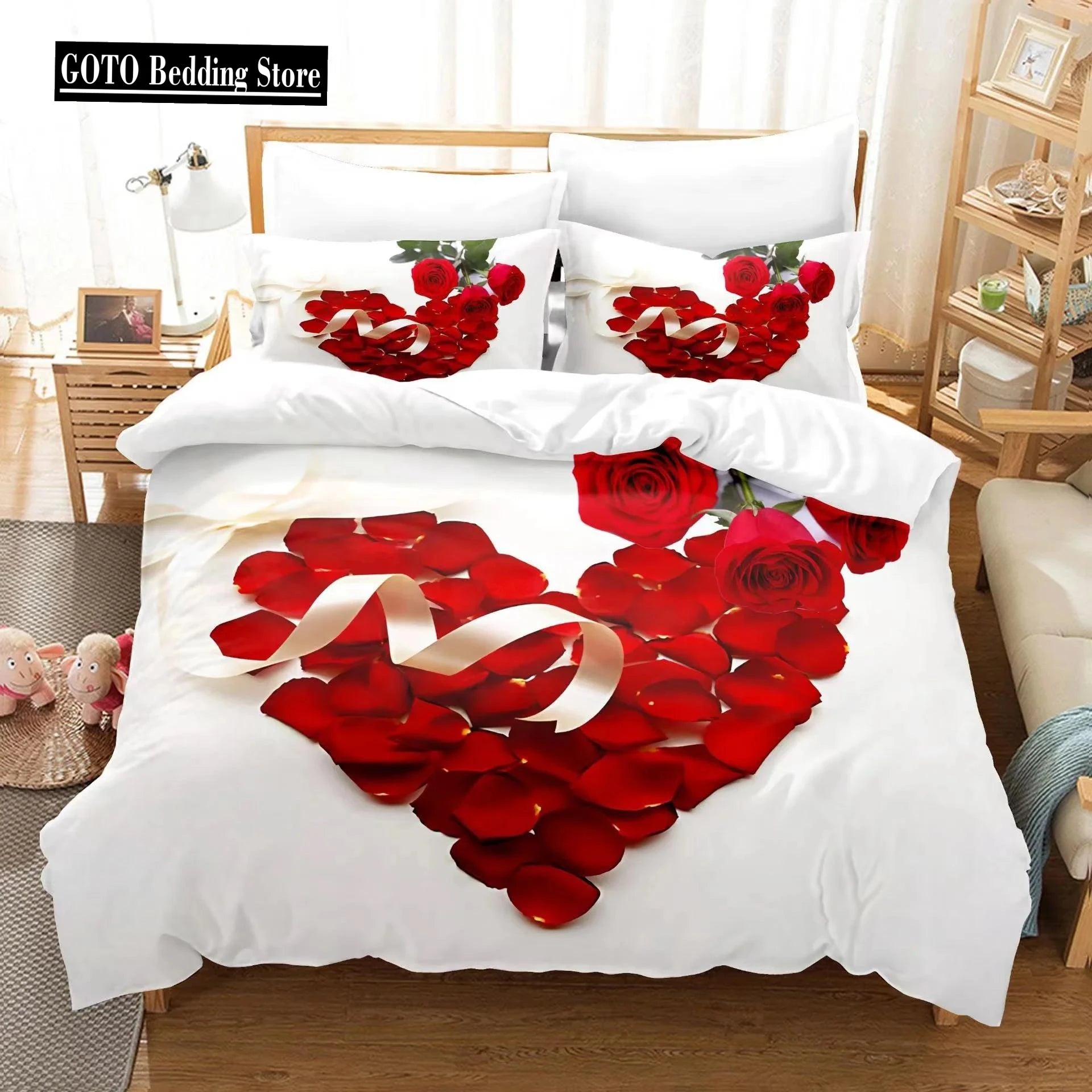Love Red Rose Bedding Set Housse De Couette Happy Valentine's Day/marriage/wedding Duvet Cover Set Dropship Bed Set - No Sheet