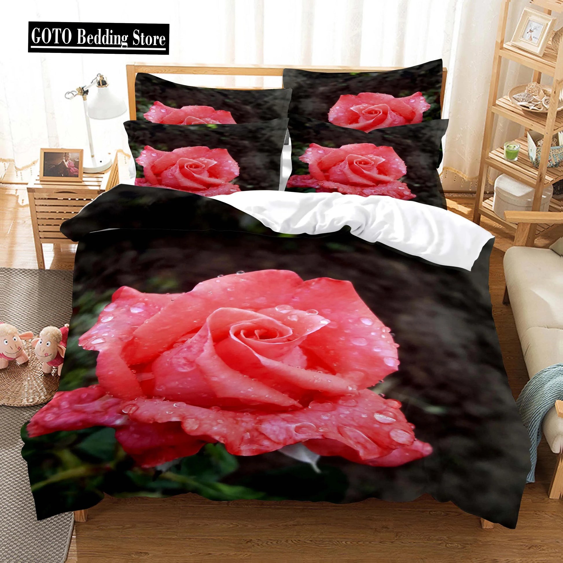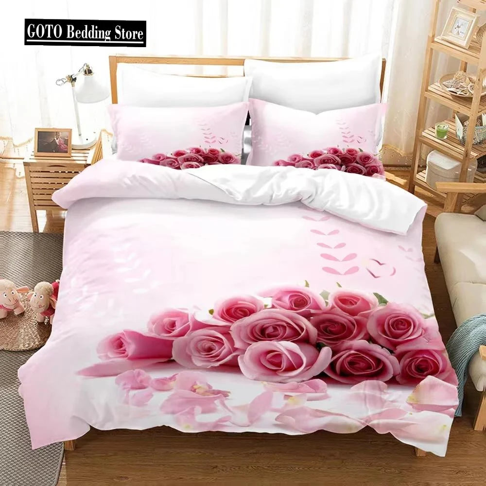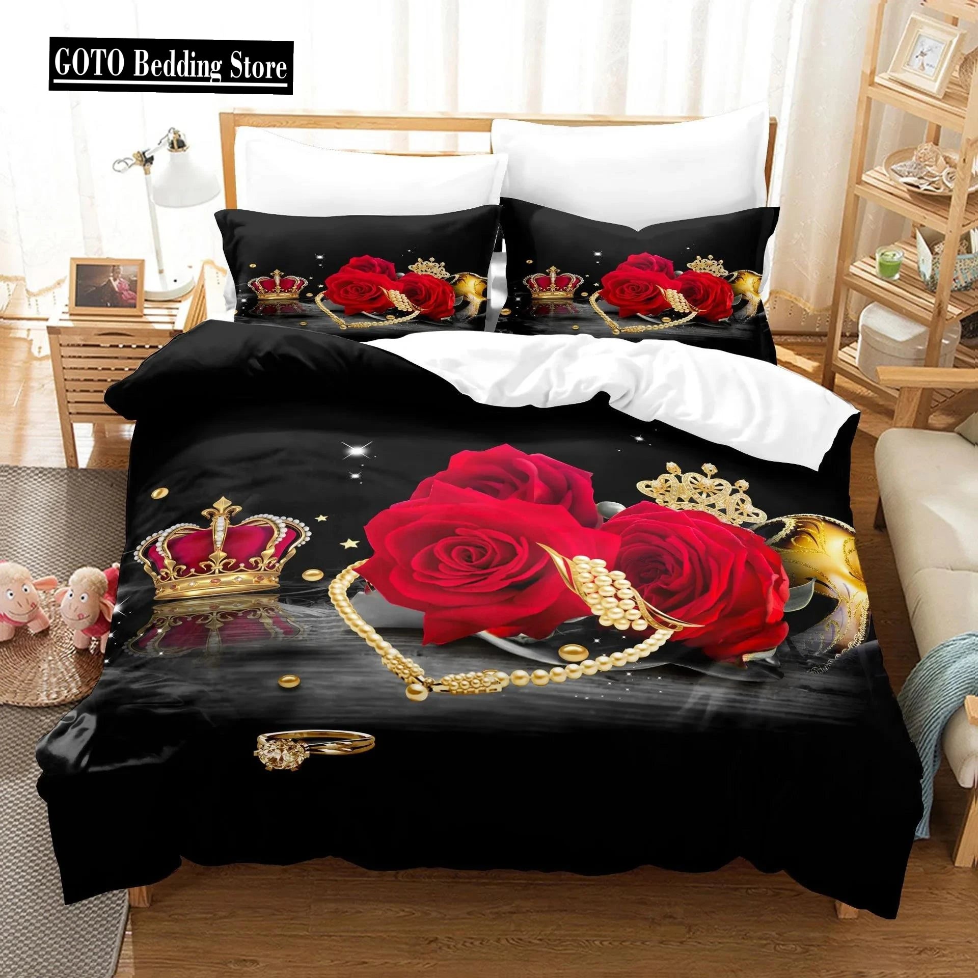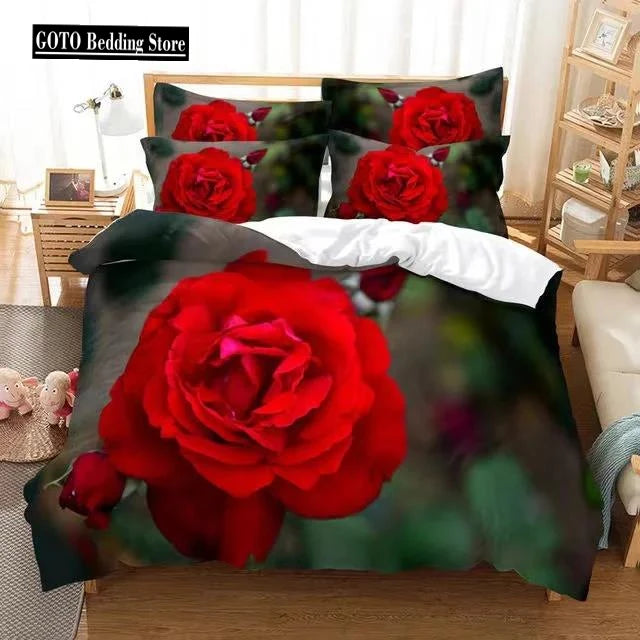Love Red Rose Bedding Set Housse De Couette Happy Valentine's Day/marriage/wedding Duvet Cover Set Dropship Bed Set - No Sheet