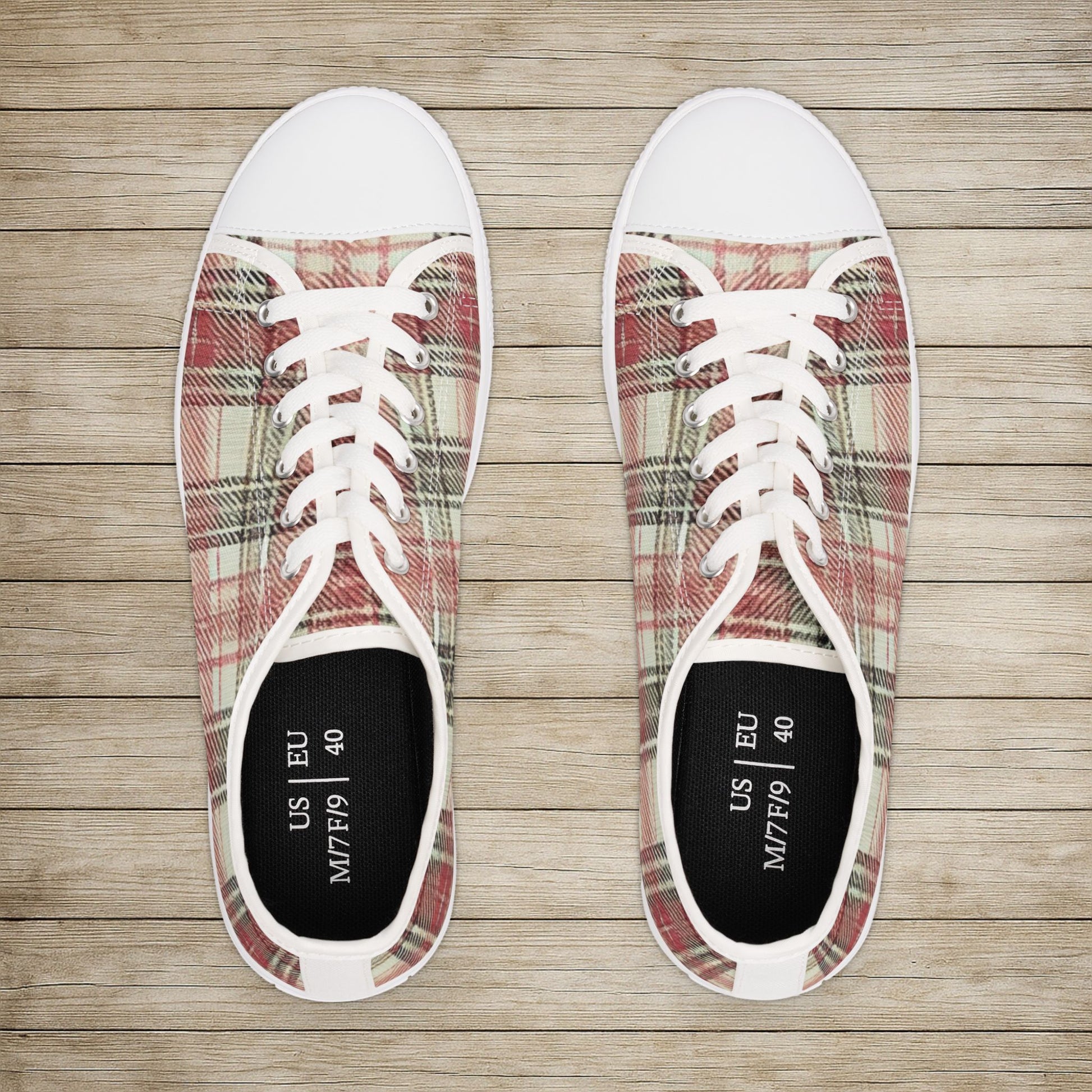 Elevate your shoe game with the PrairieSpirits Designers Collection Sneakers. These low top sneakers feature a classic plaid design that exudes a cozy and stylish vibe. Perfect for women who love chic and comfortable footwear, these sneakers are ideal for everyday wear, casual outings, and holiday gatherings.
