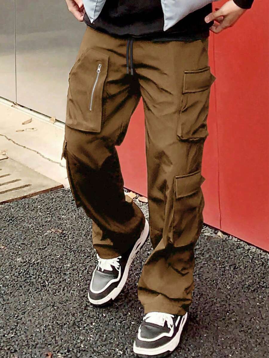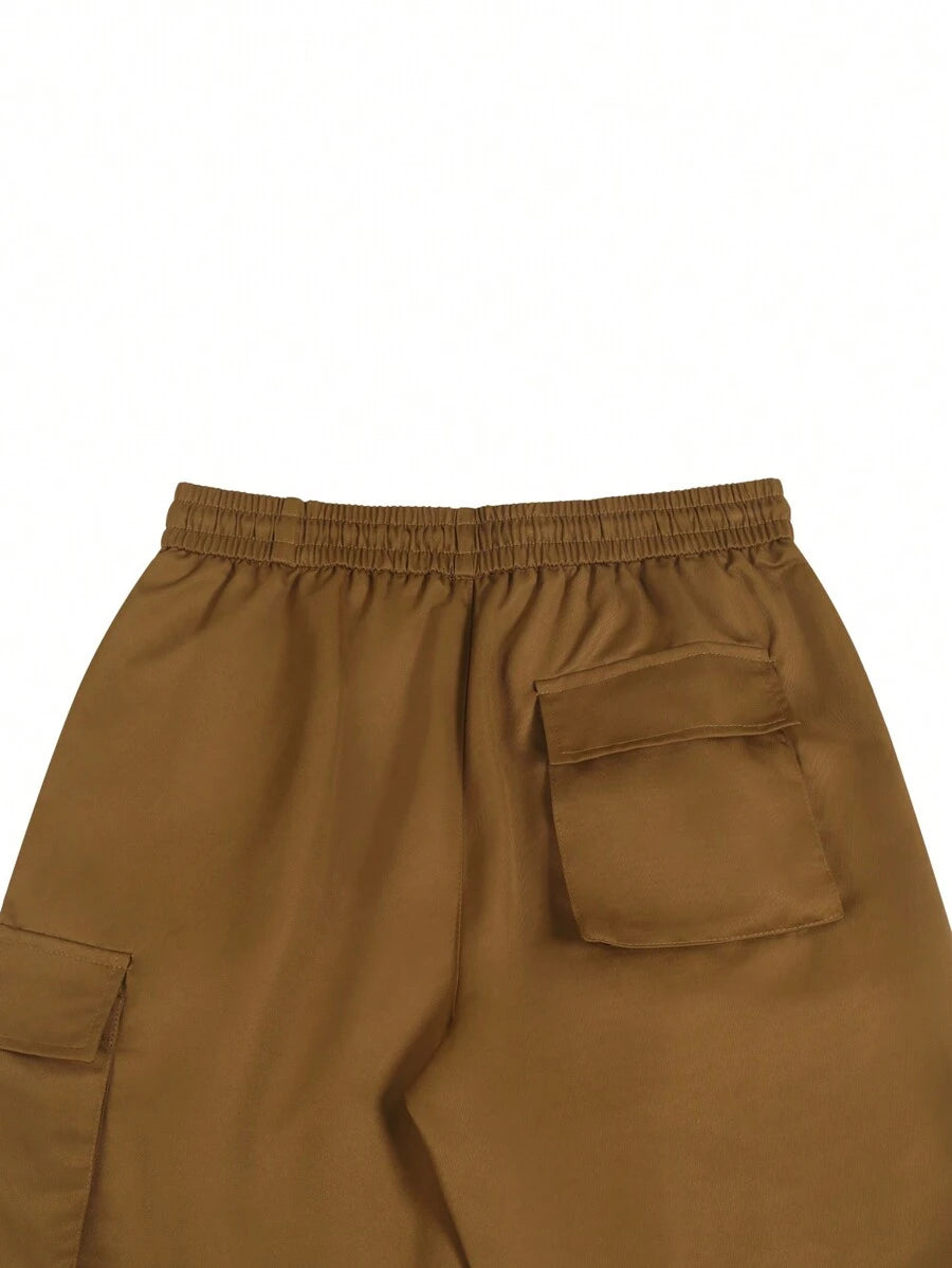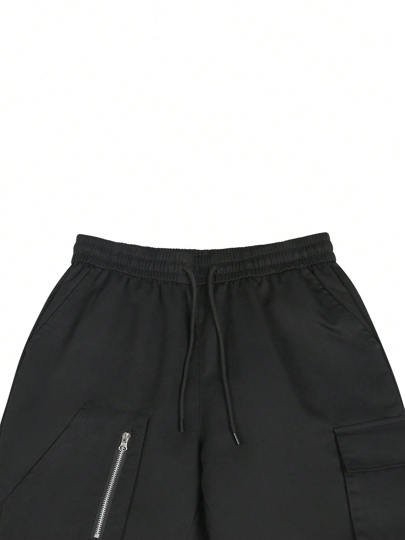 Manfinity EMRG Loose Fit Men's Solid Color Cargo Pants With Drawstring Waist, Plain Long Plain Black Pants, For Husband, Boyfriend Gifts