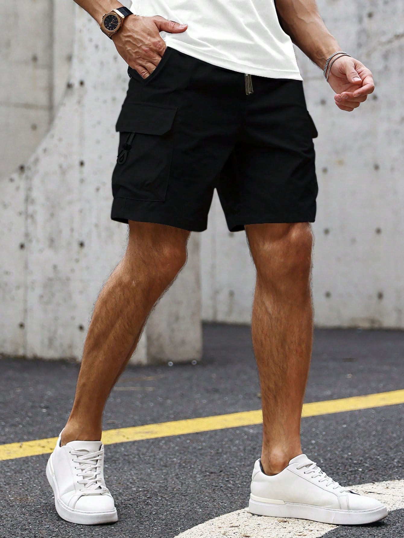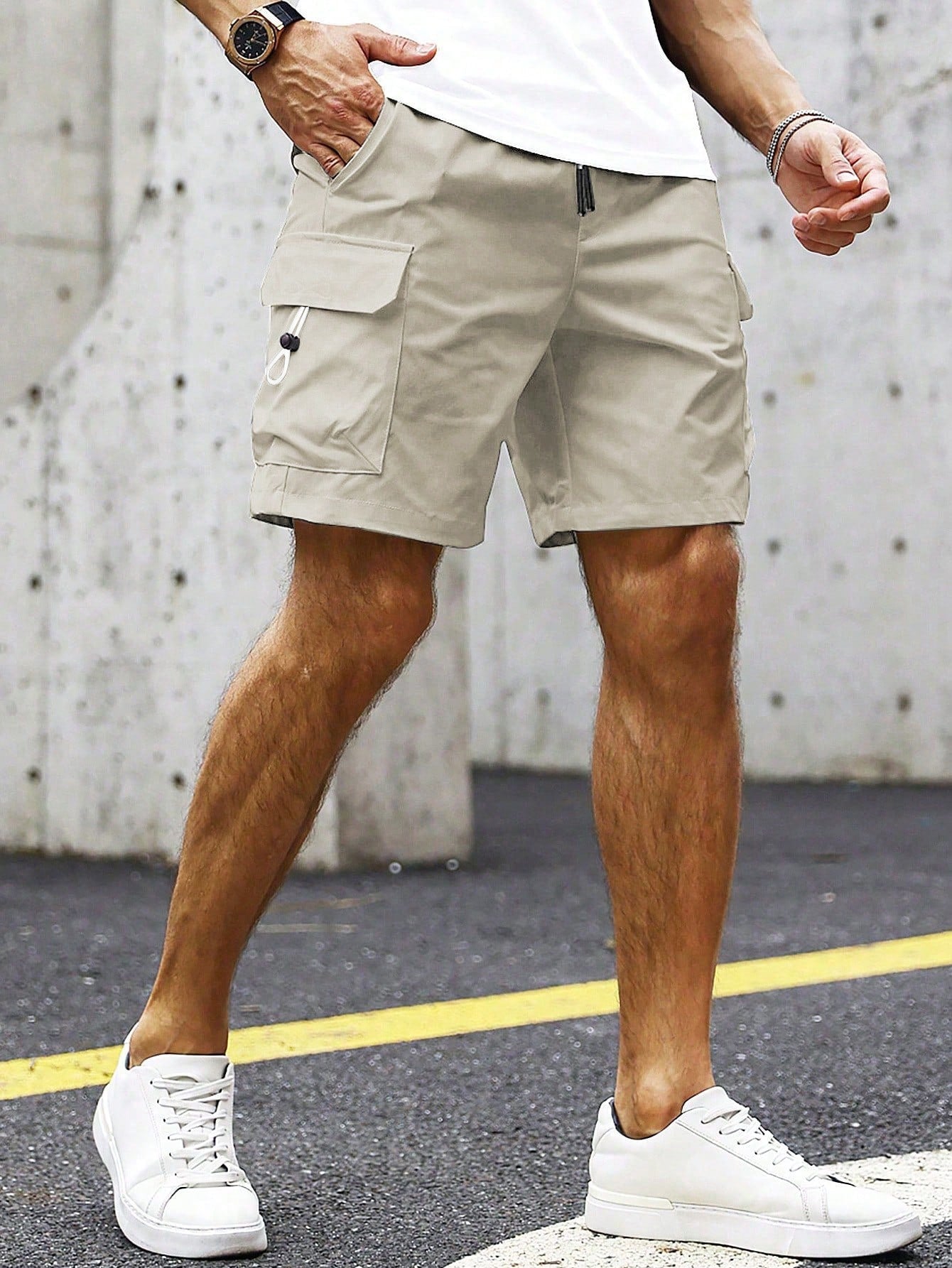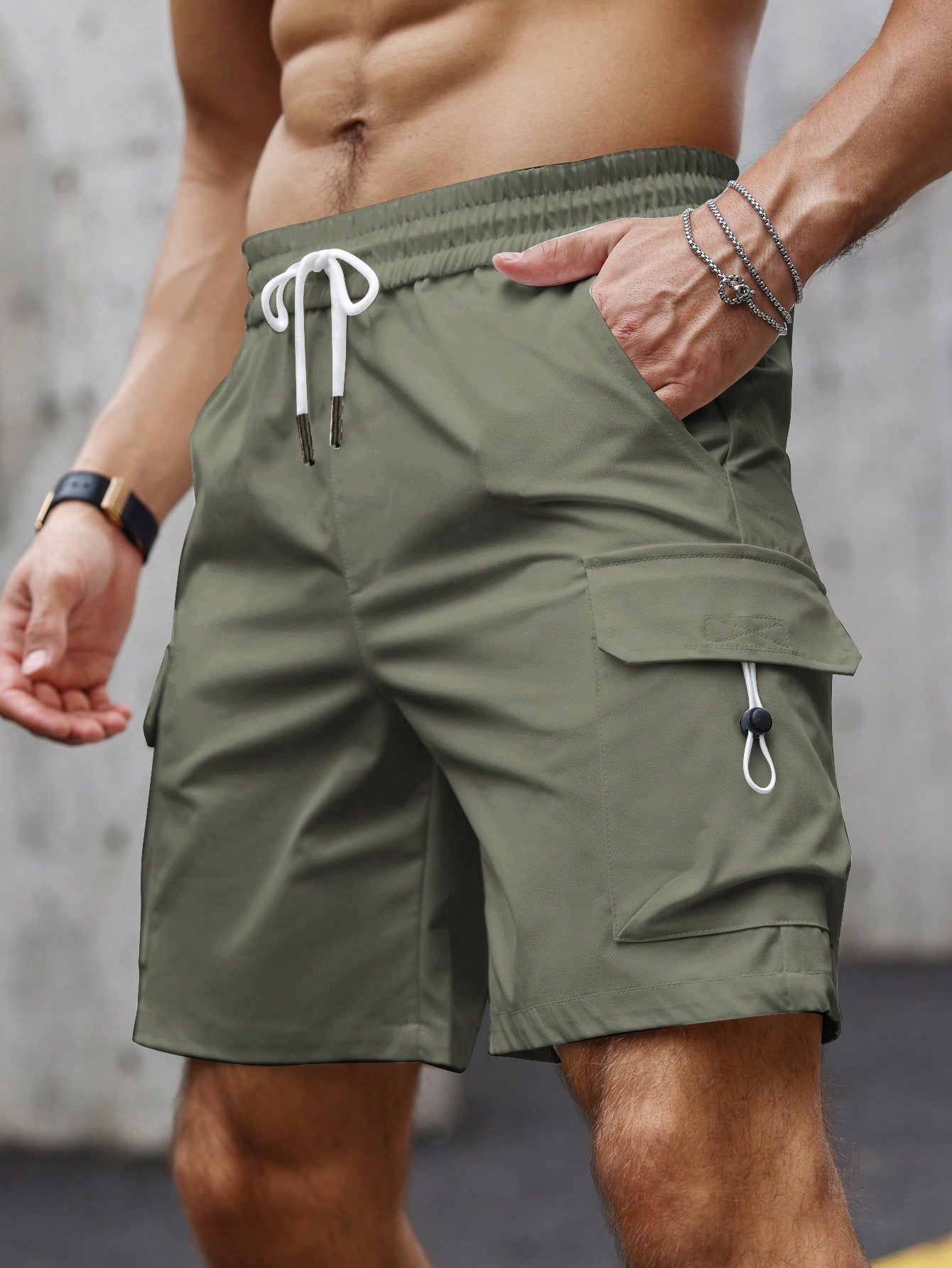 Manfinity Homme Loose Fit Men's Shorts With Flap Pockets, Side Drawstring Waist