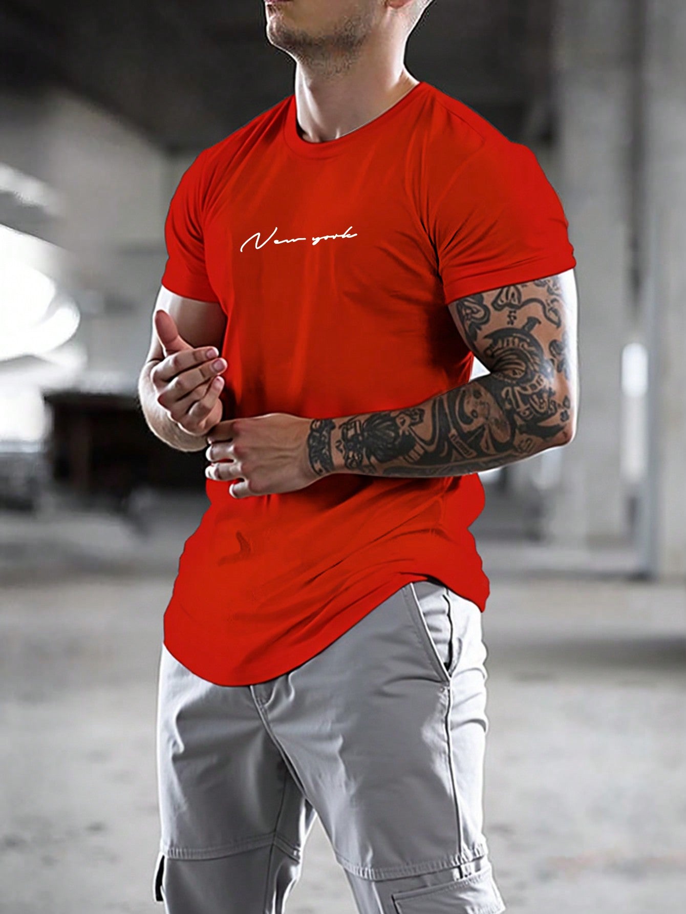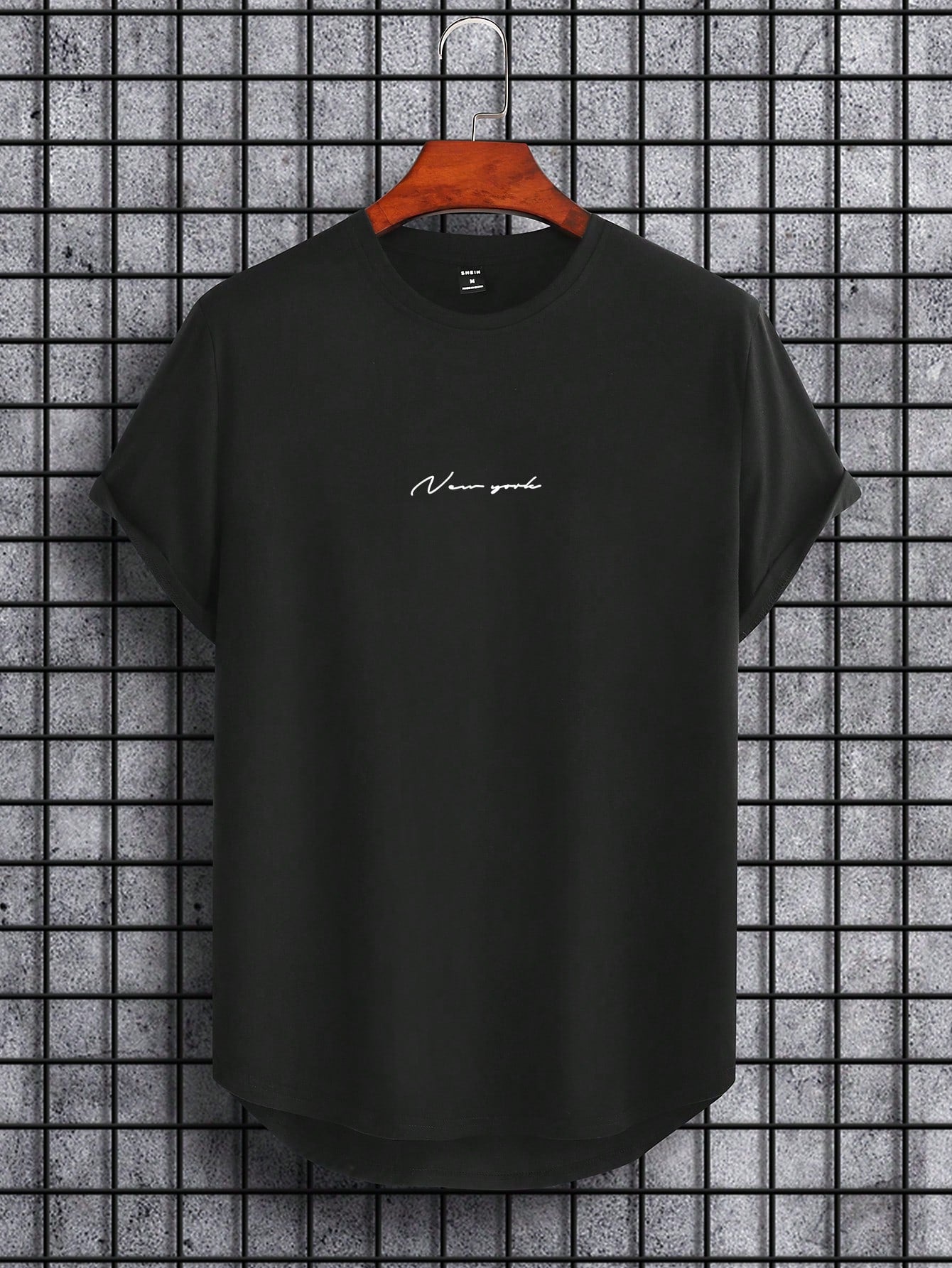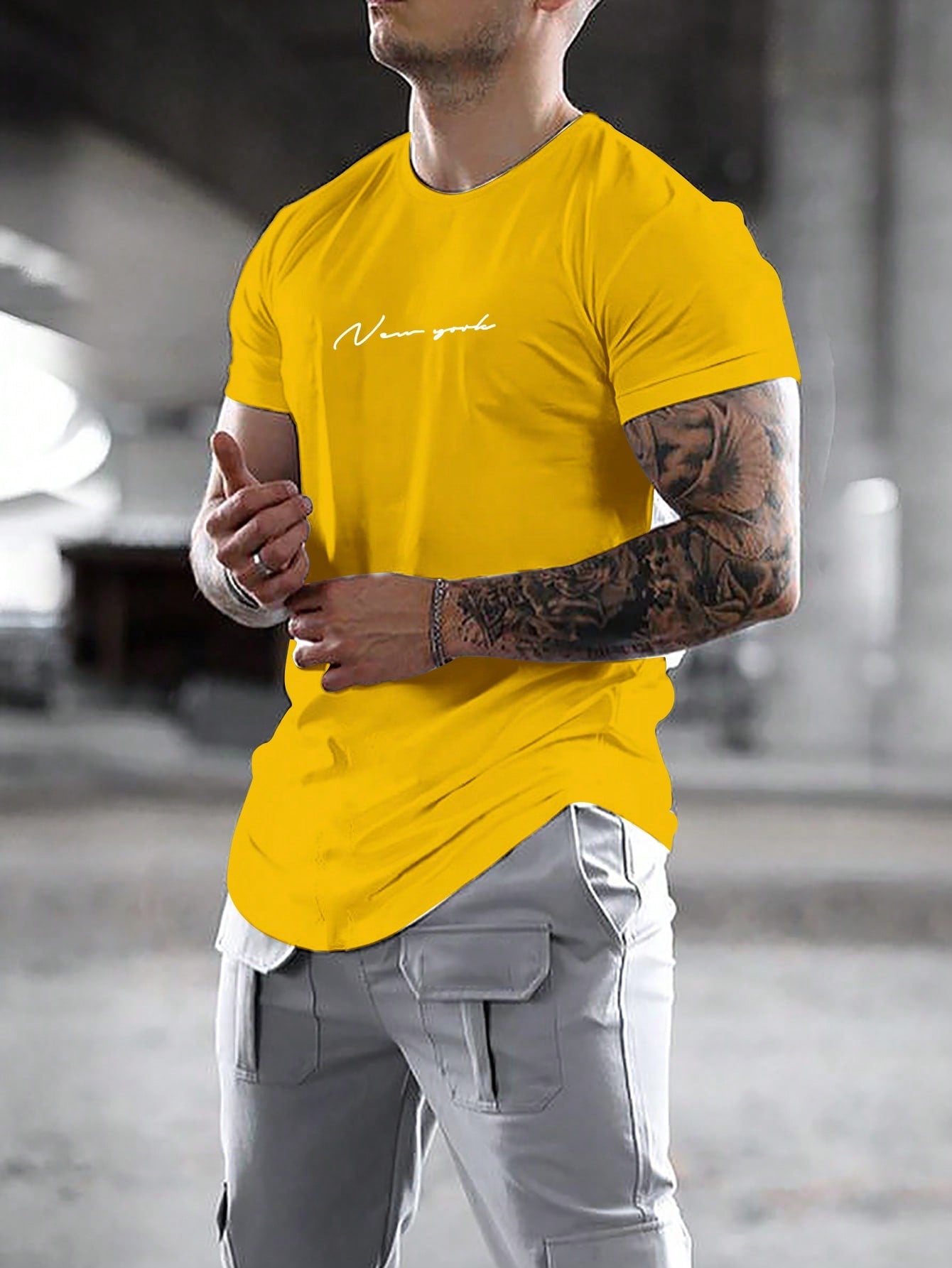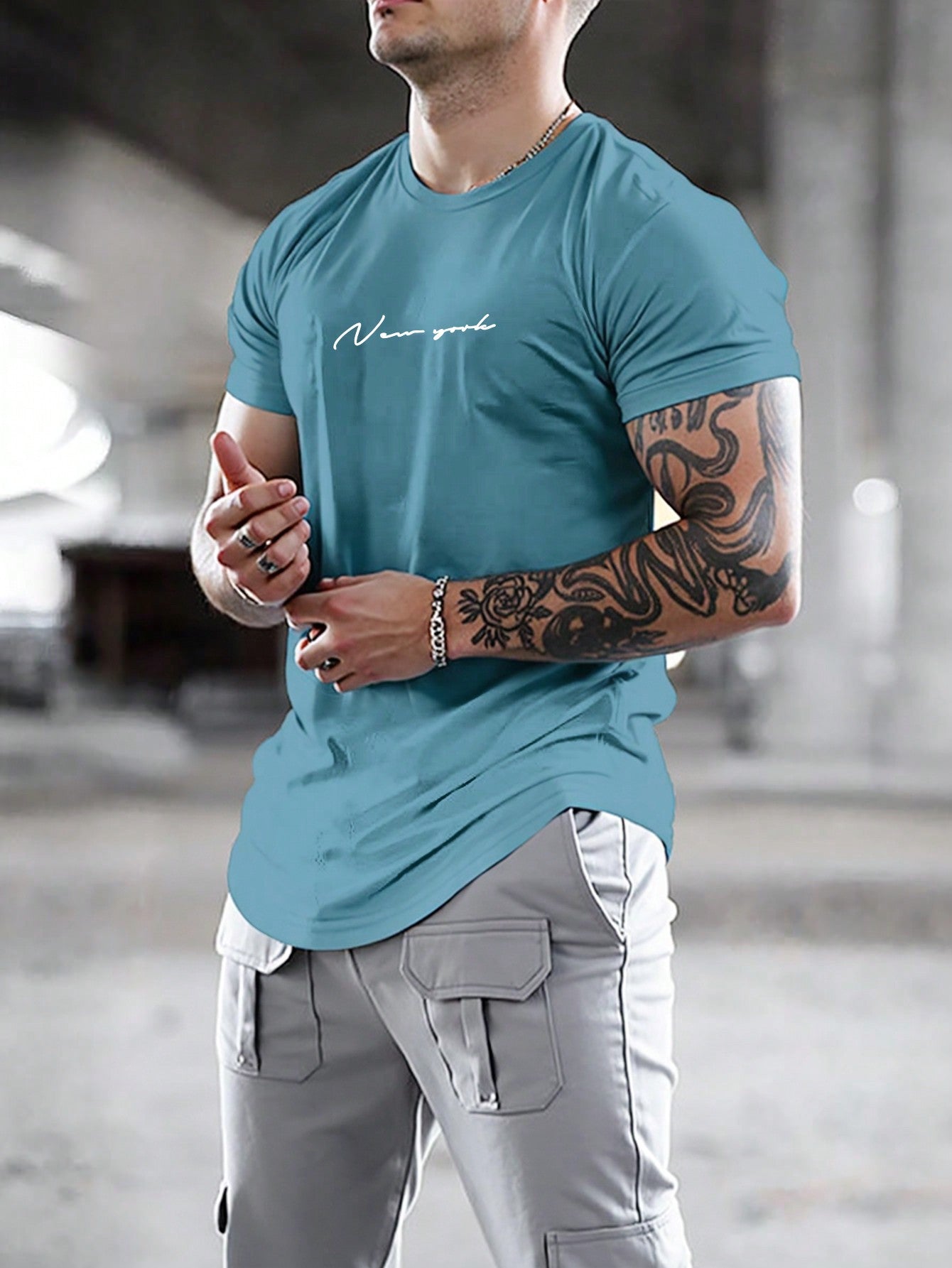 Manfinity Homme Men Letter Graphic Curved Hem Tee