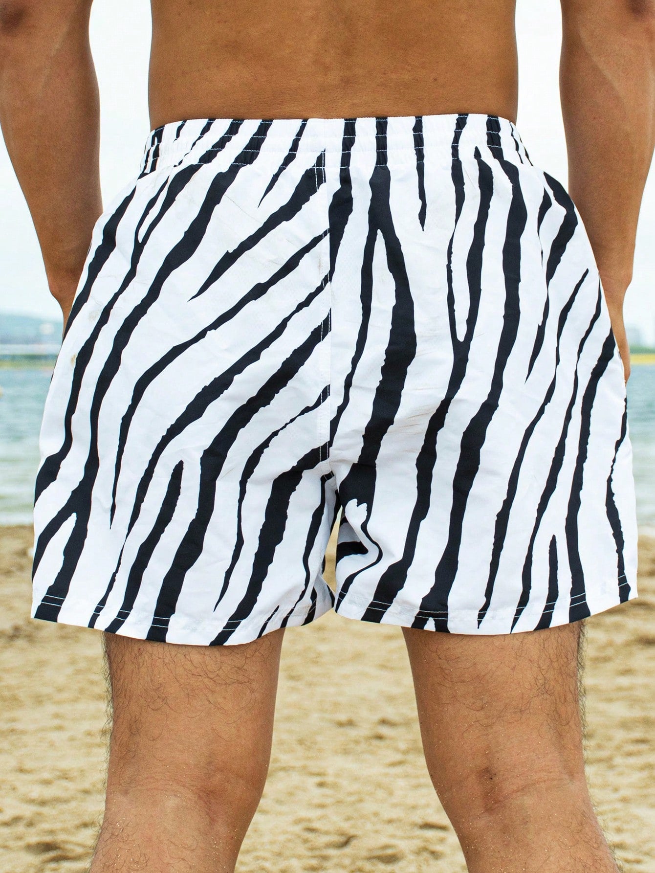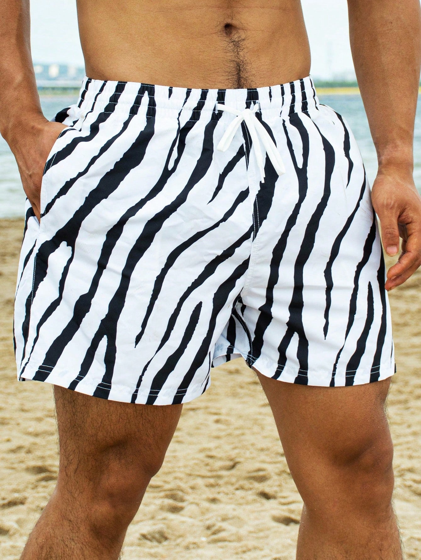 Manfinity Swimmode Men Zebra Stripe Drawstring Waist Swim Trunks