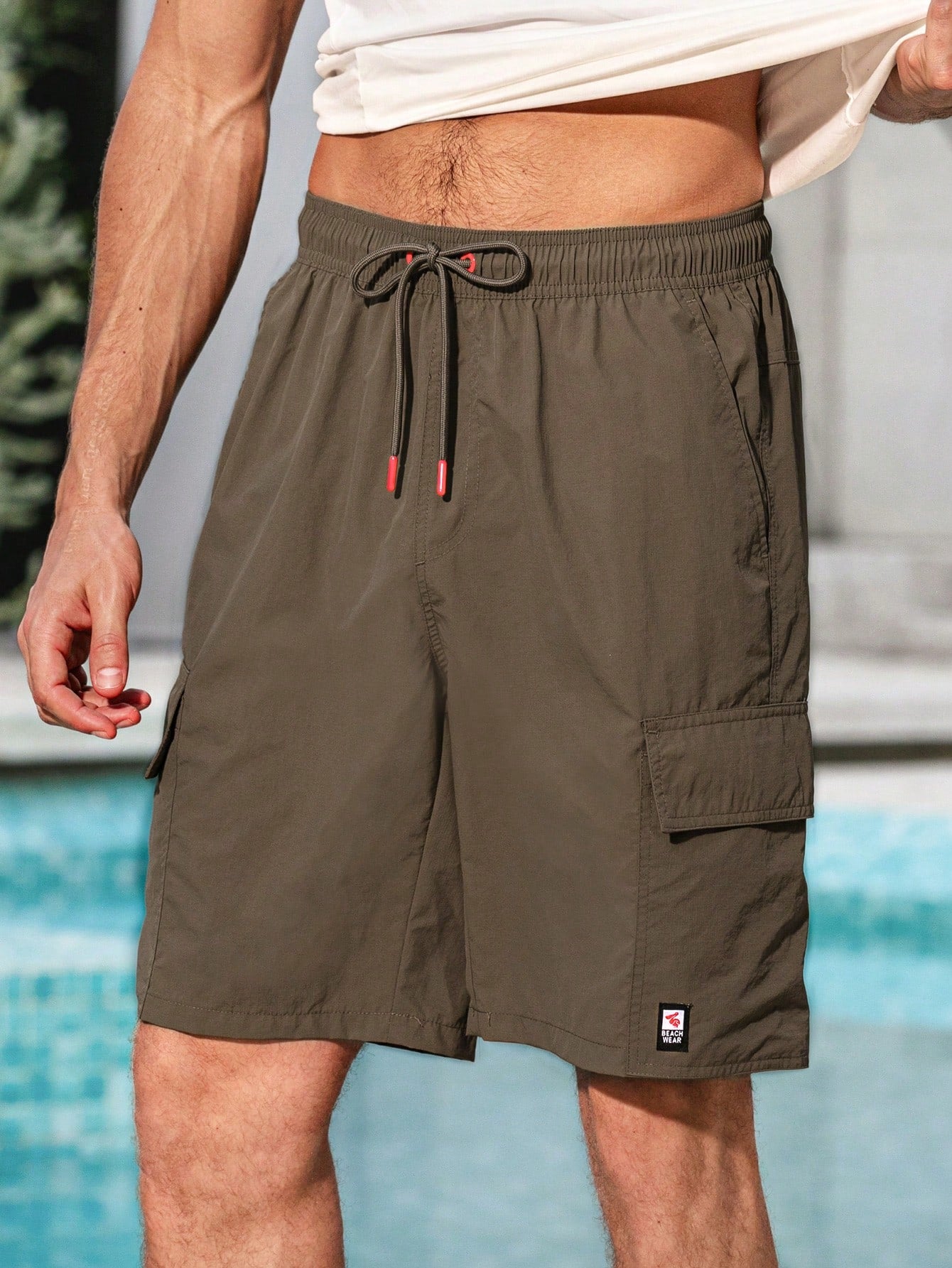 Manfinity Swimmode Men's Solid Color Drawstring Waist Casual Beach Shorts