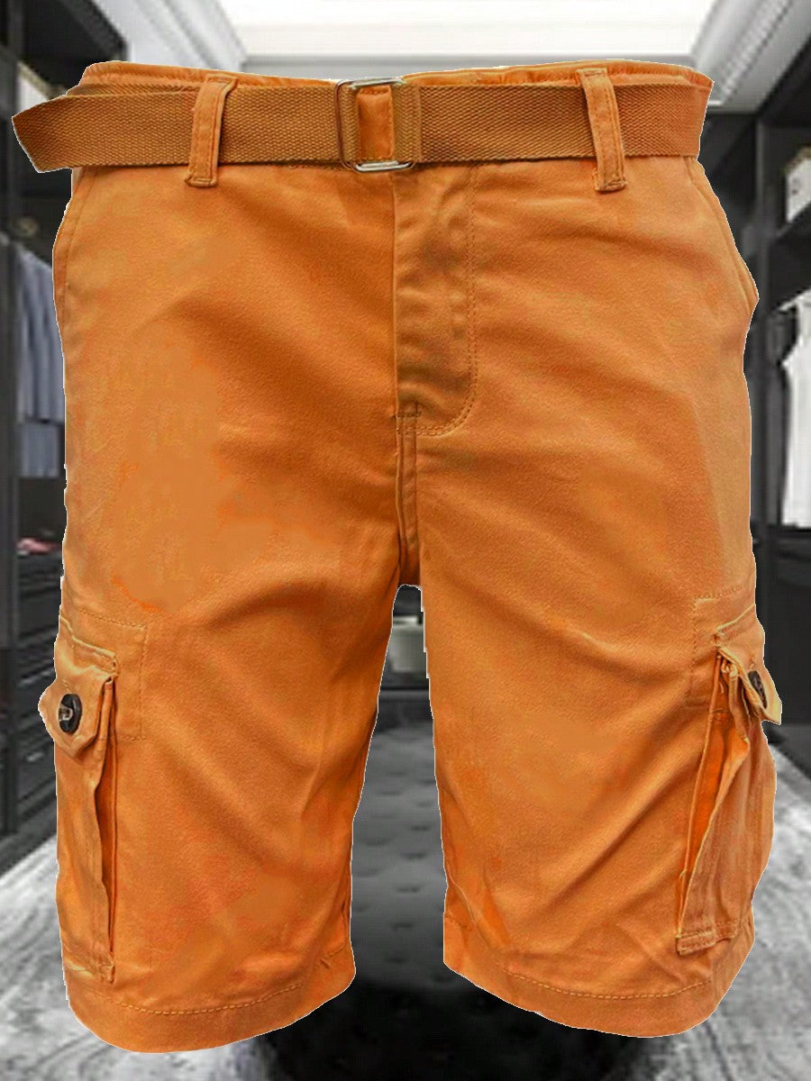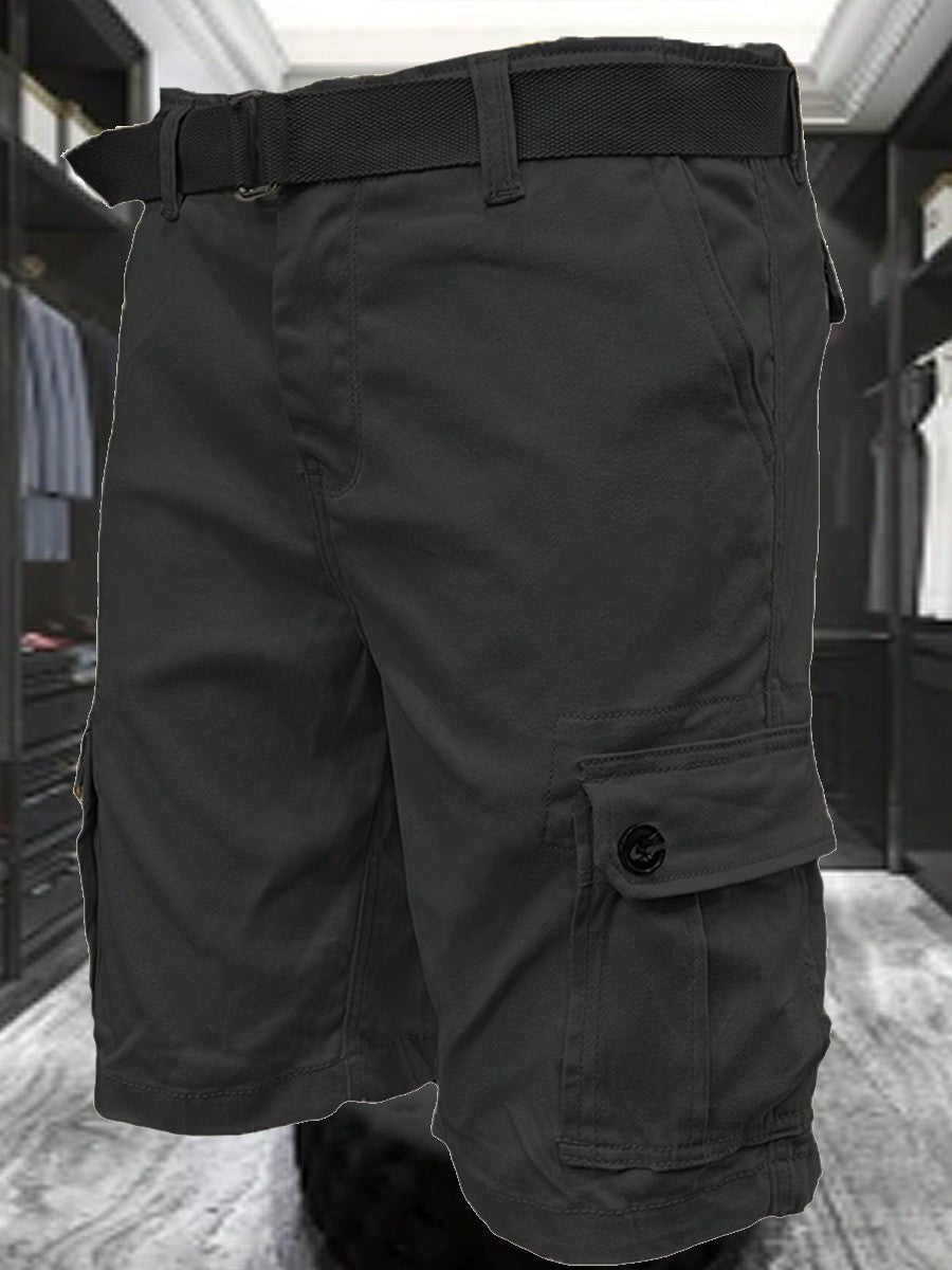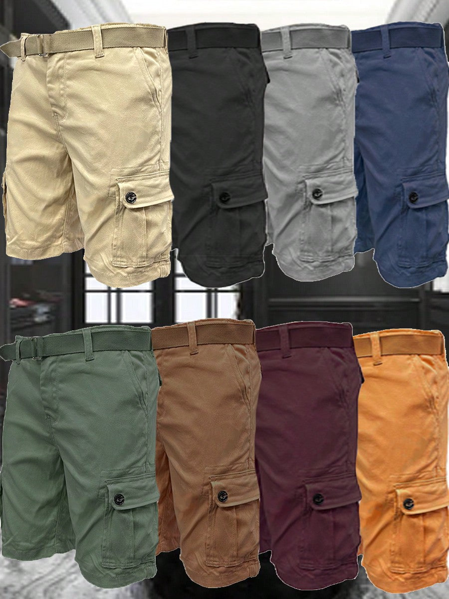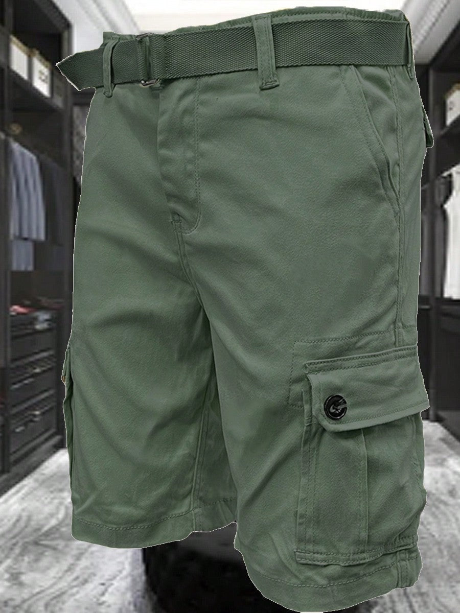 Men's Belted Cotton Cargo Shorts With Pockets Casual