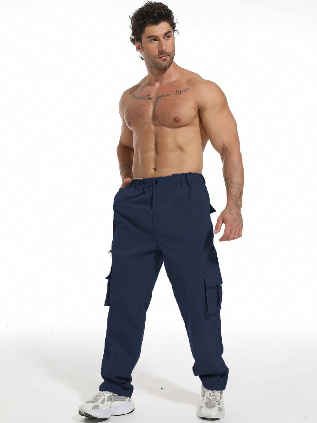 Men's Cargo Belt Pocket Hiking Pants Casual Sports Jogging Outdoor Pants Loose Version